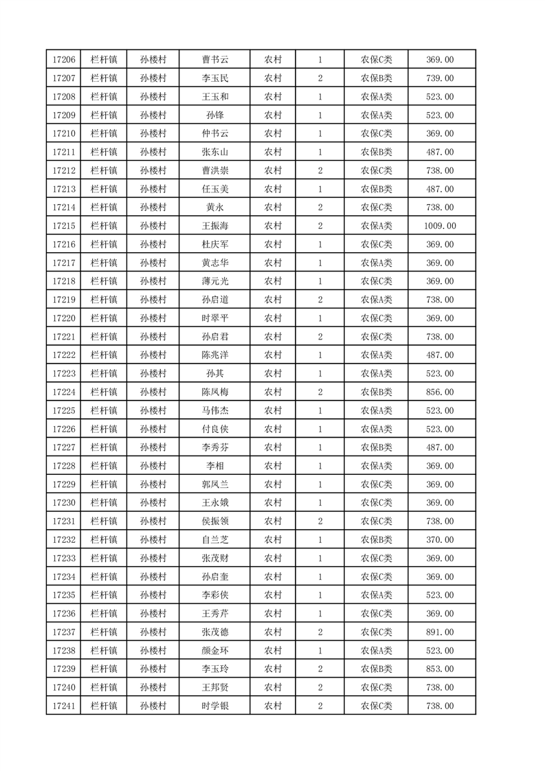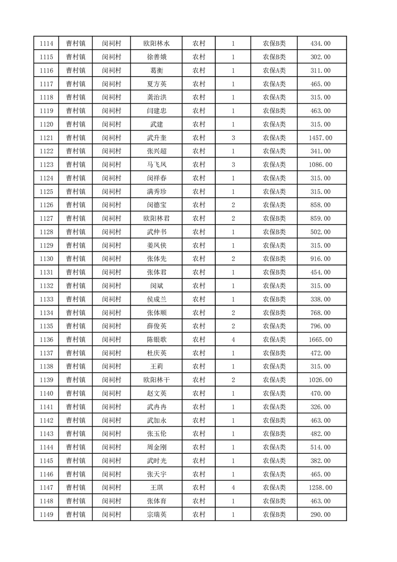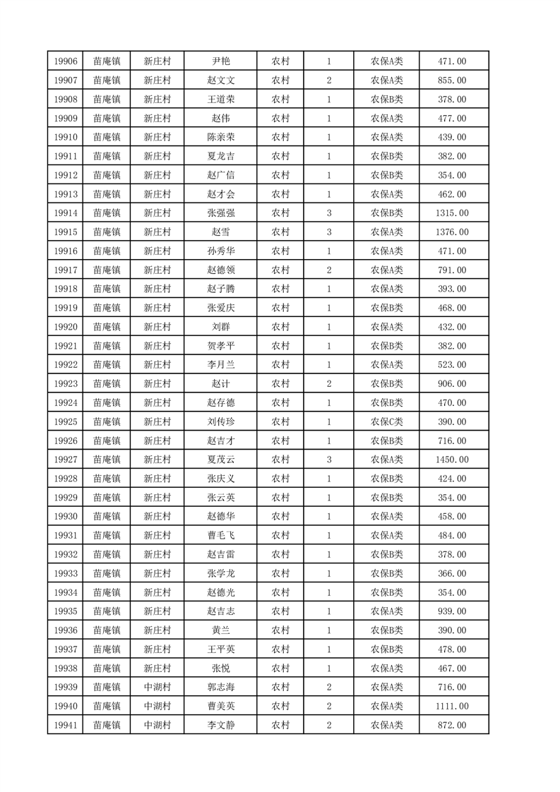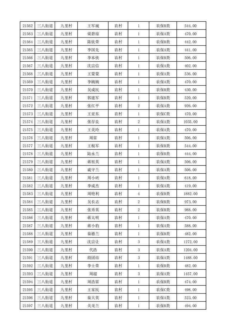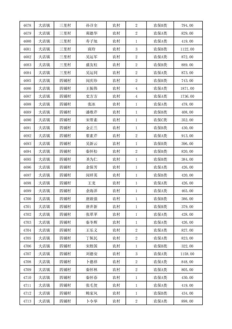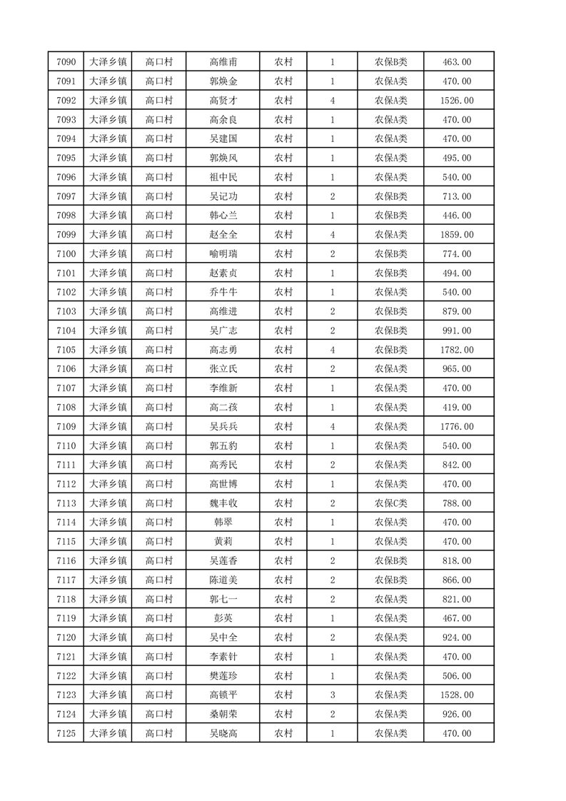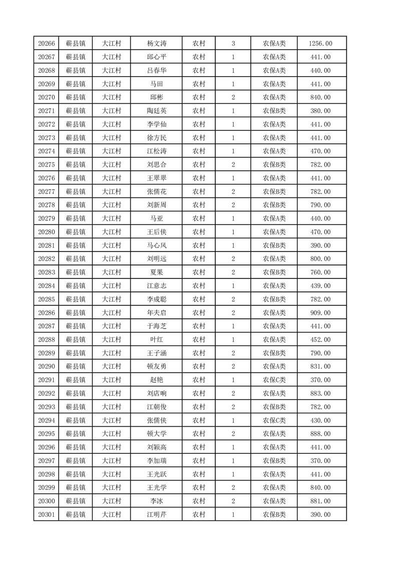埇桥区2025年12月份农村低保花名册