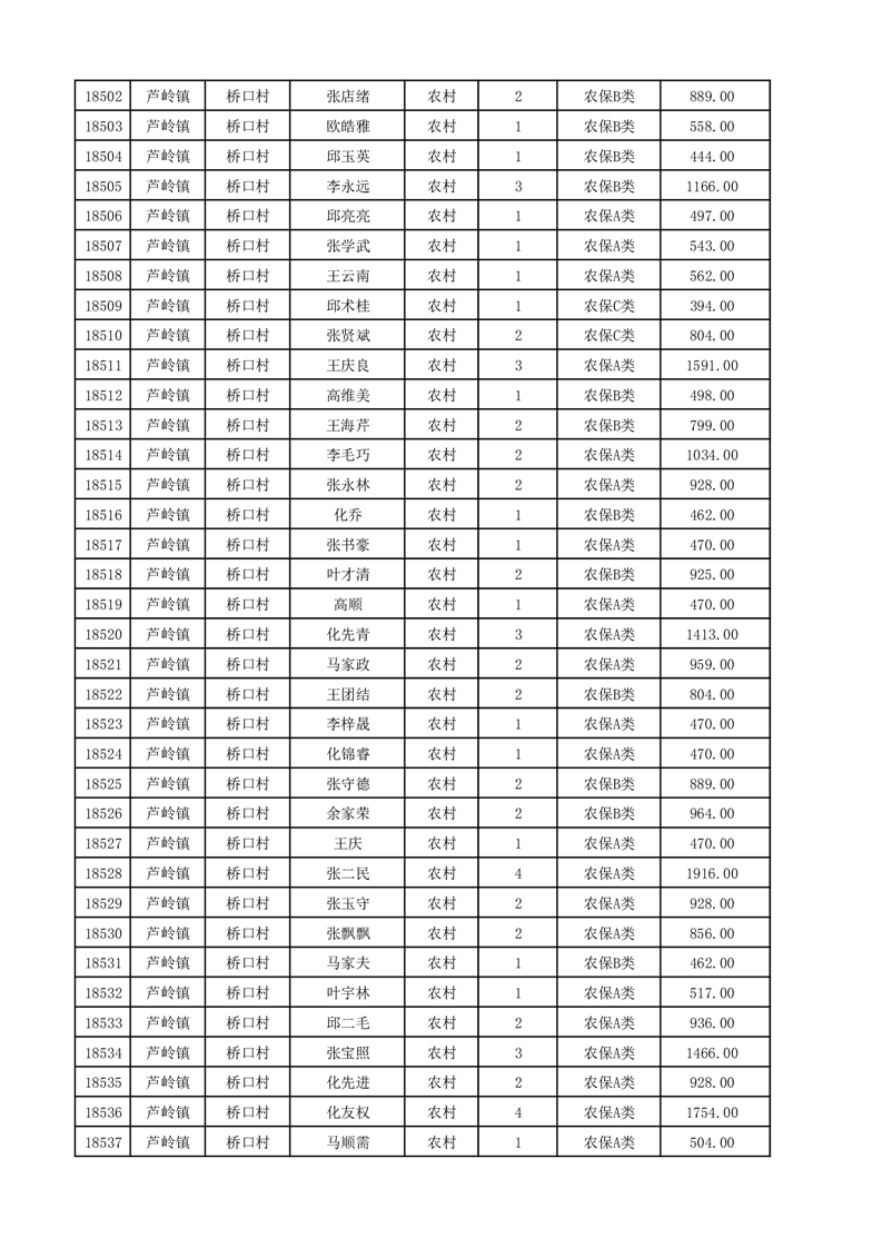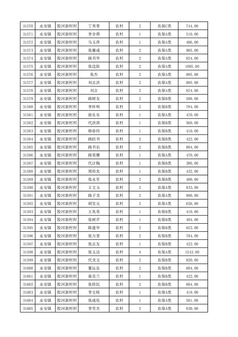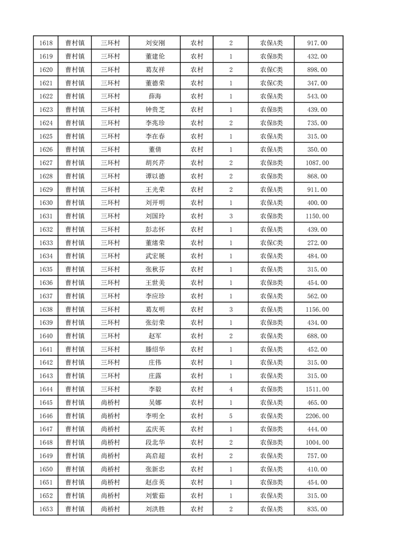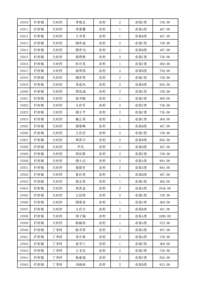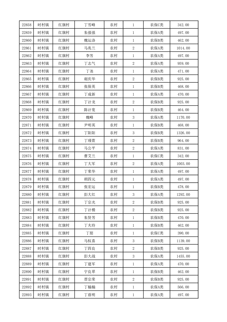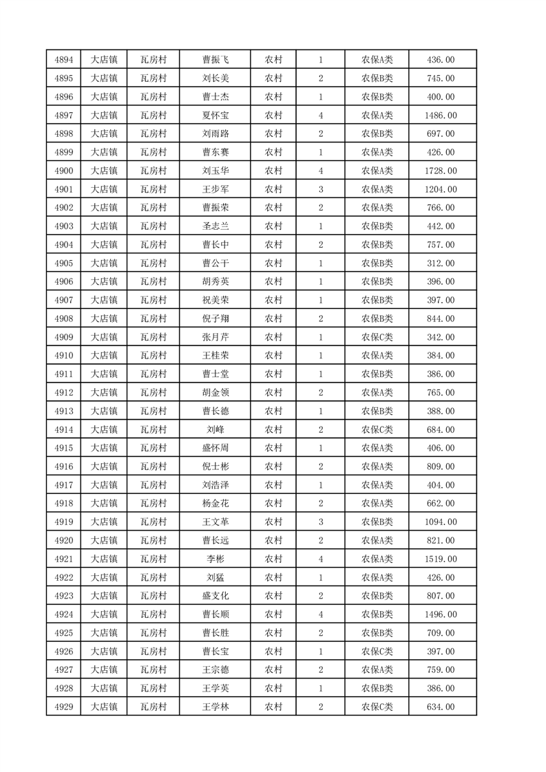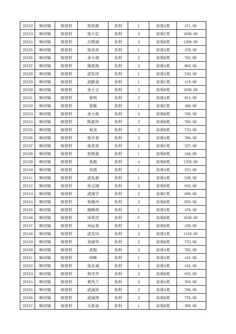 埇桥区2025年12月份农村低保花名册