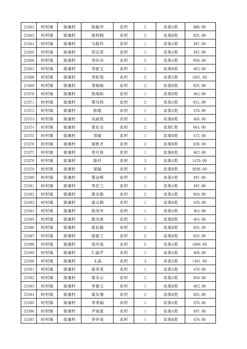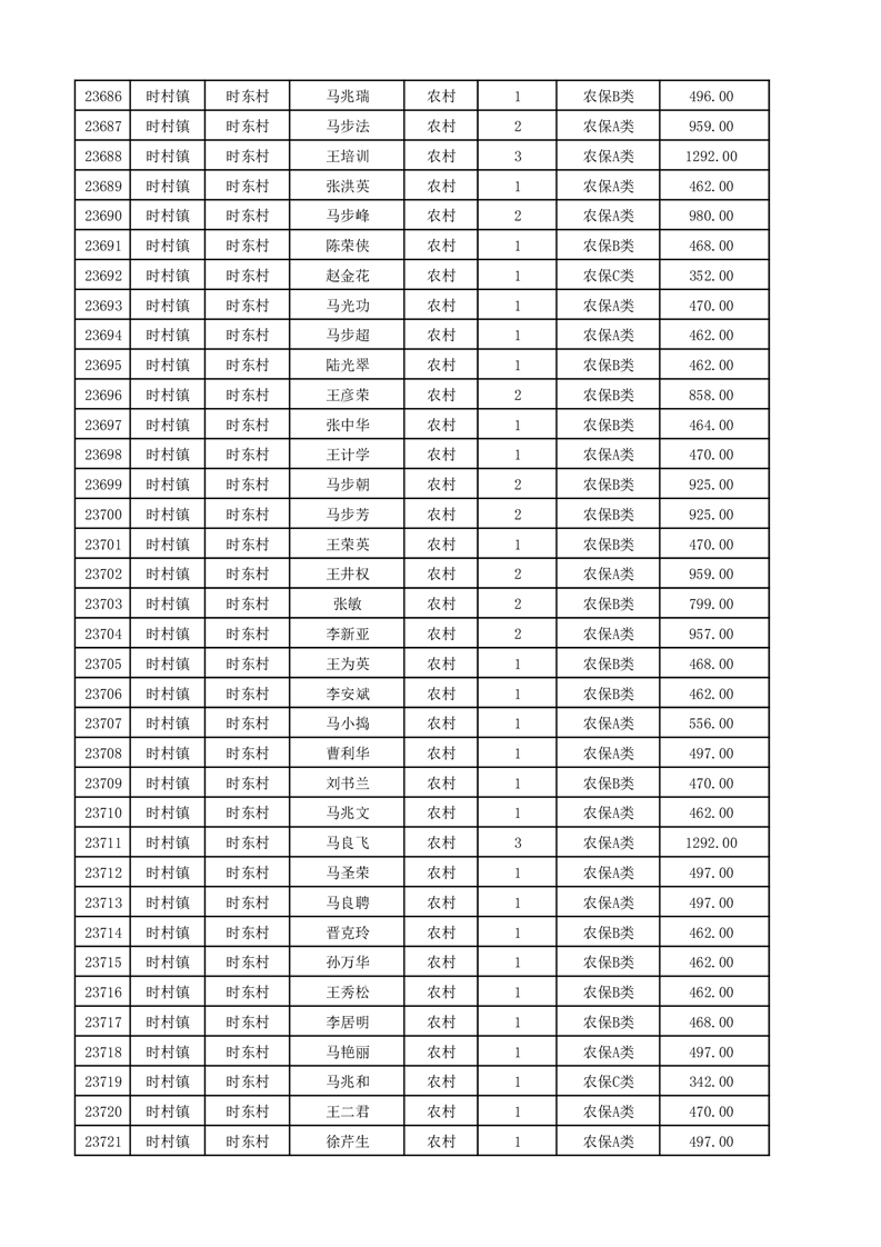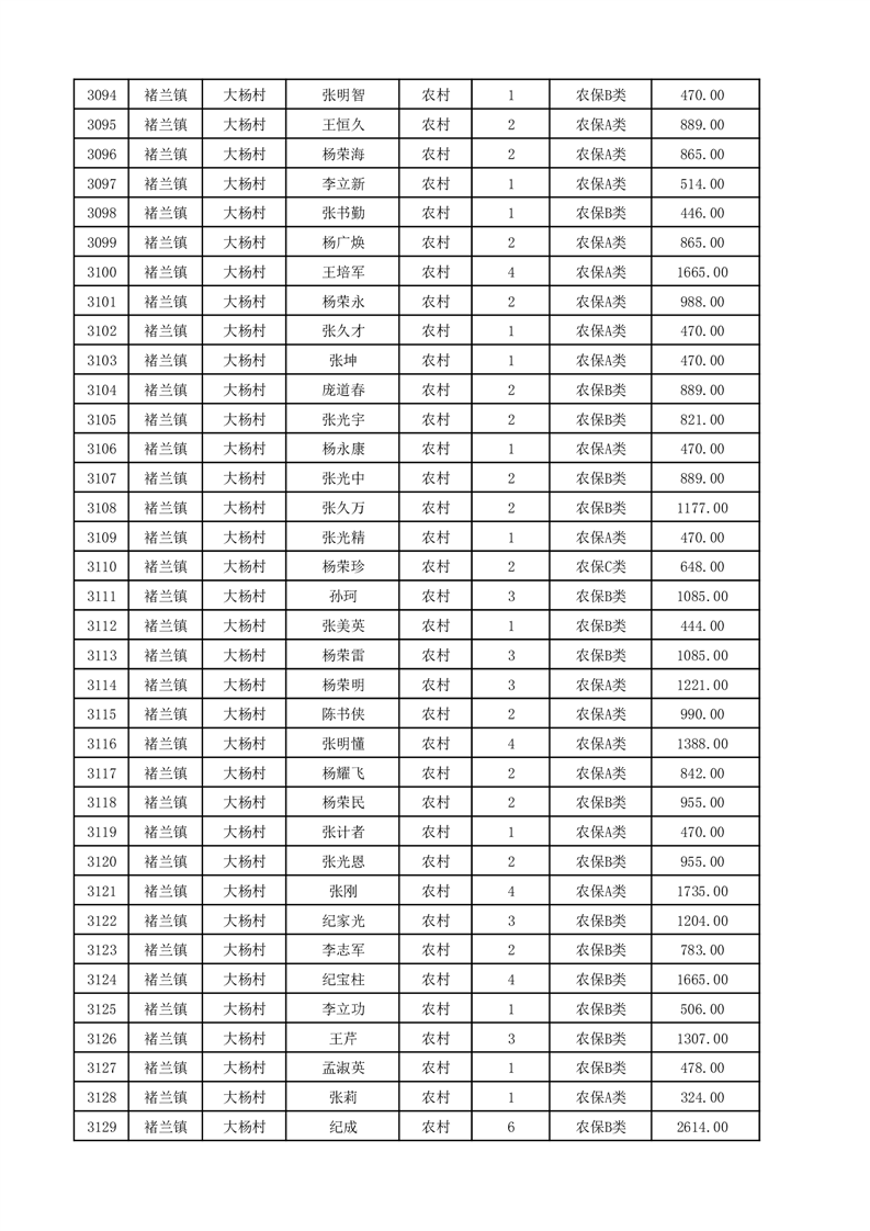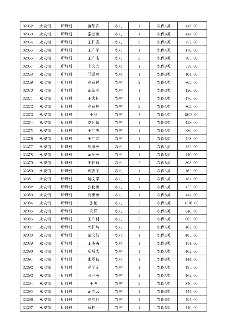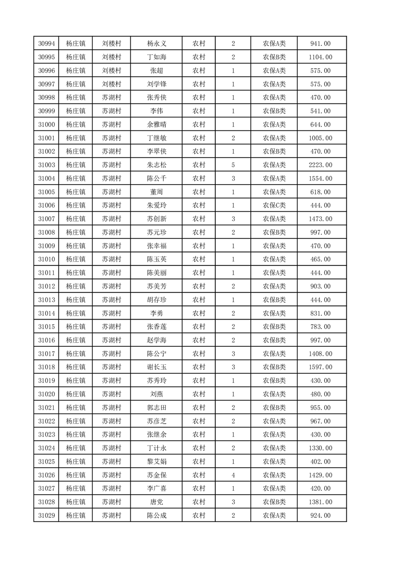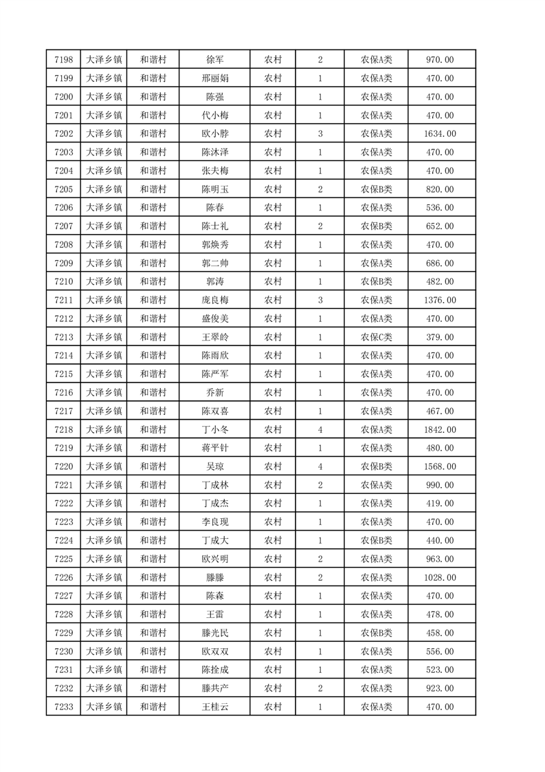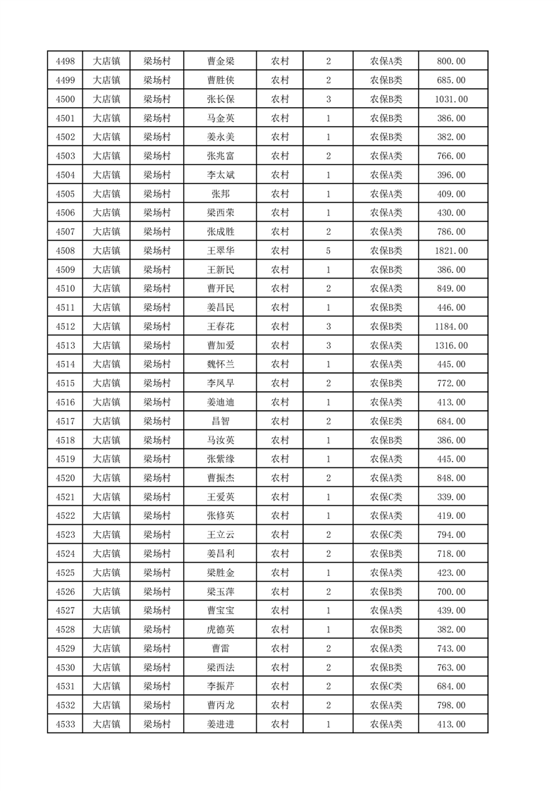 埇桥区2025年12月份农村低保花名册