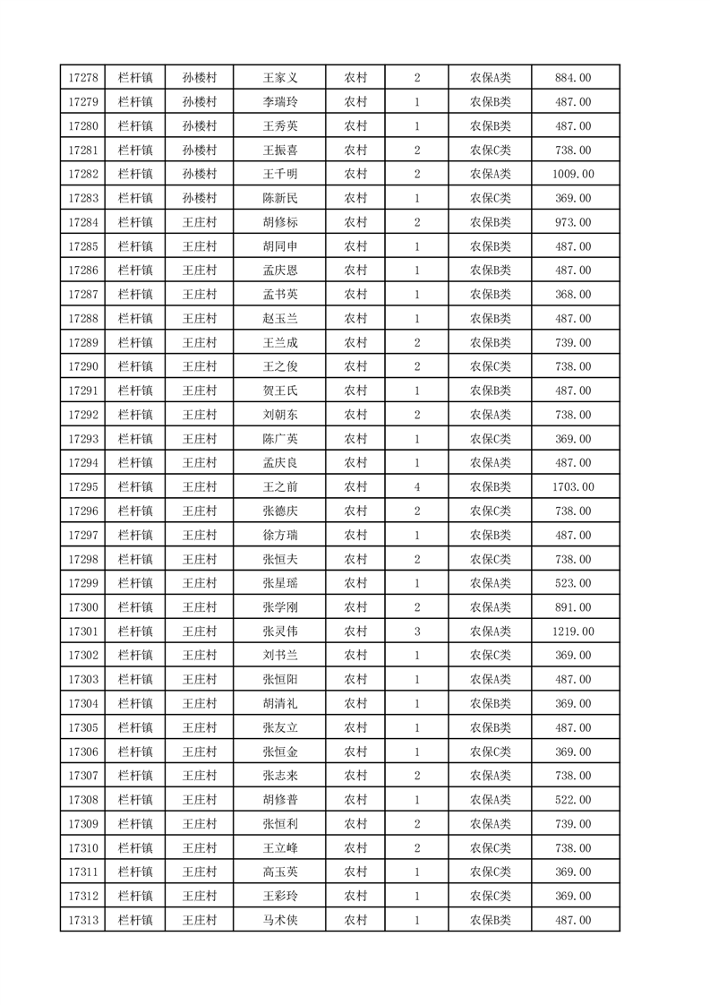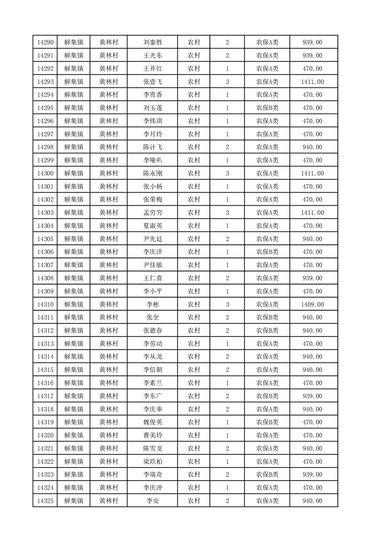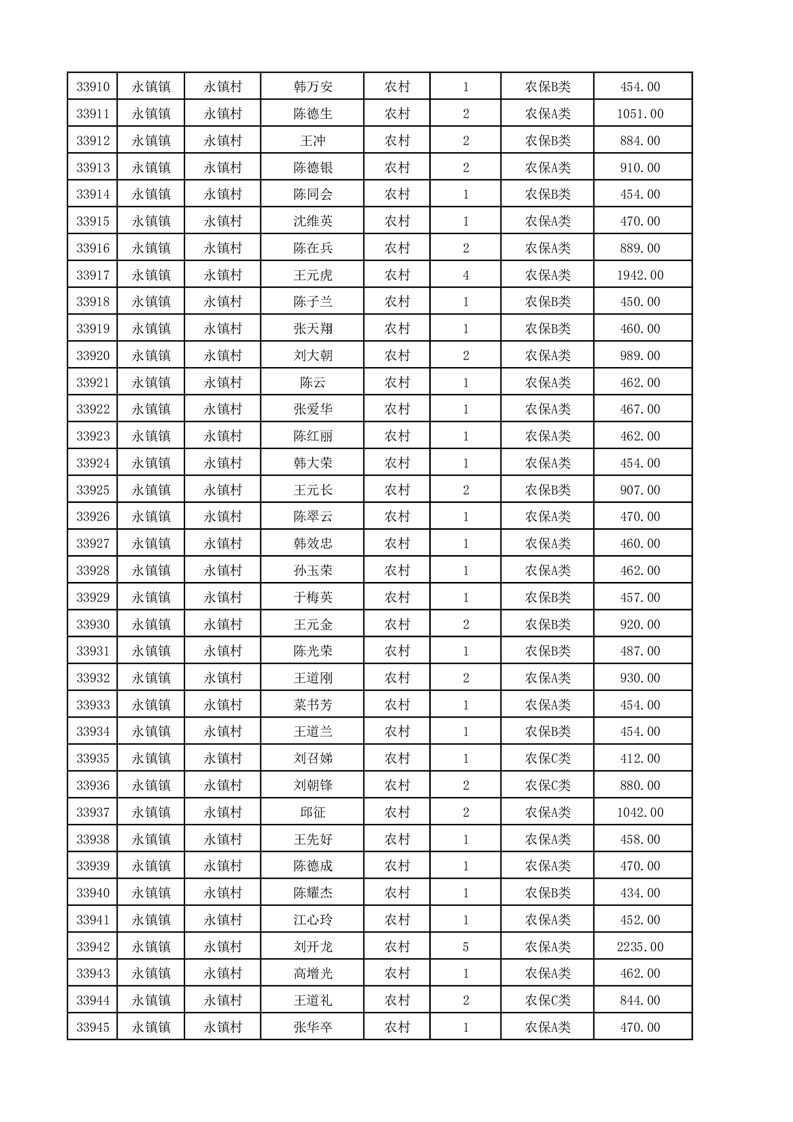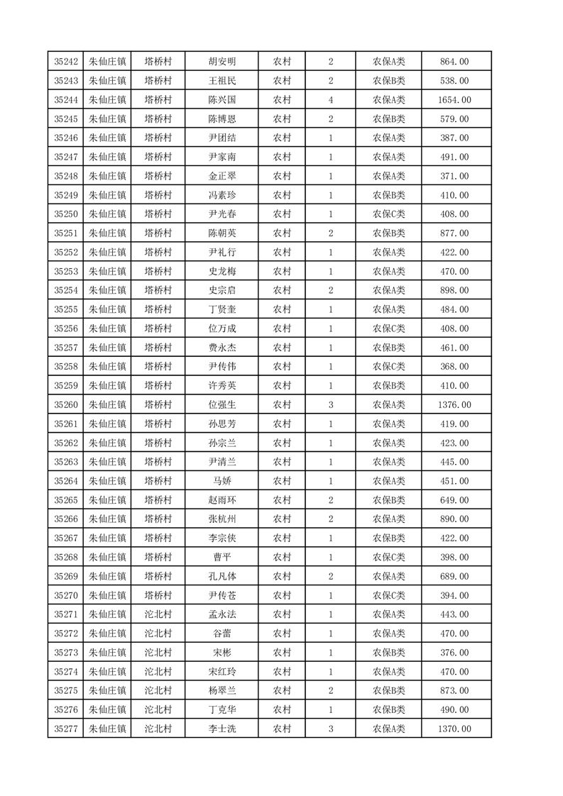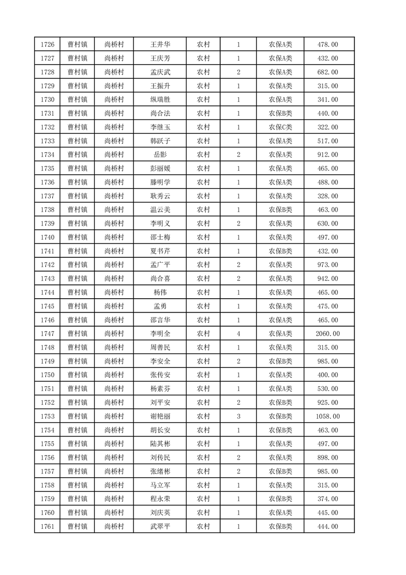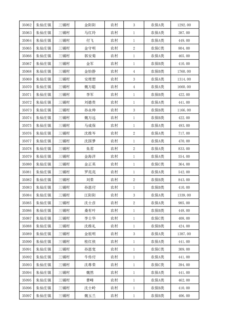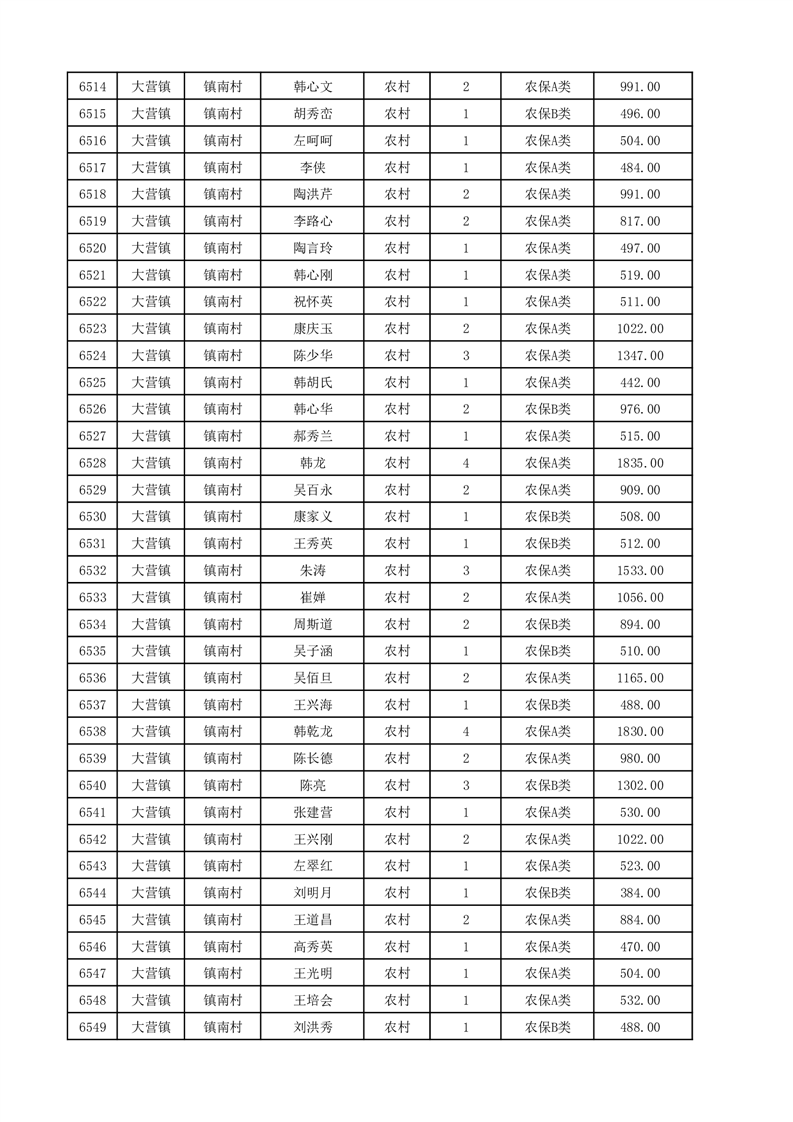 埇桥区2025年12月份农村低保花名册