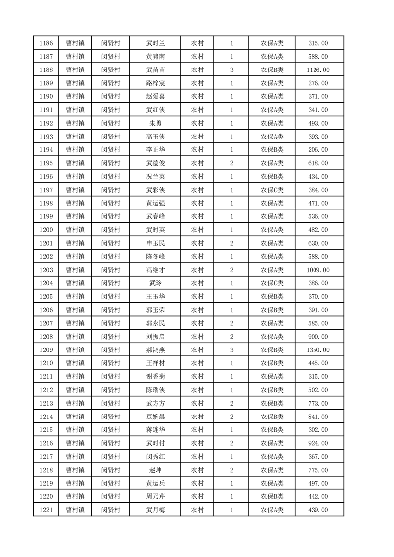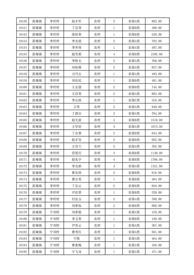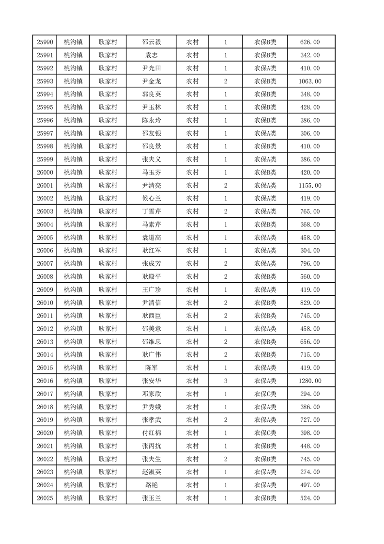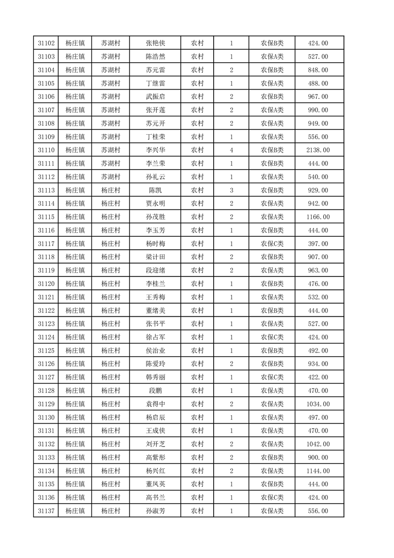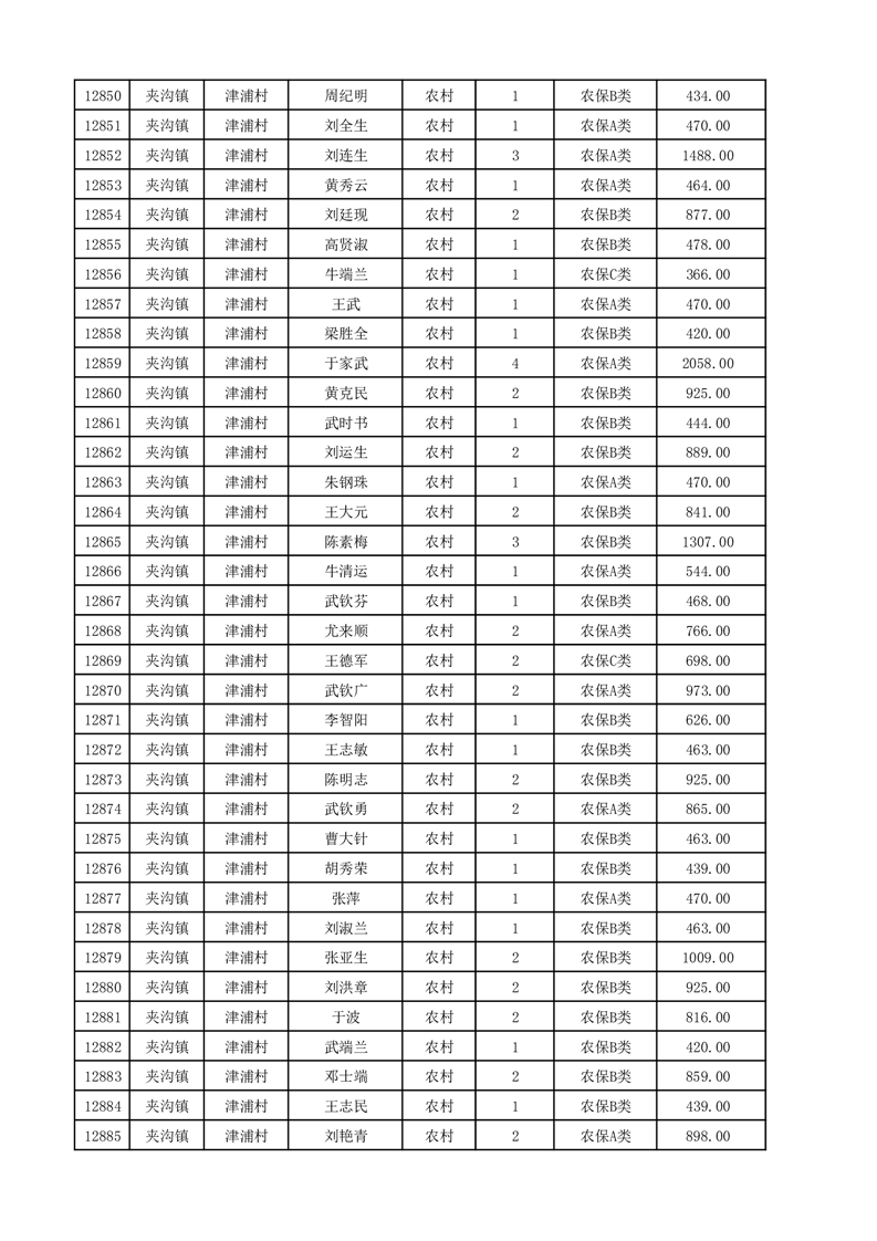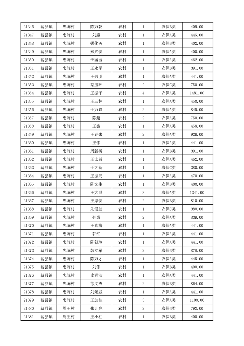 埇桥区2025年12月份农村低保花名册