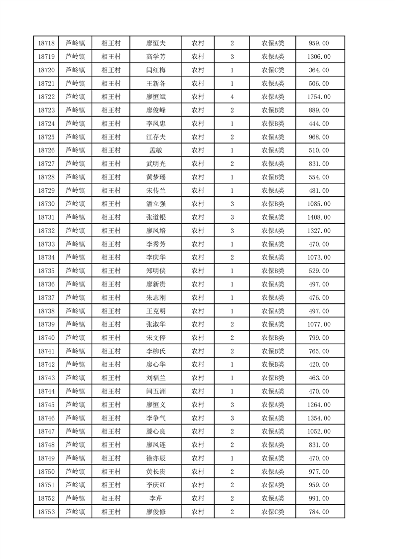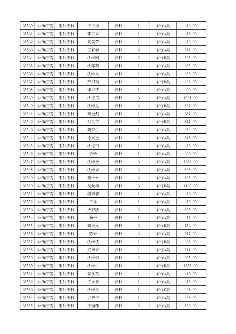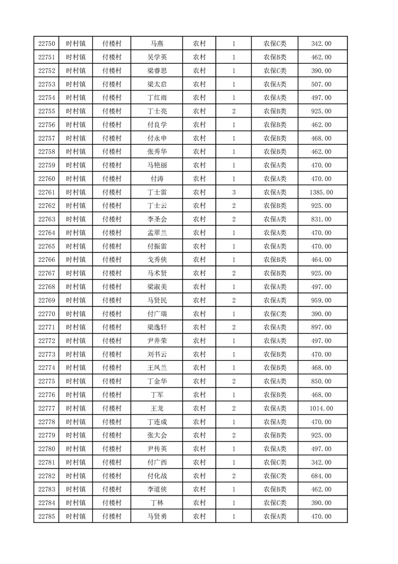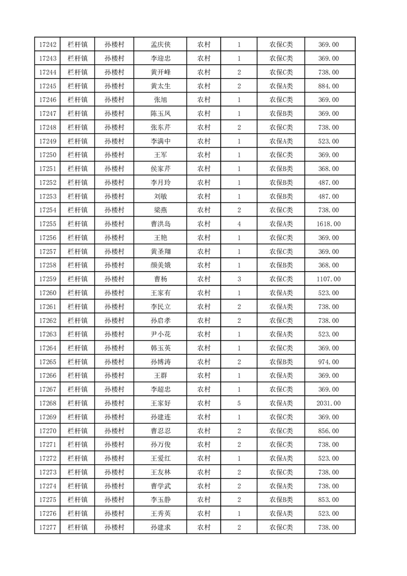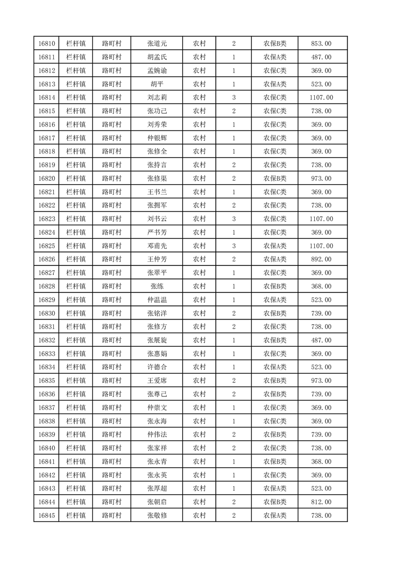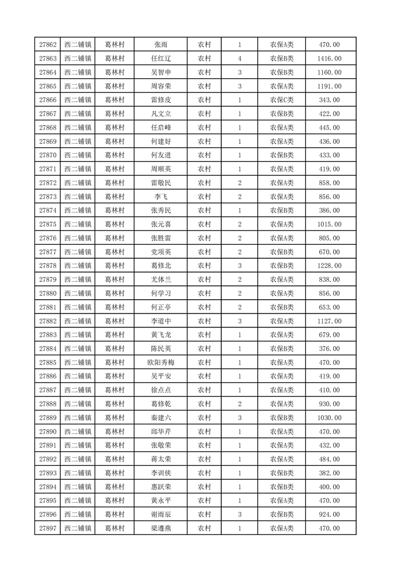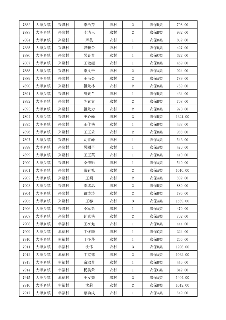 埇桥区2025年12月份农村低保花名册