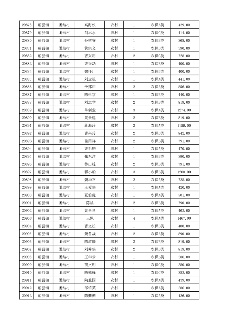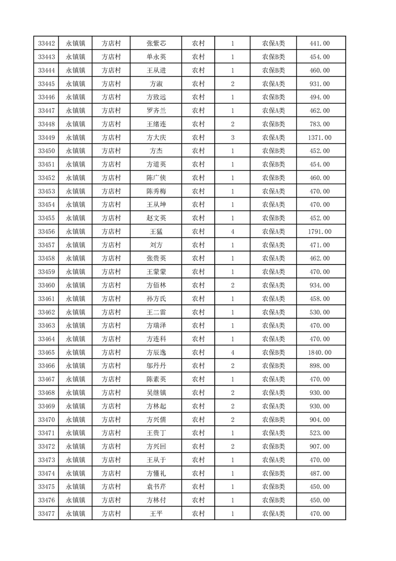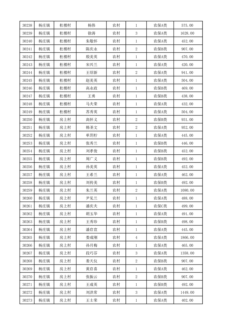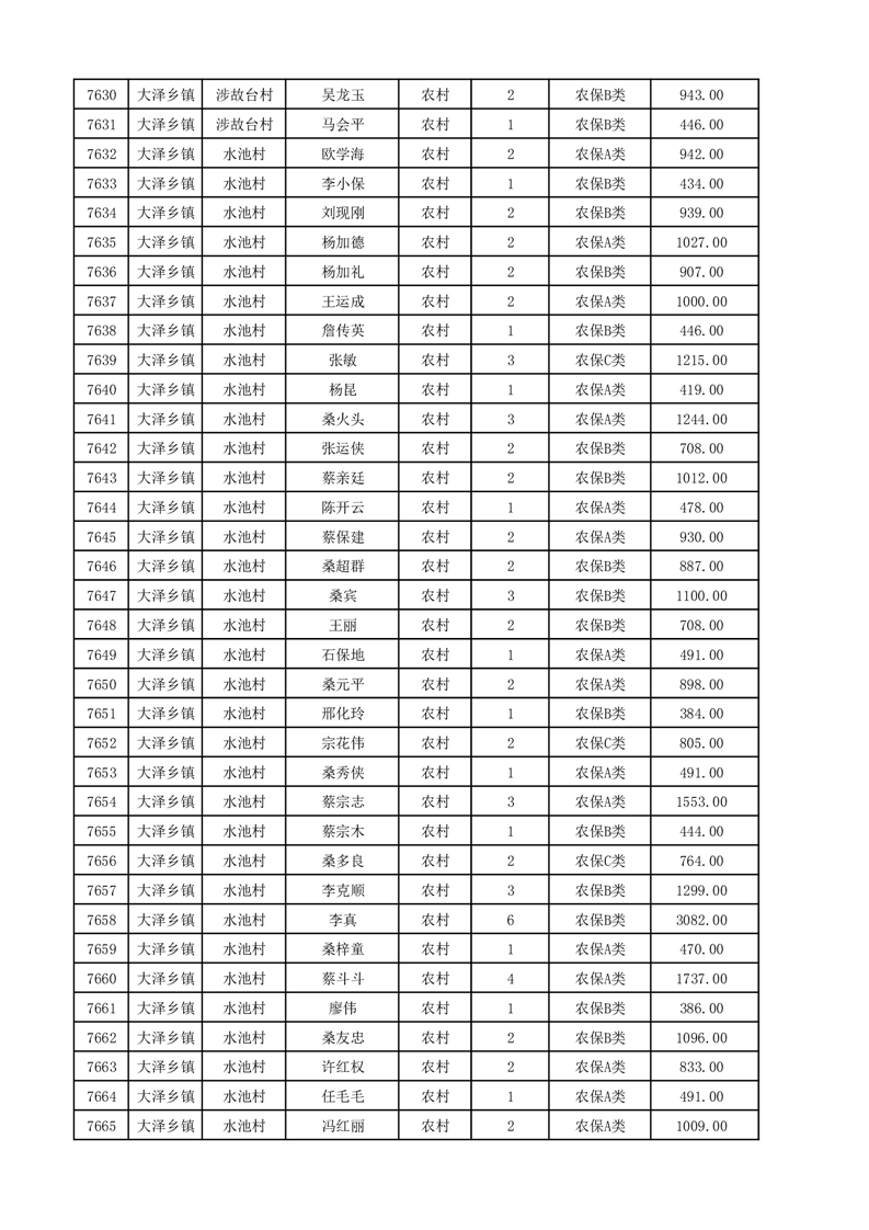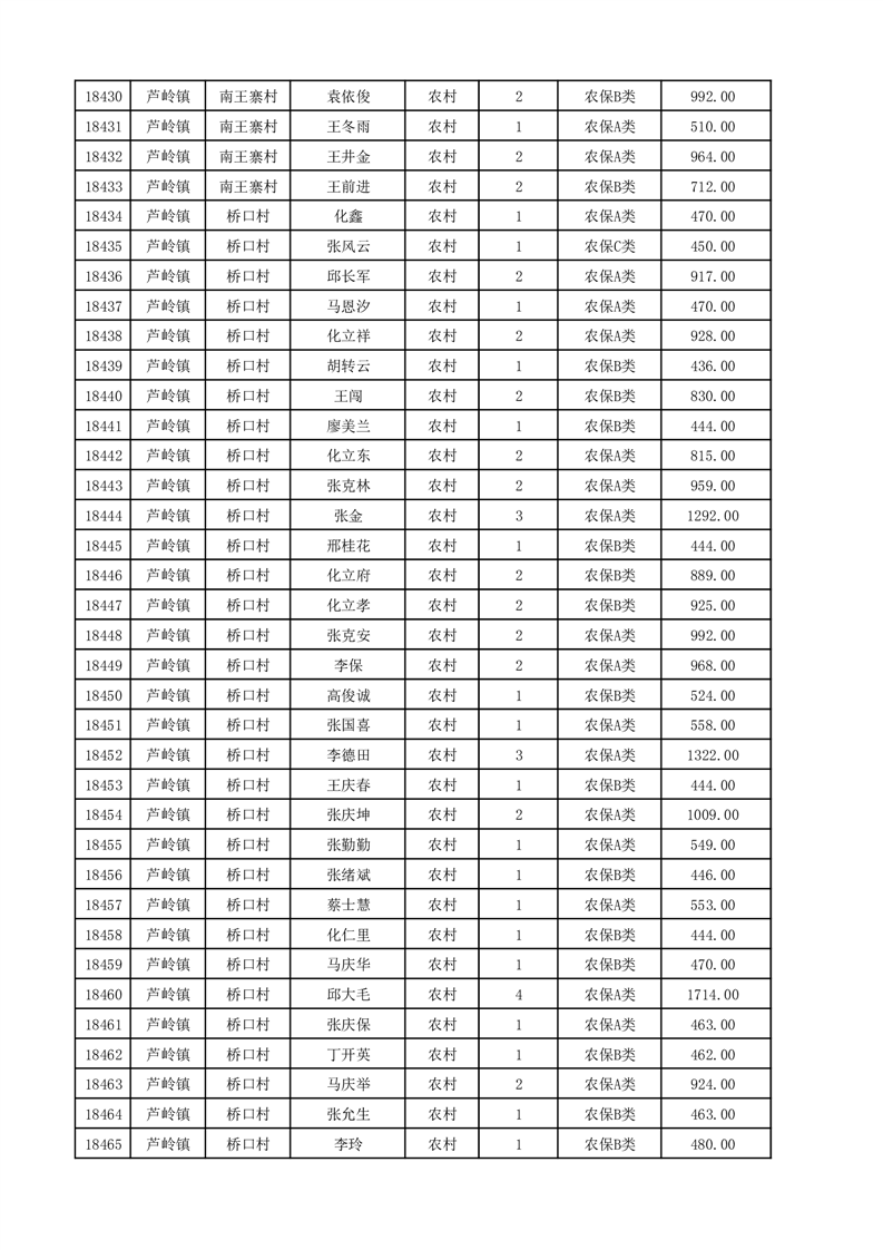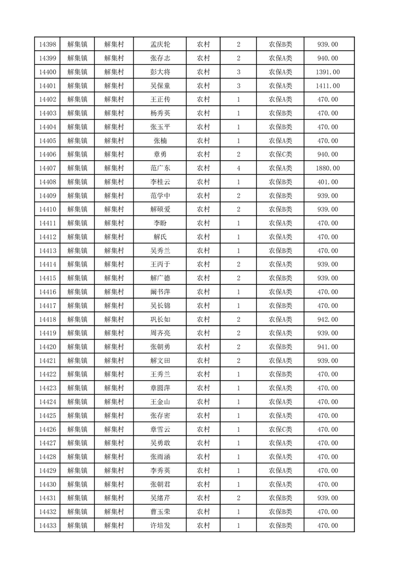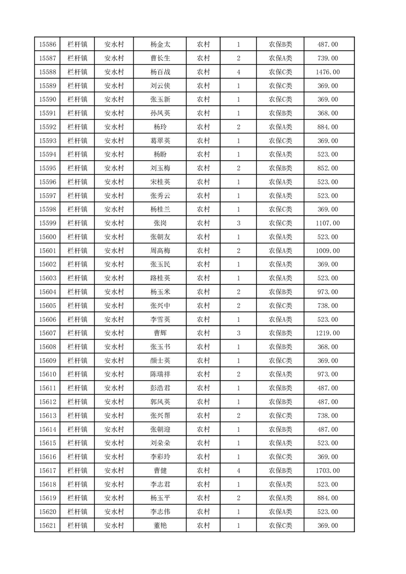 埇桥区2025年12月份农村低保花名册