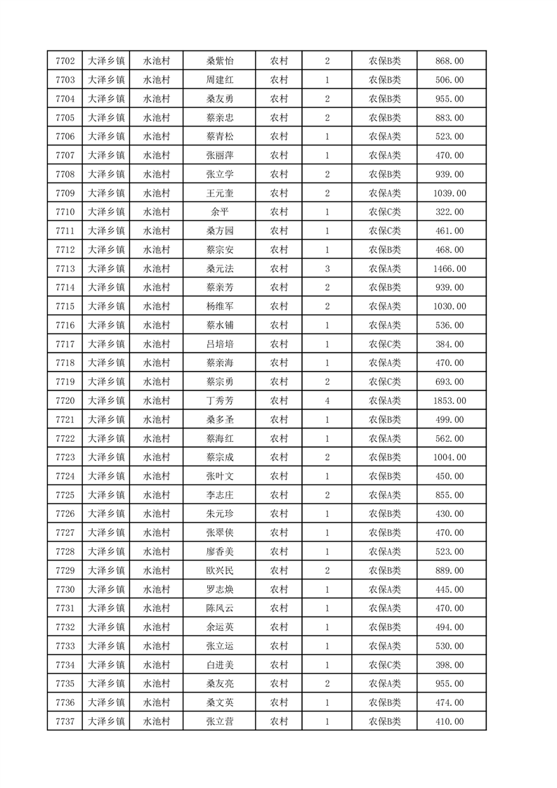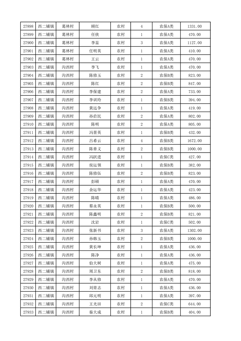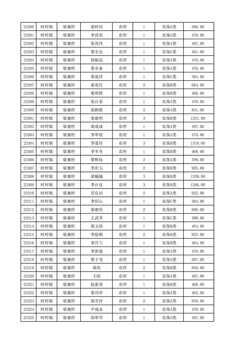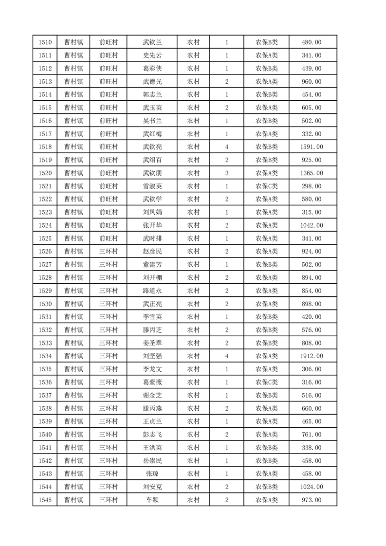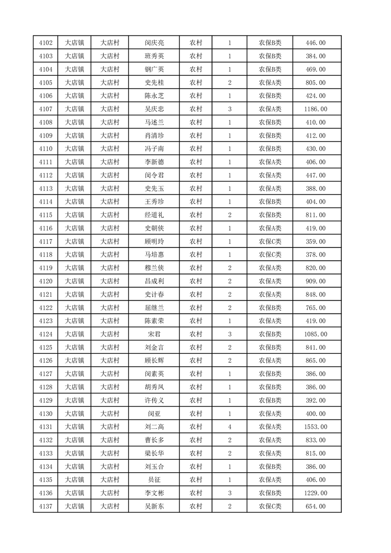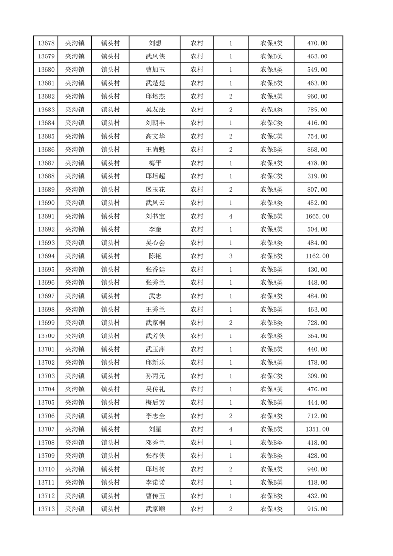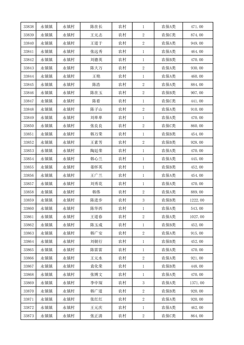 埇桥区2025年12月份农村低保花名册