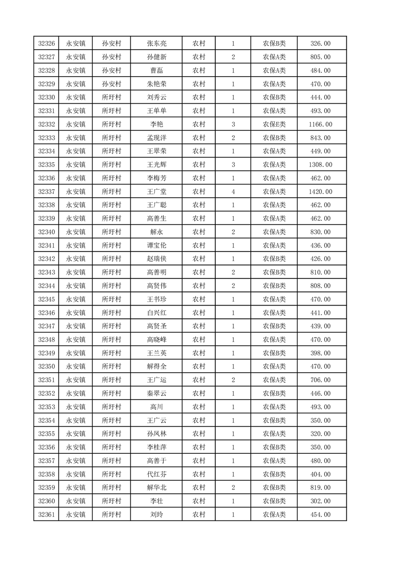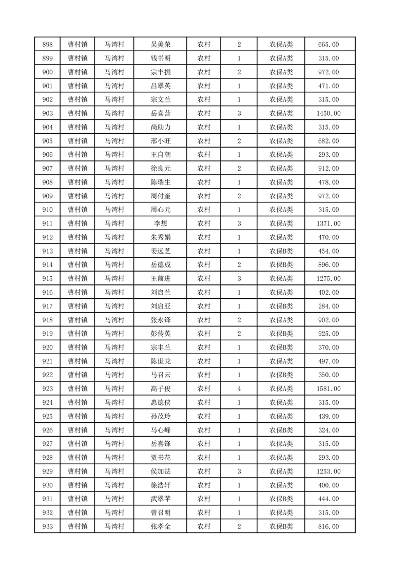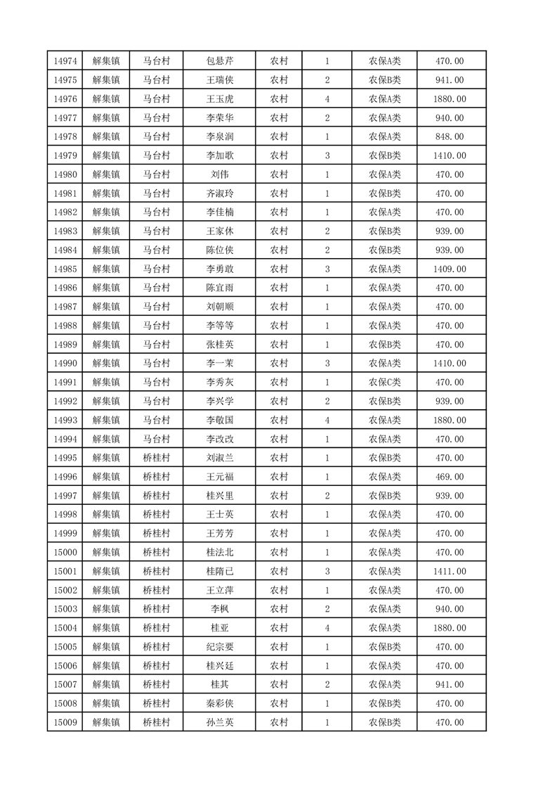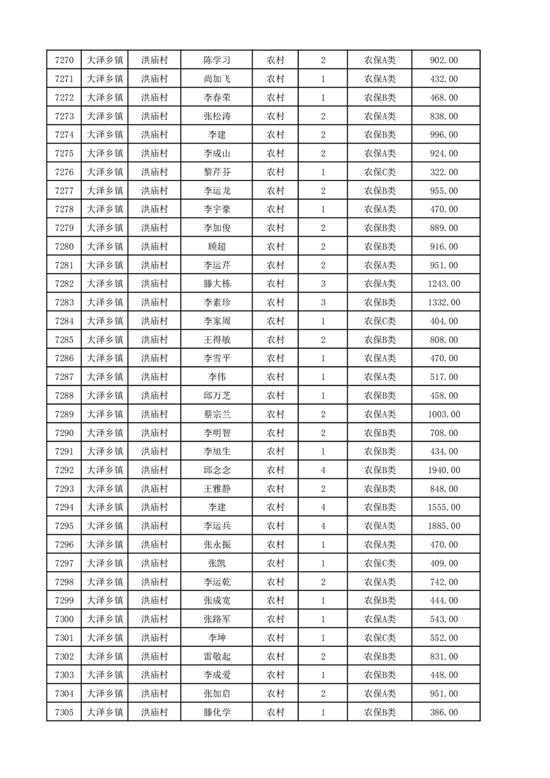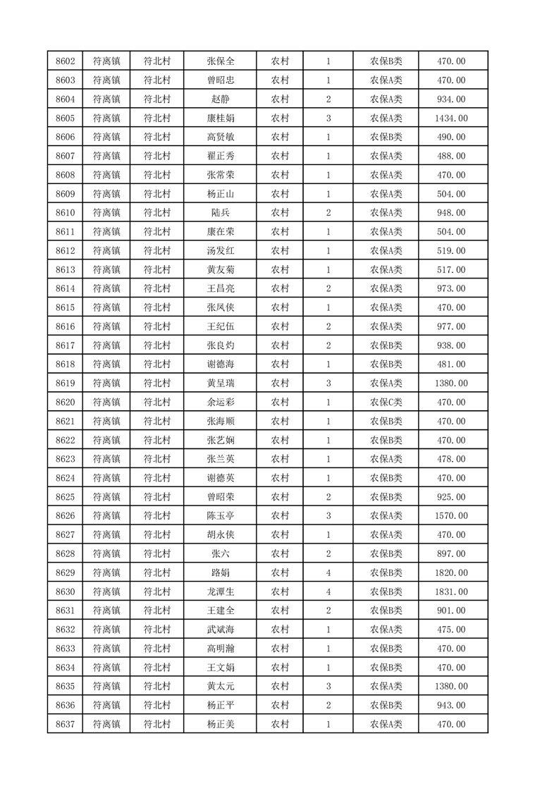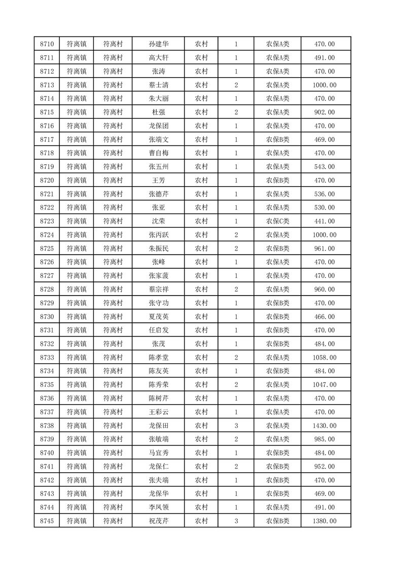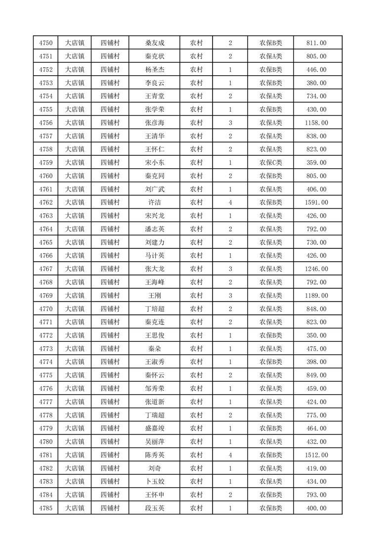 埇桥区2025年12月份农村低保花名册