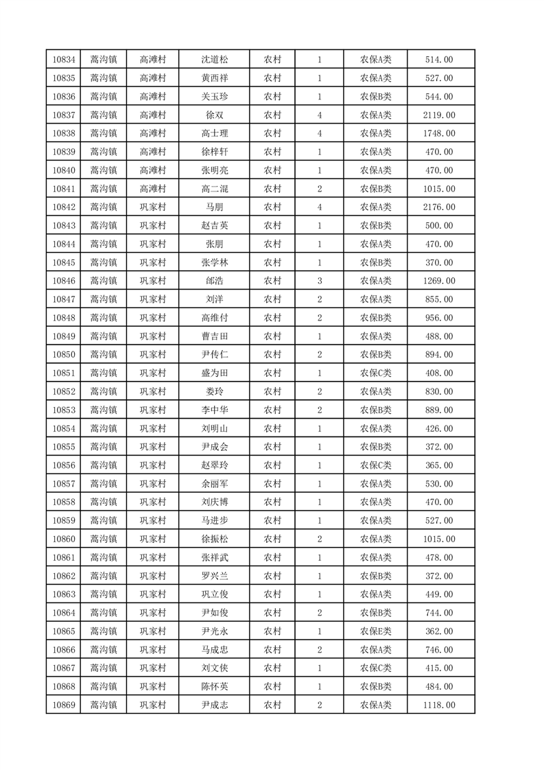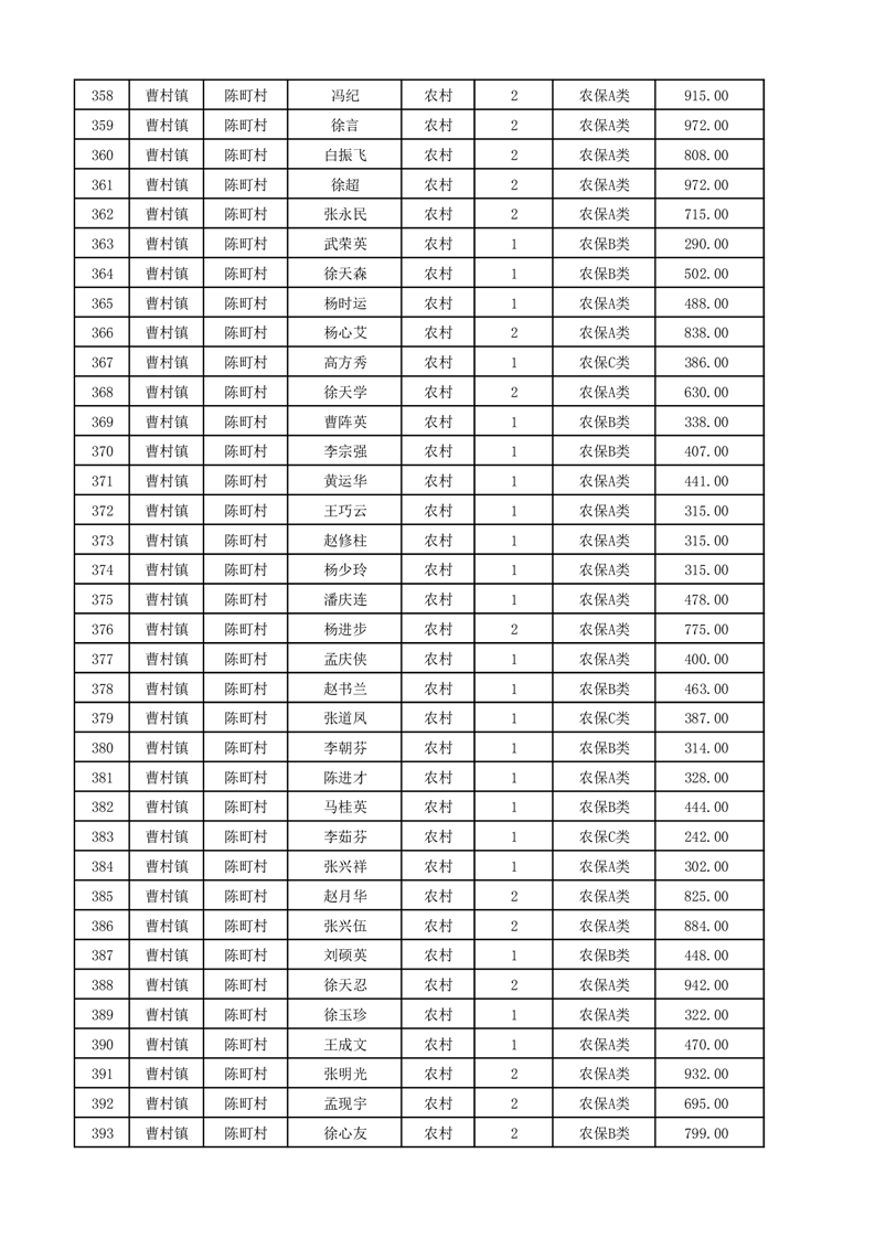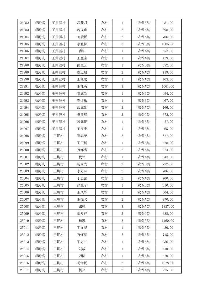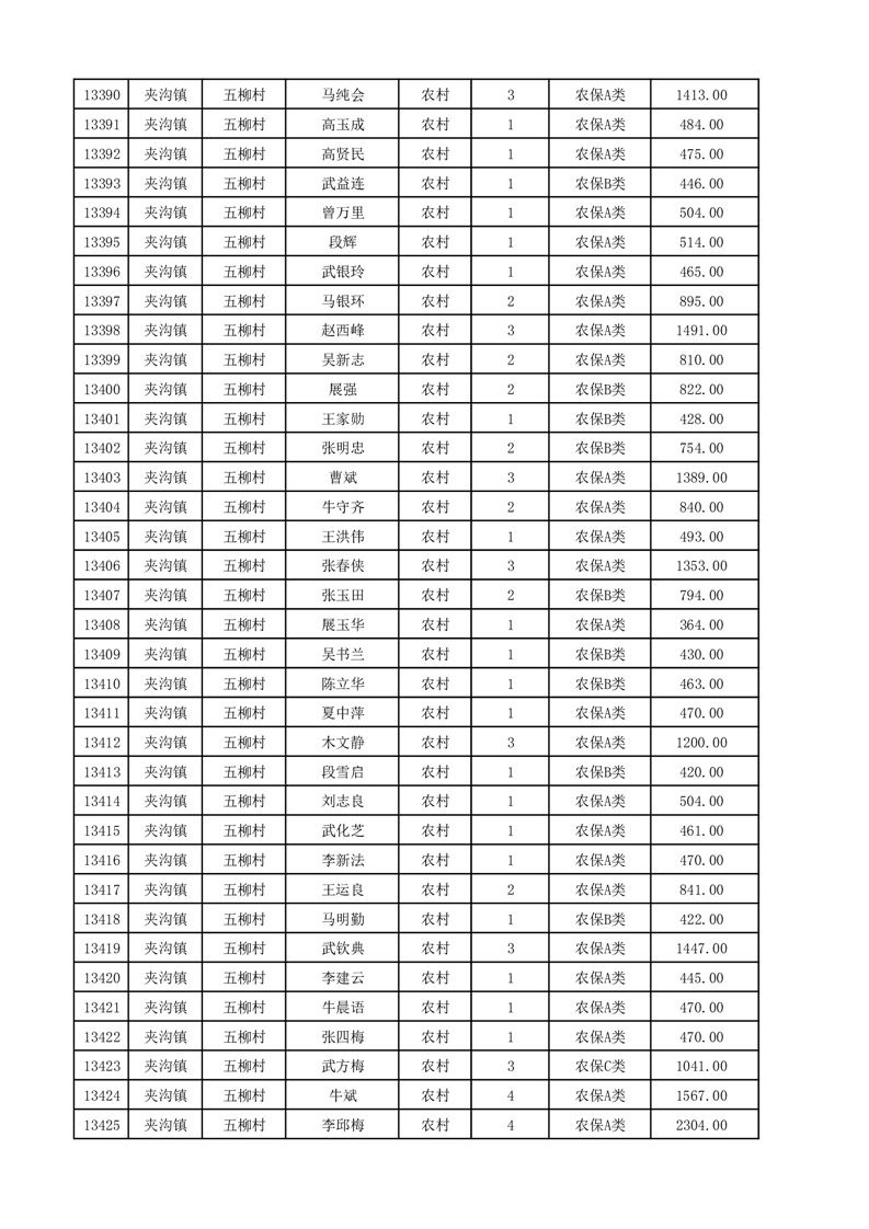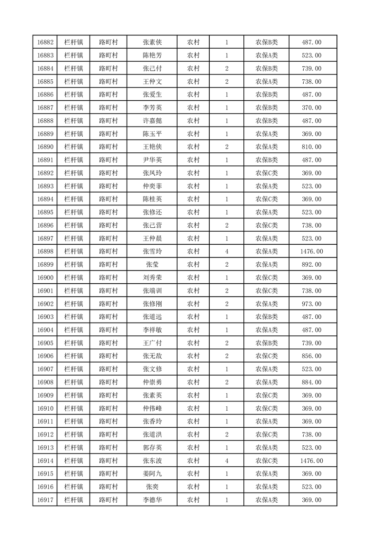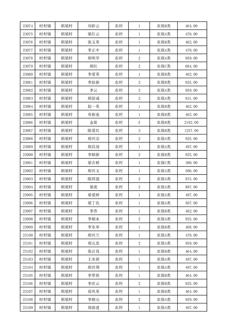 埇桥区2025年12月份农村低保花名册