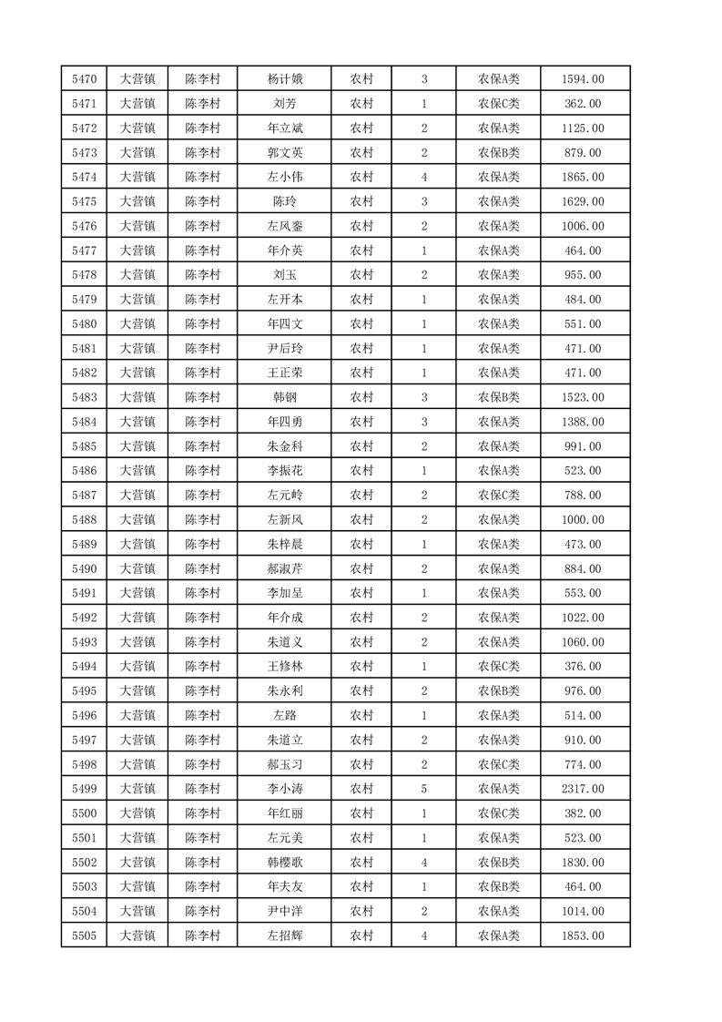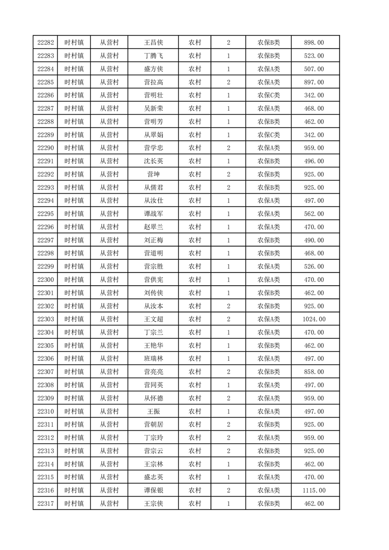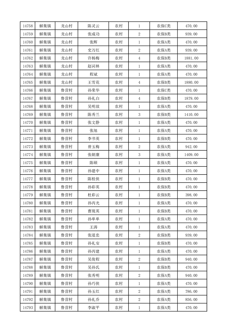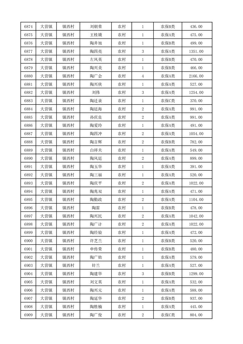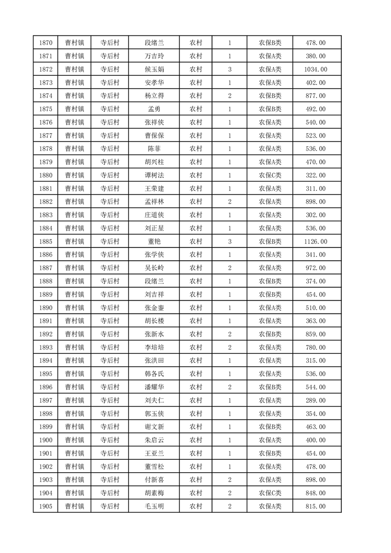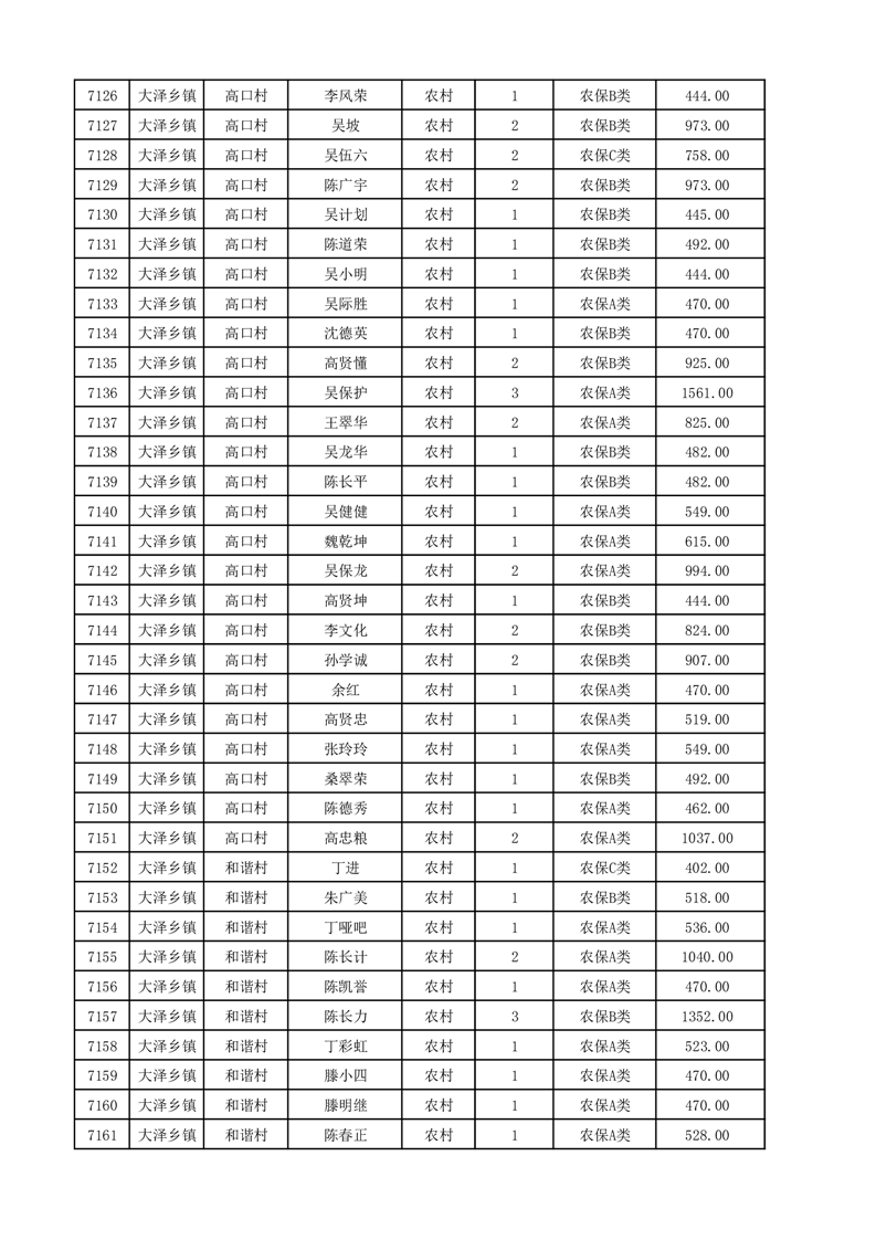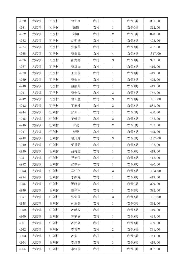 埇桥区2025年12月份农村低保花名册