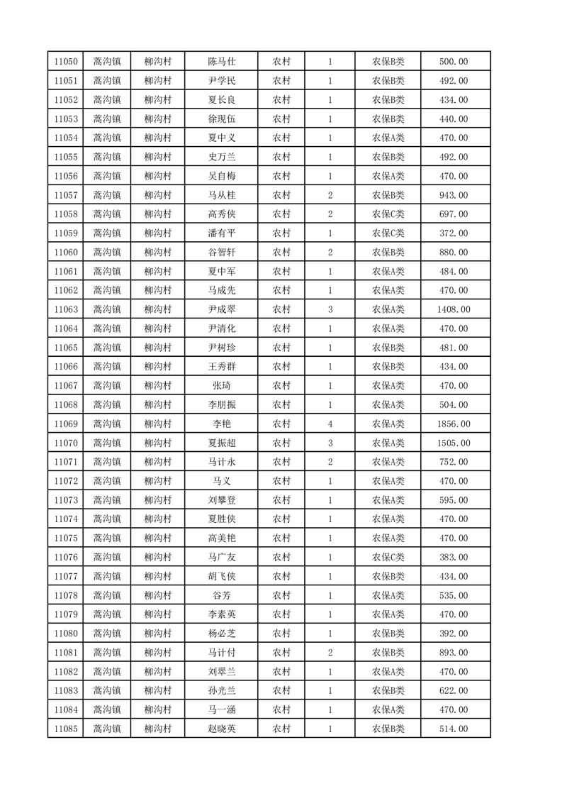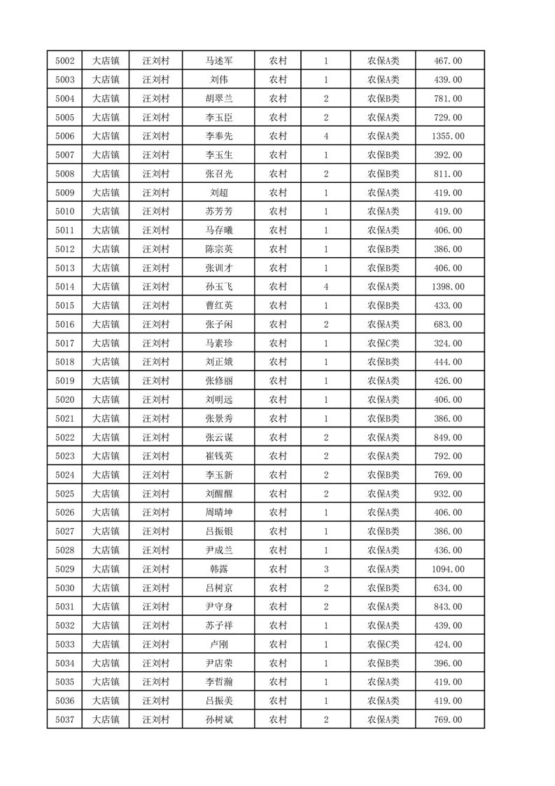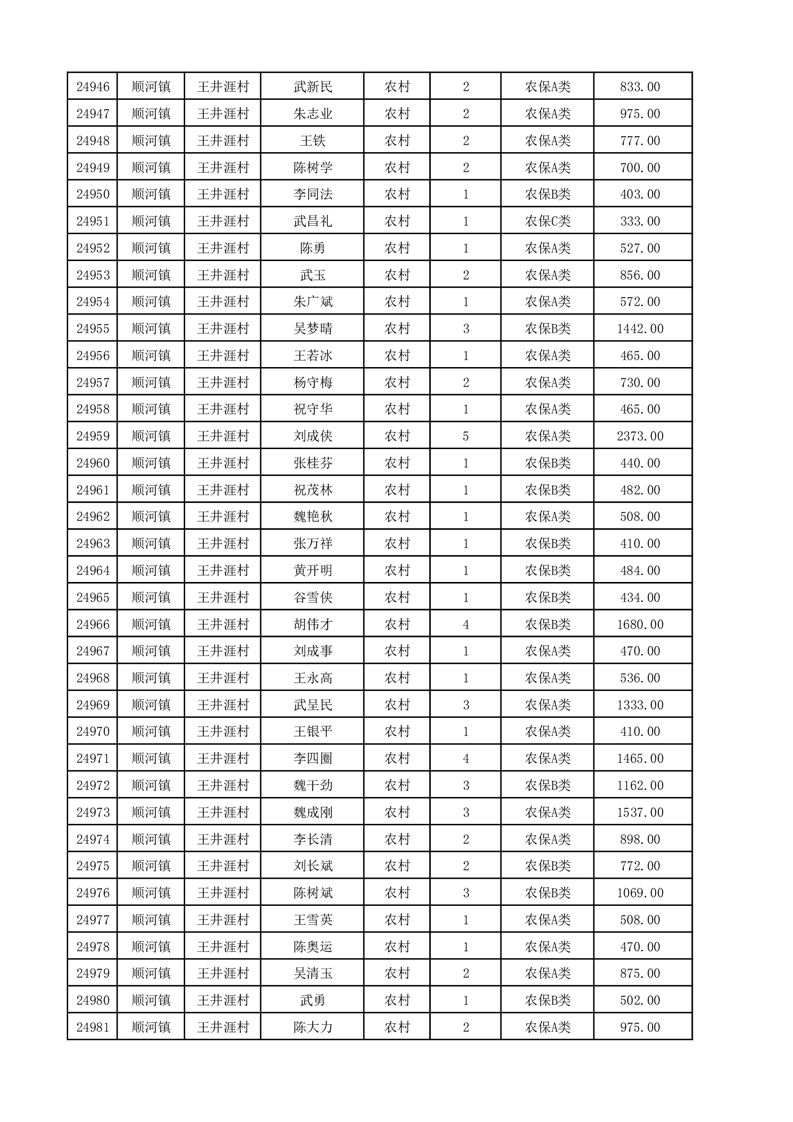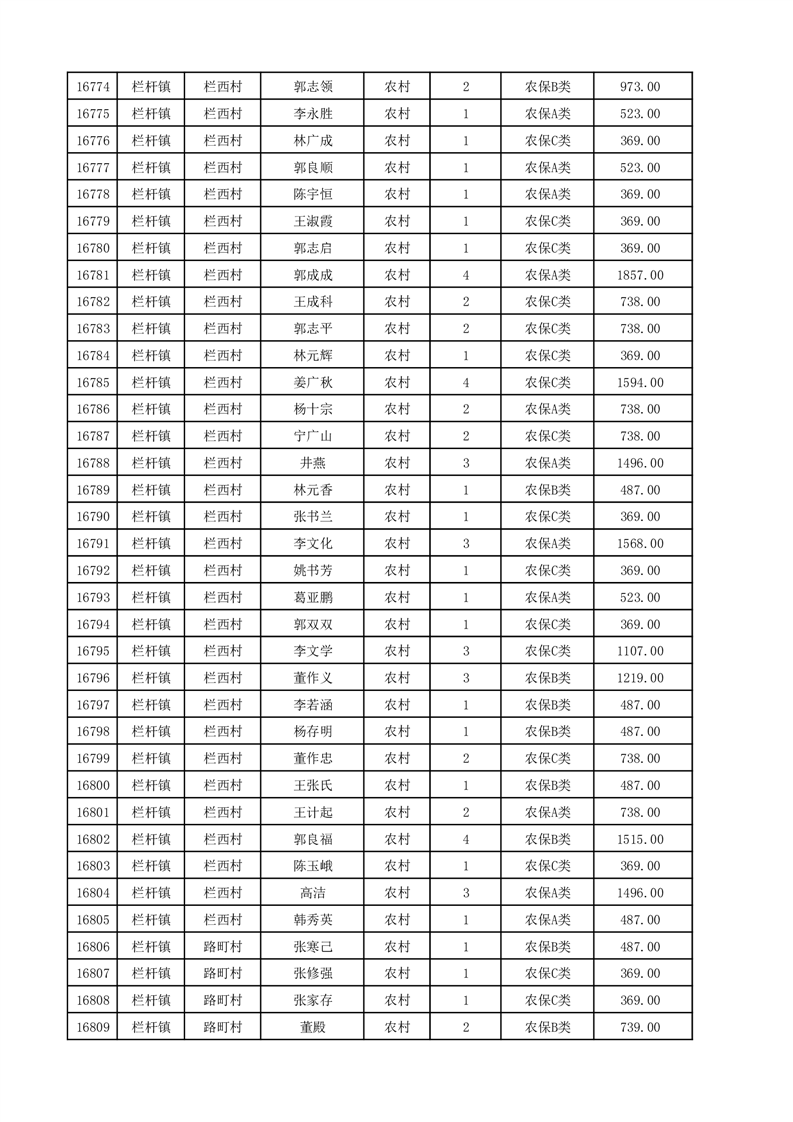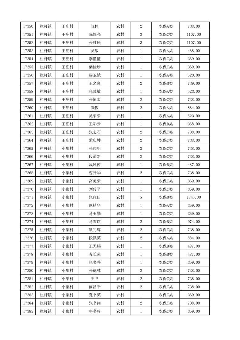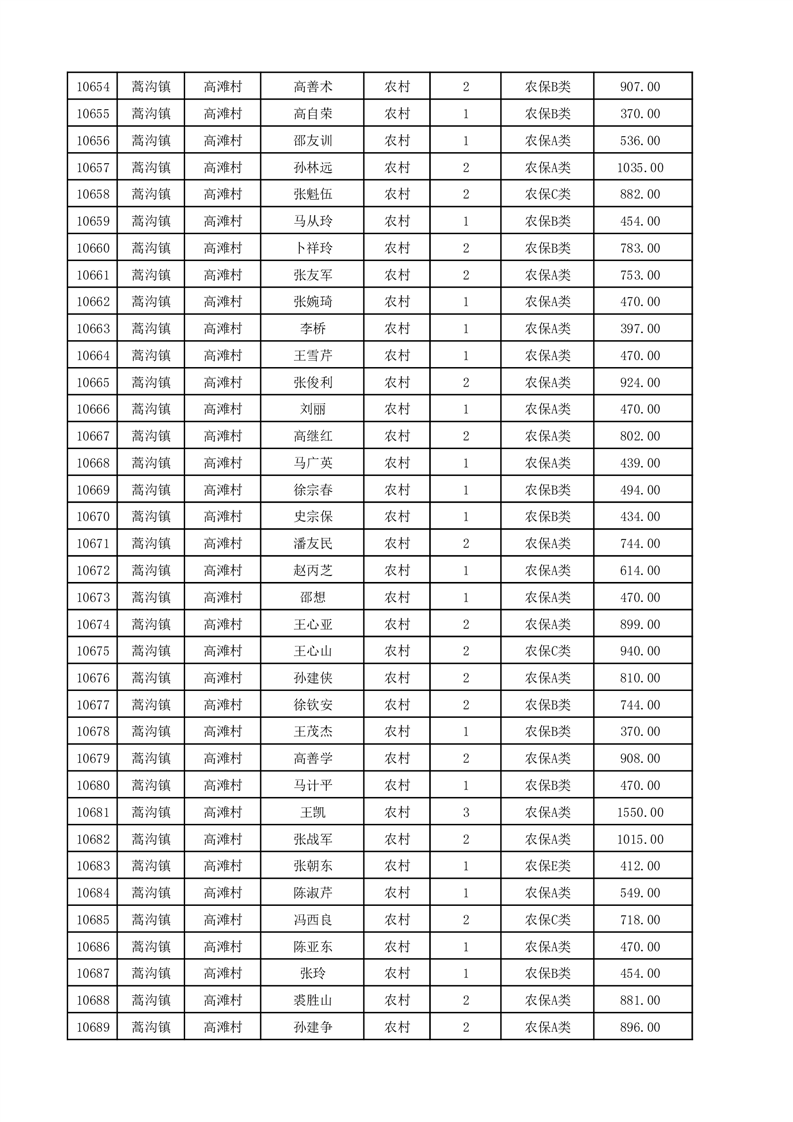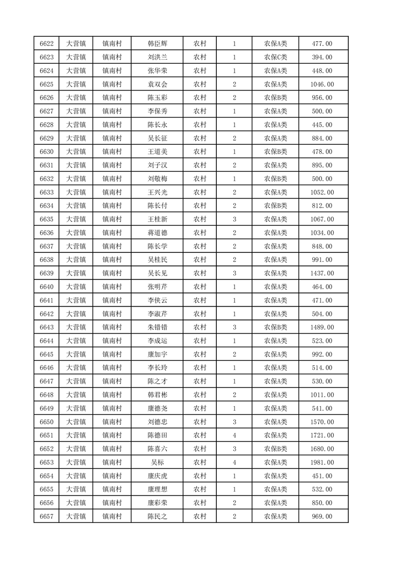 埇桥区2025年12月份农村低保花名册