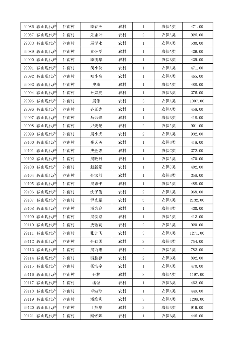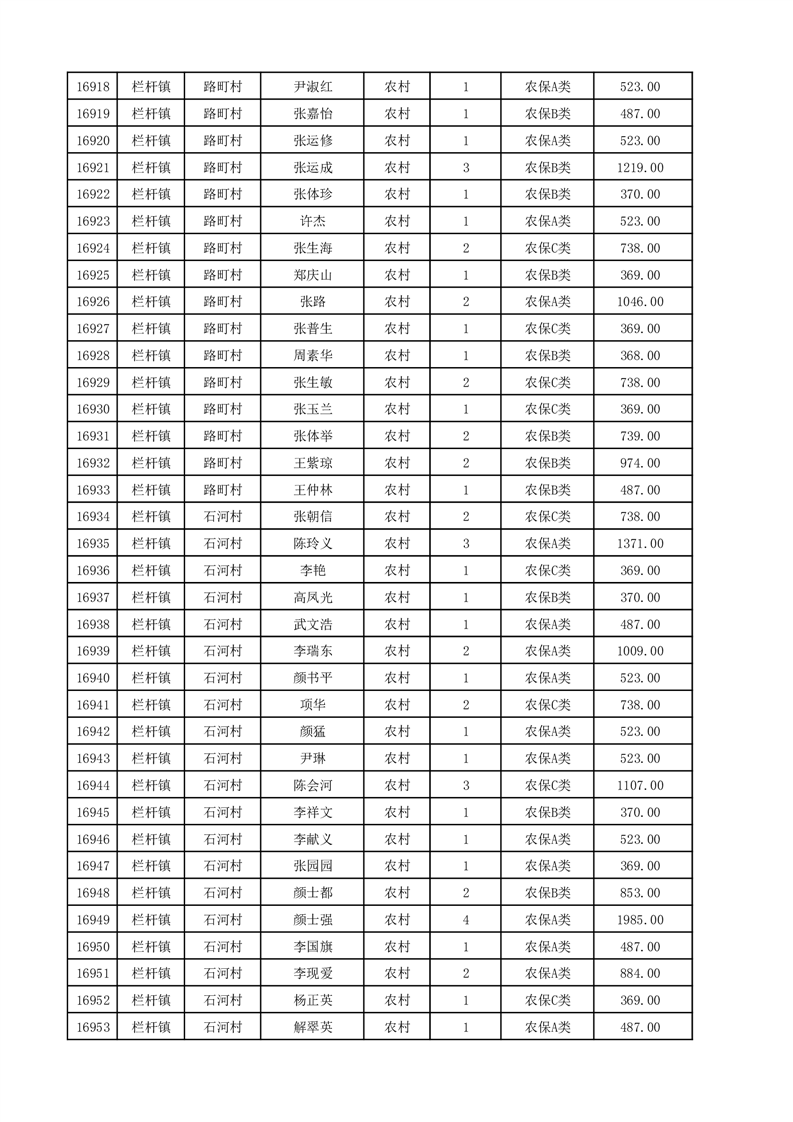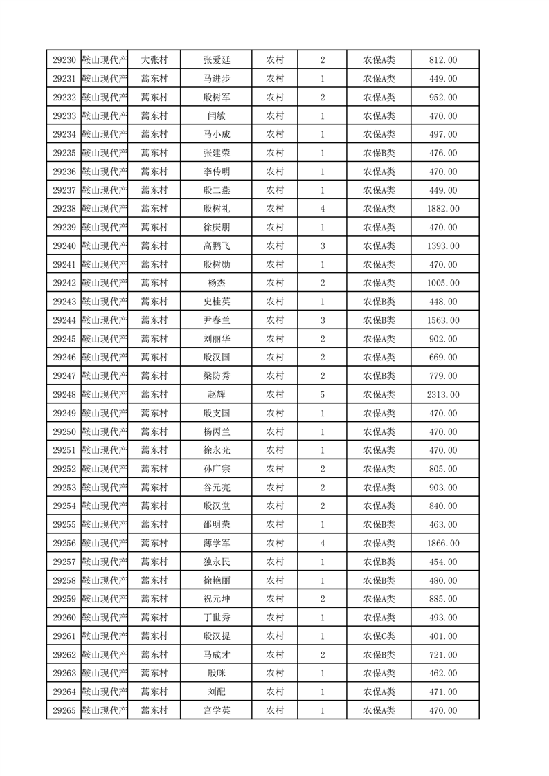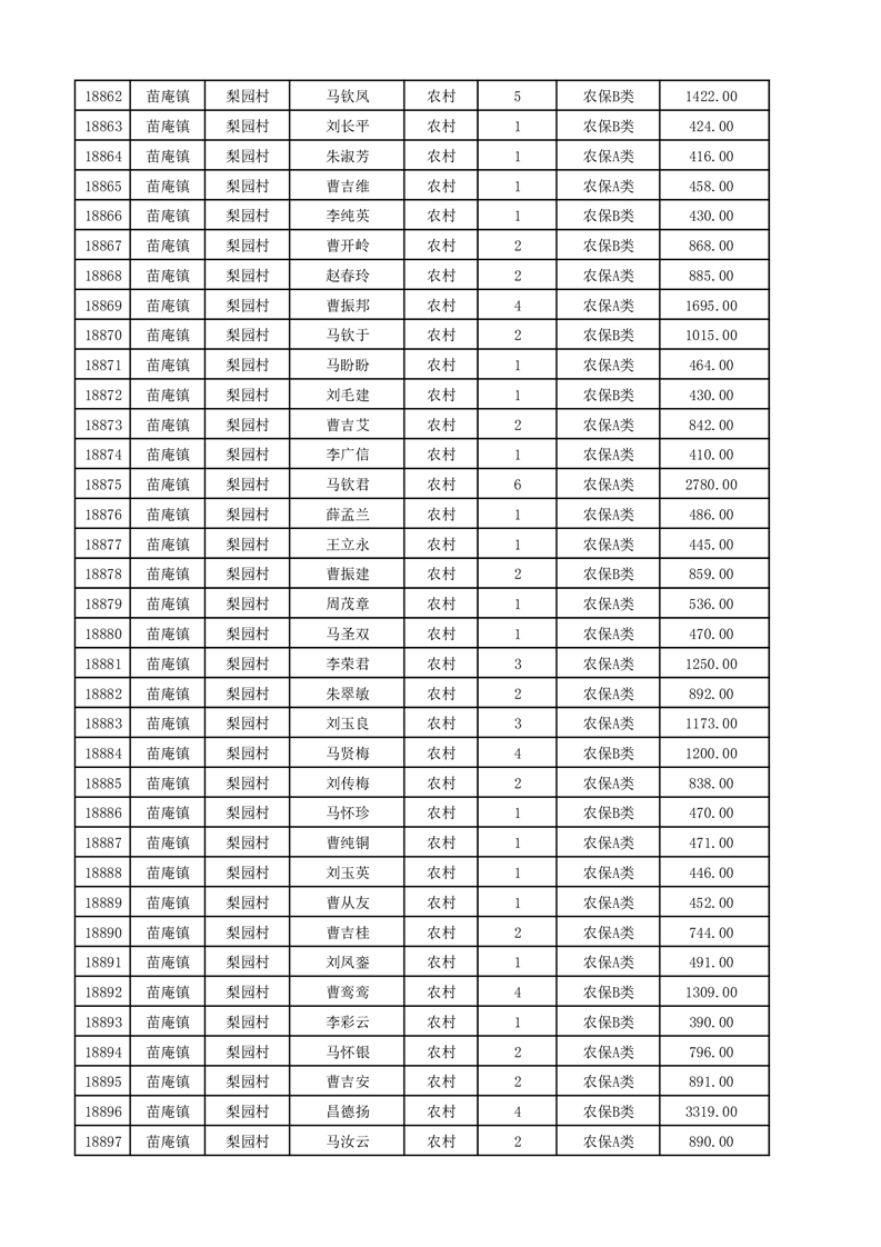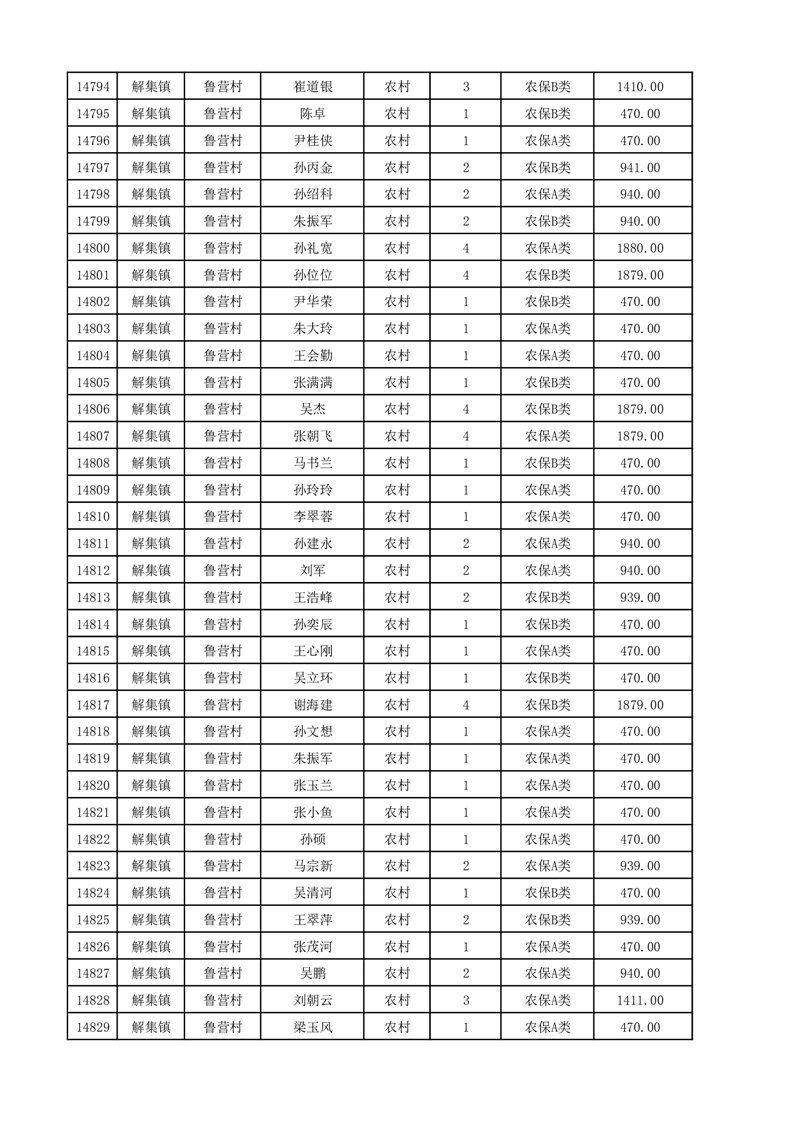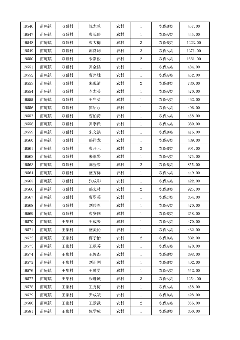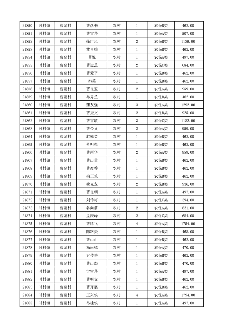 埇桥区2025年12月份农村低保花名册