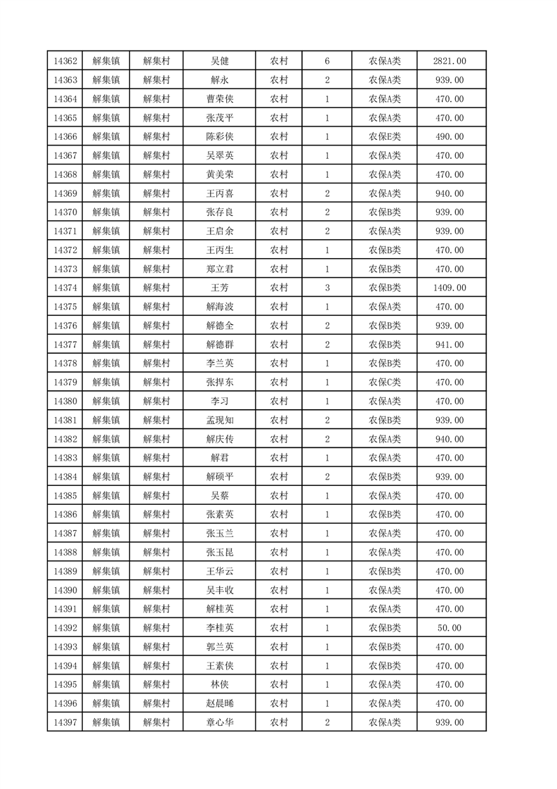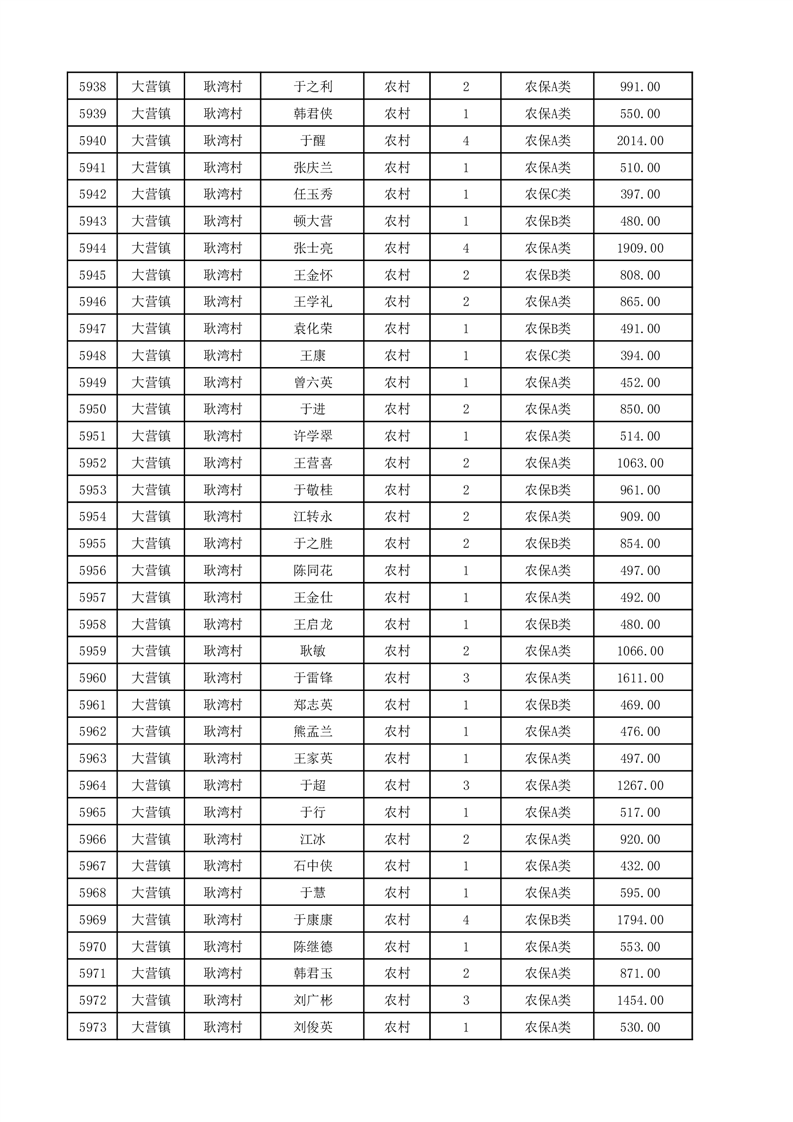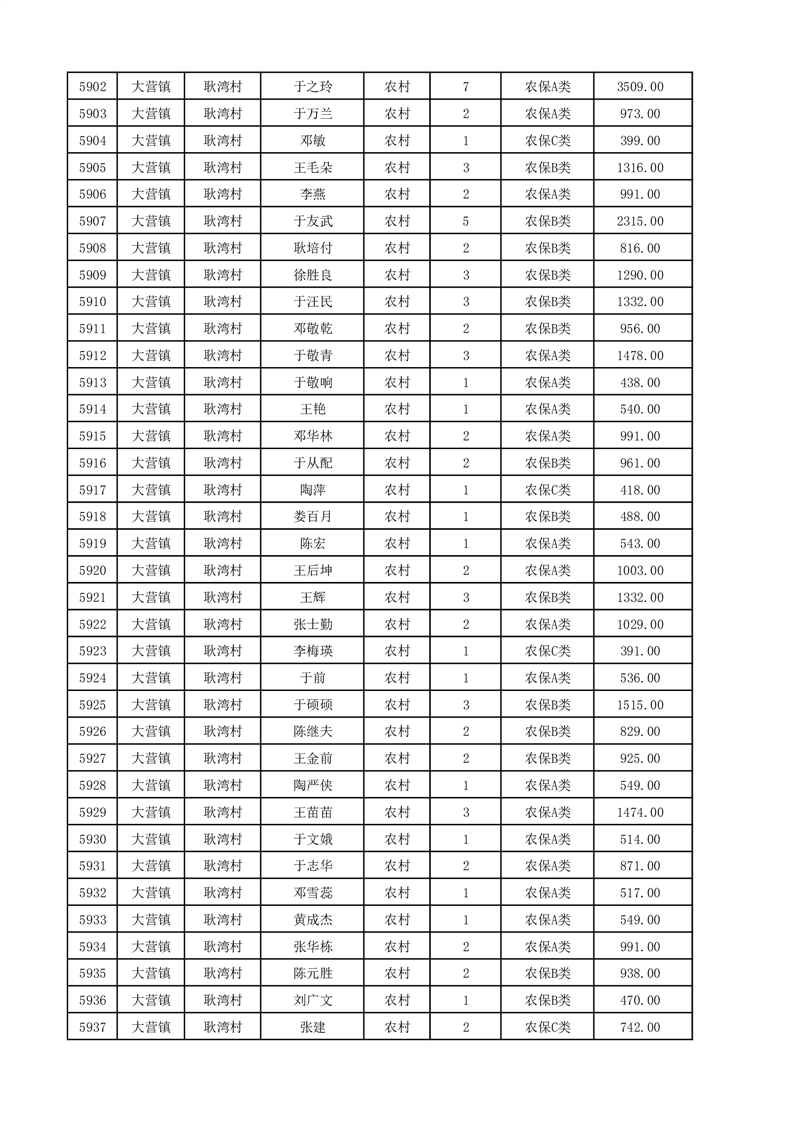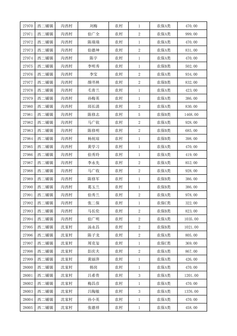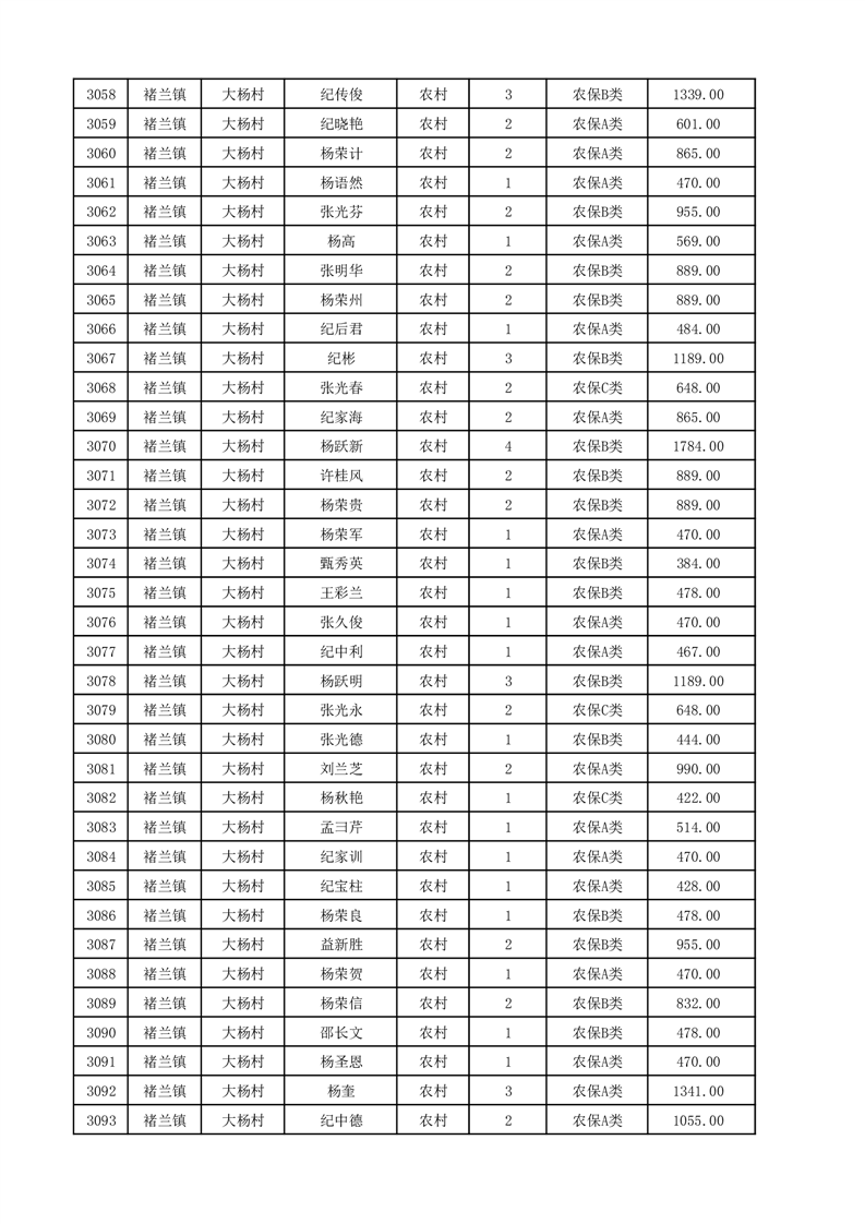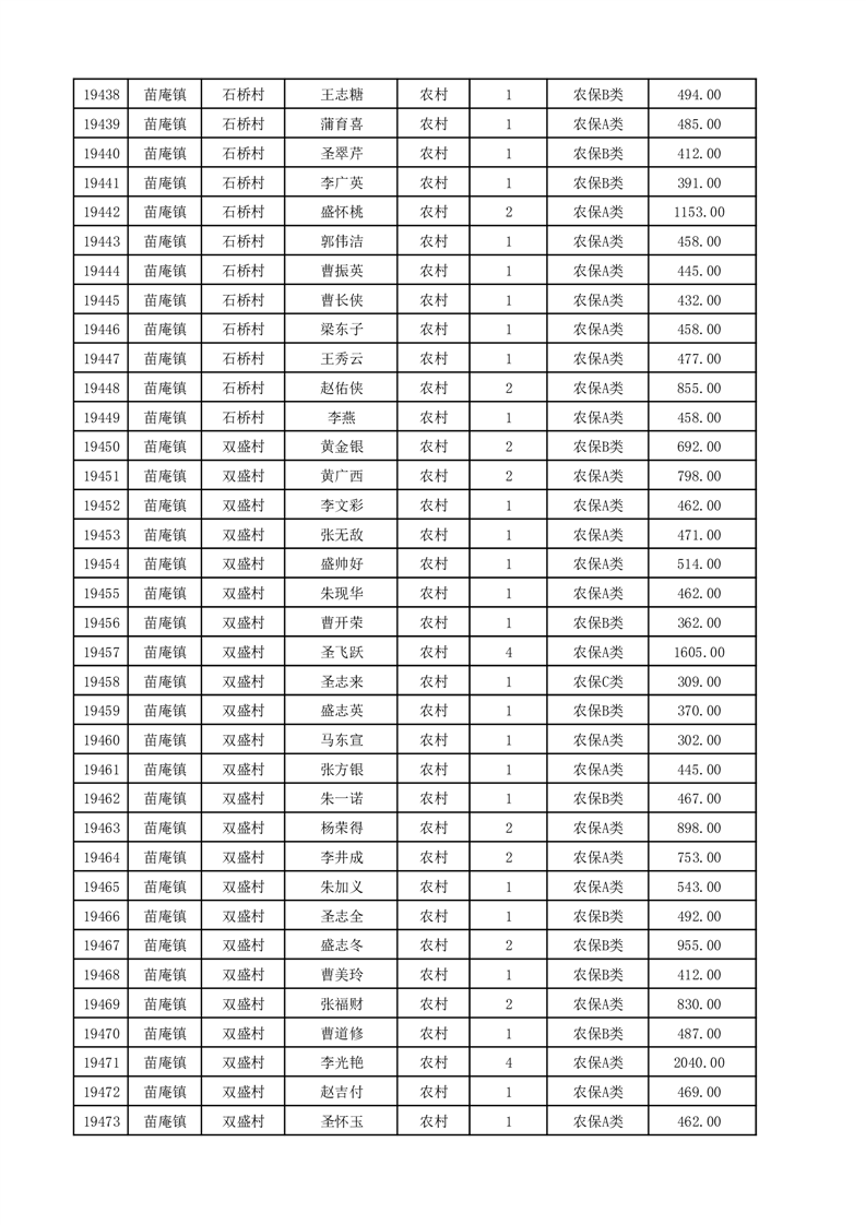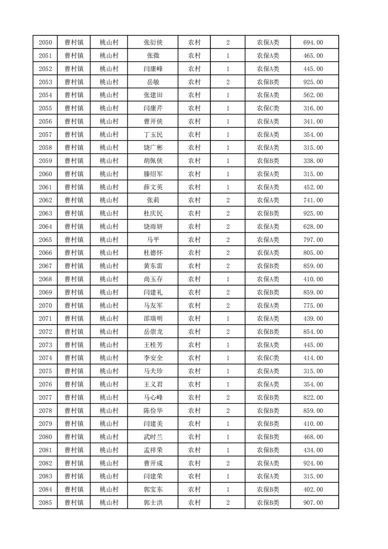 埇桥区2025年12月份农村低保花名册