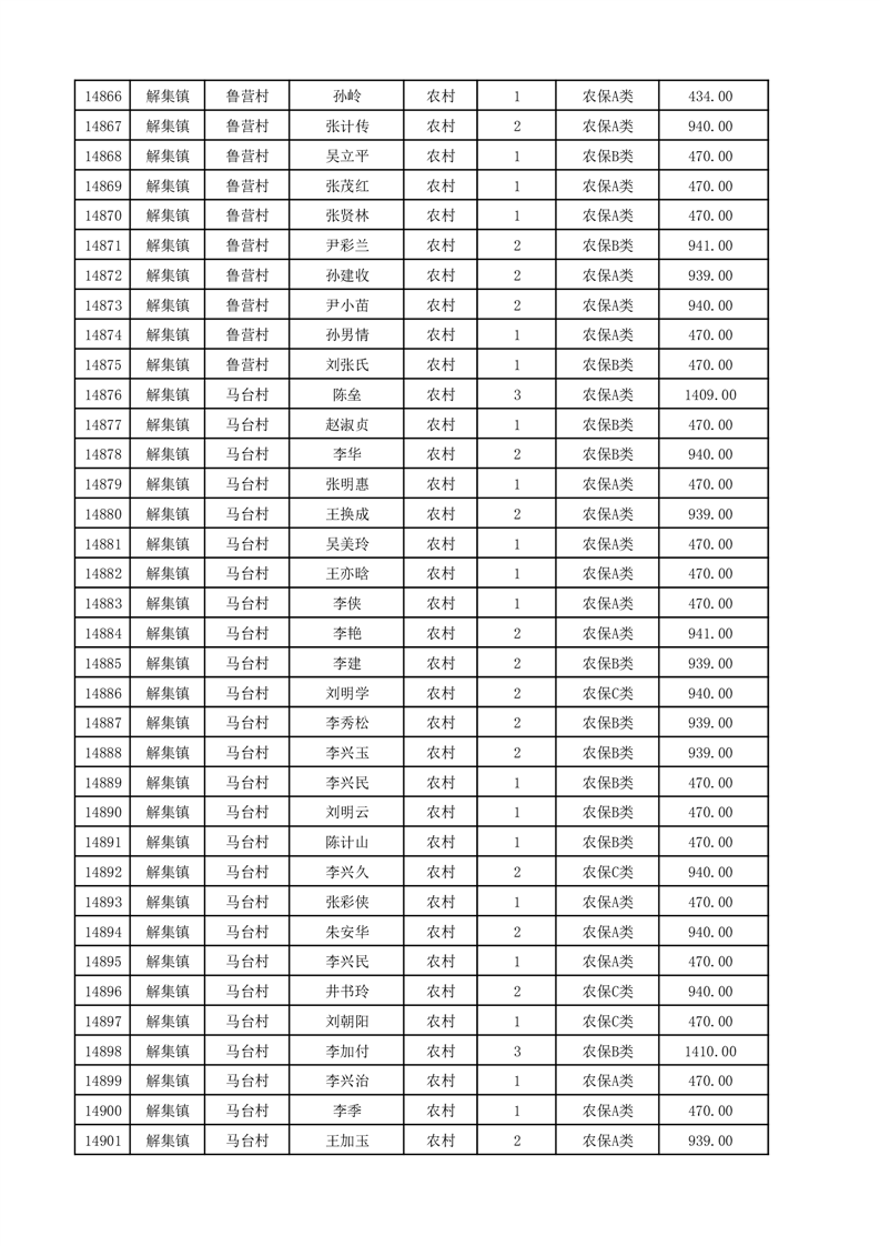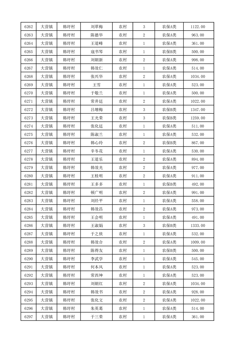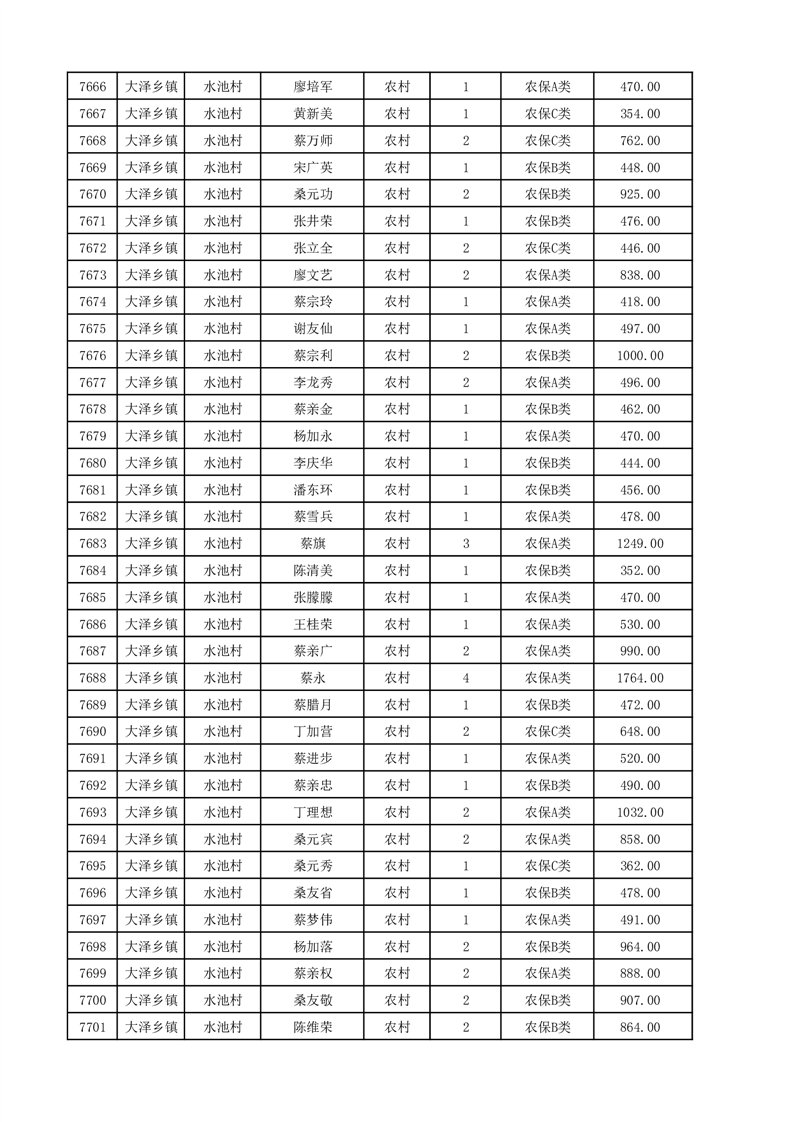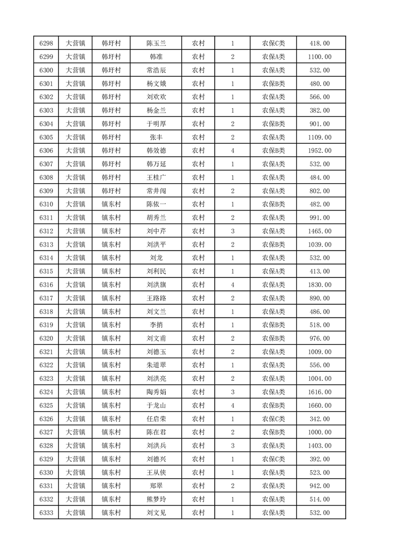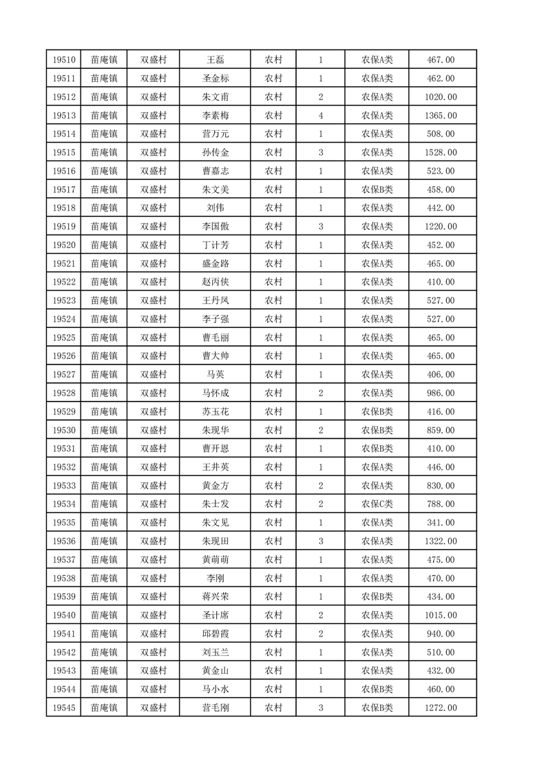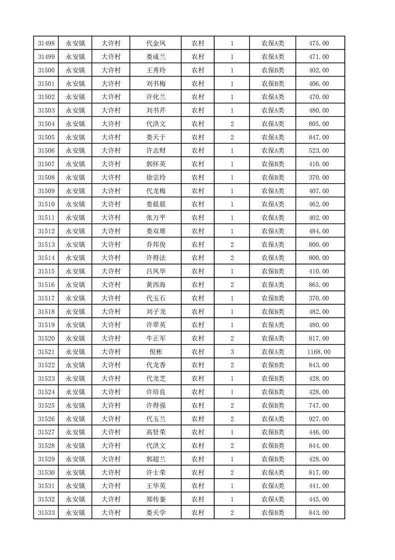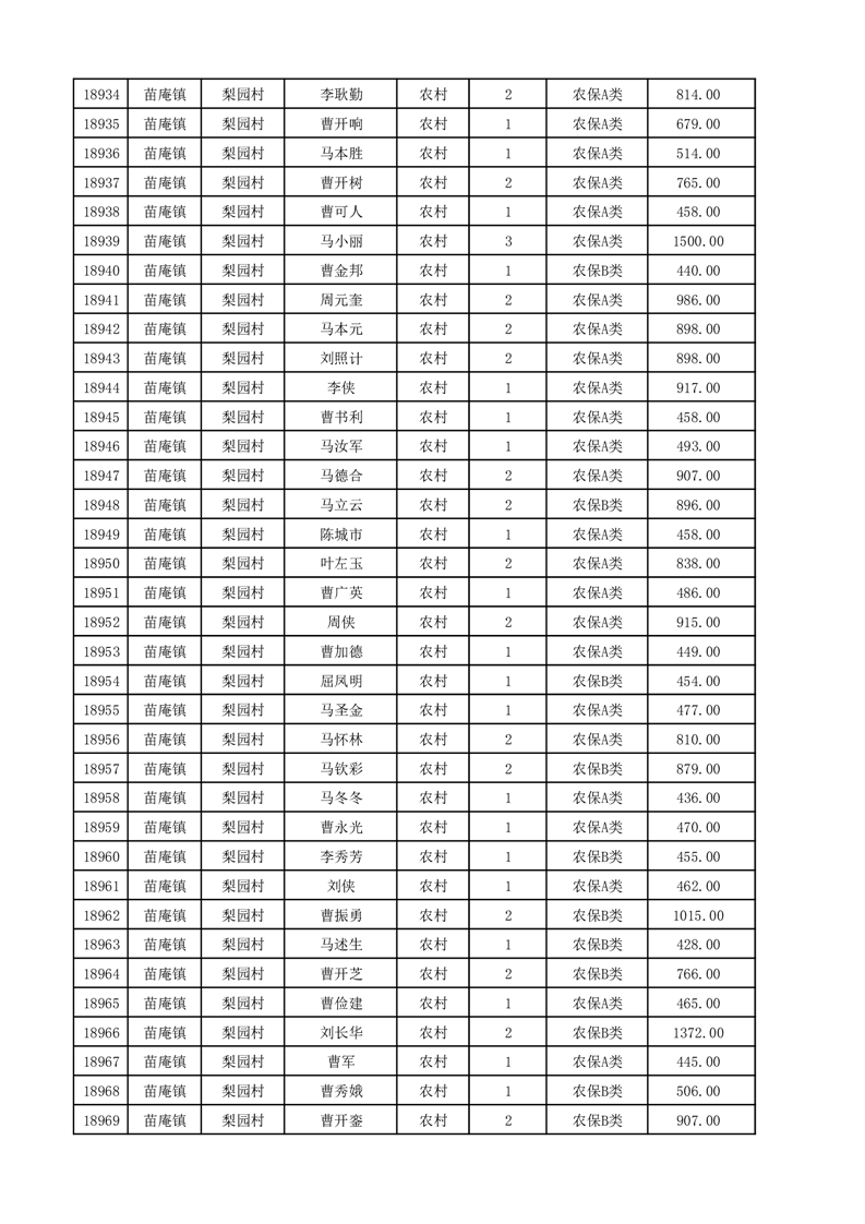 埇桥区2025年12月份农村低保花名册
