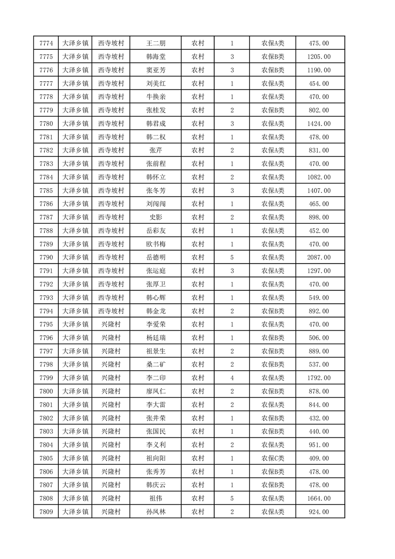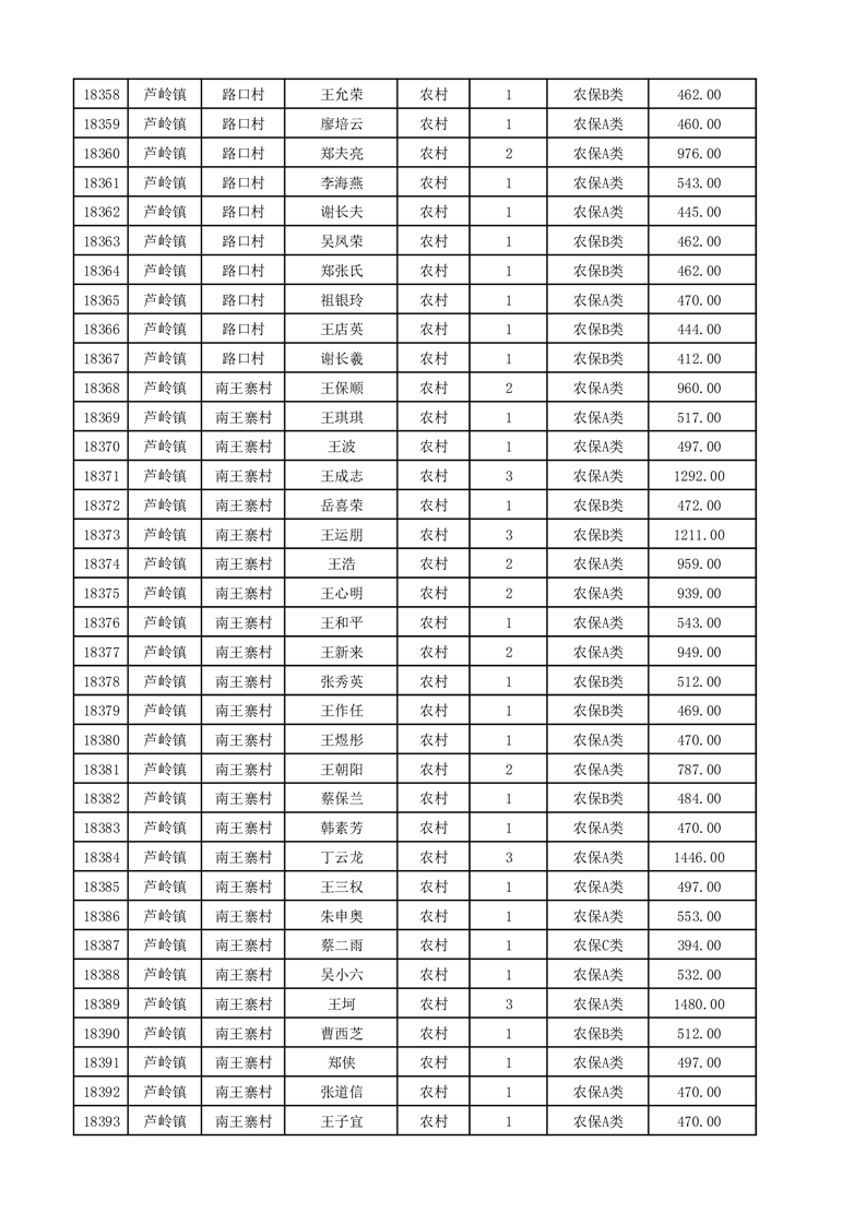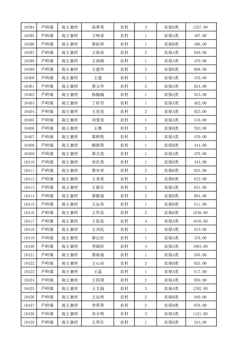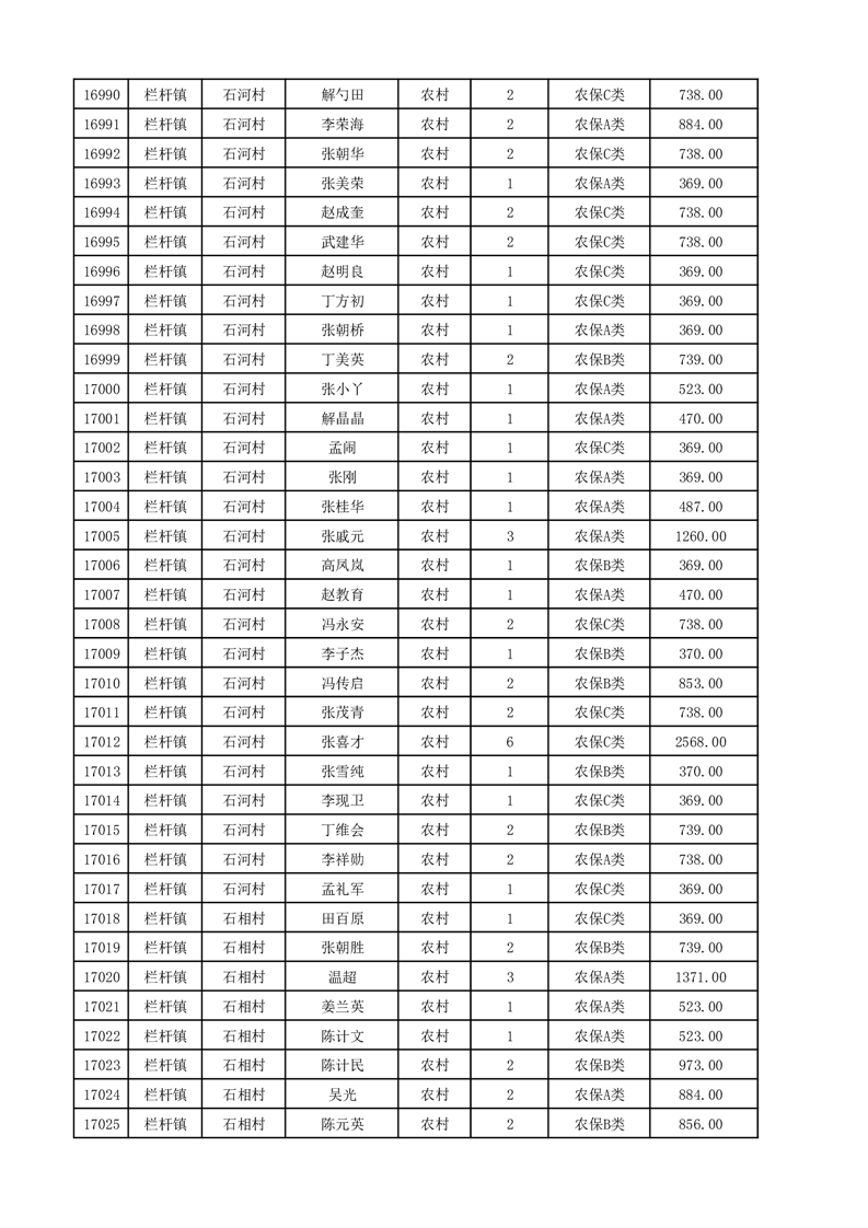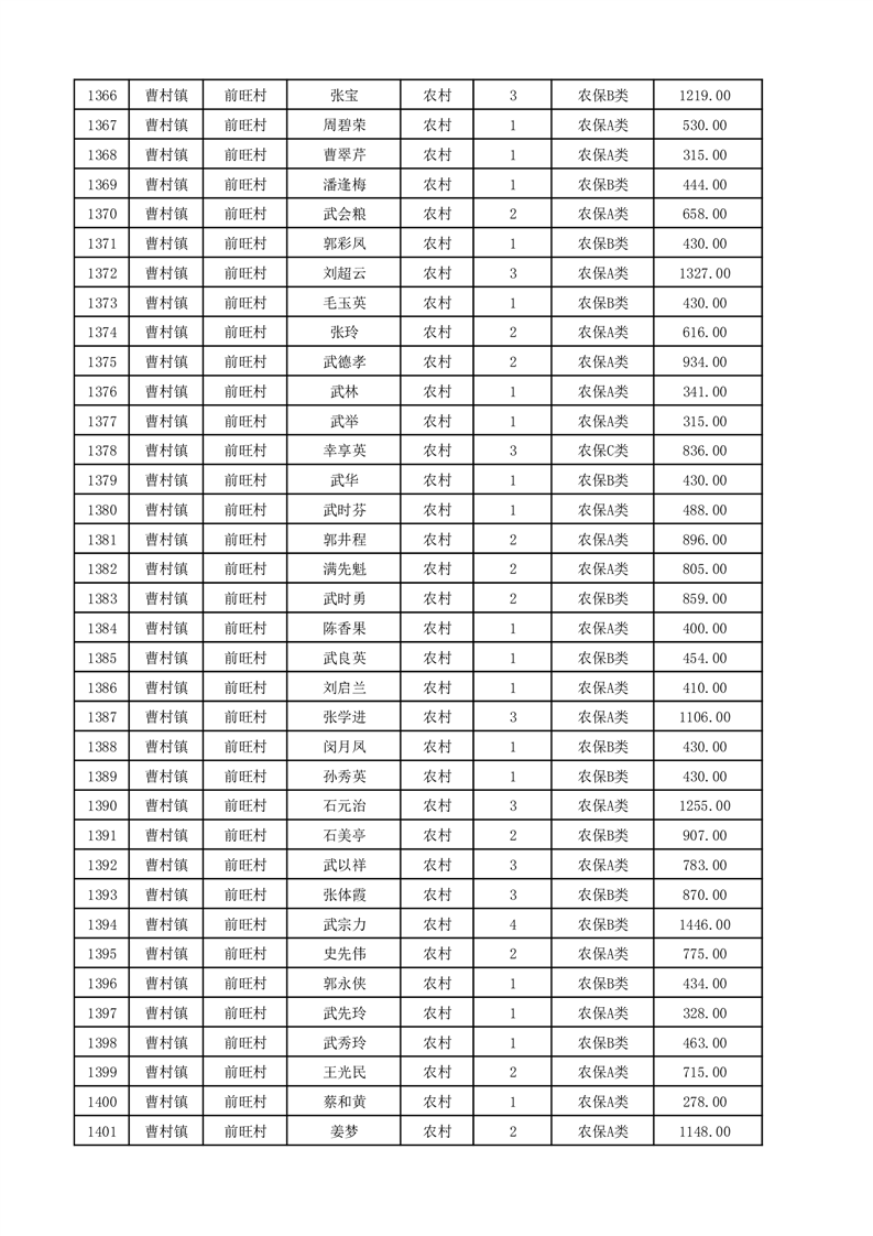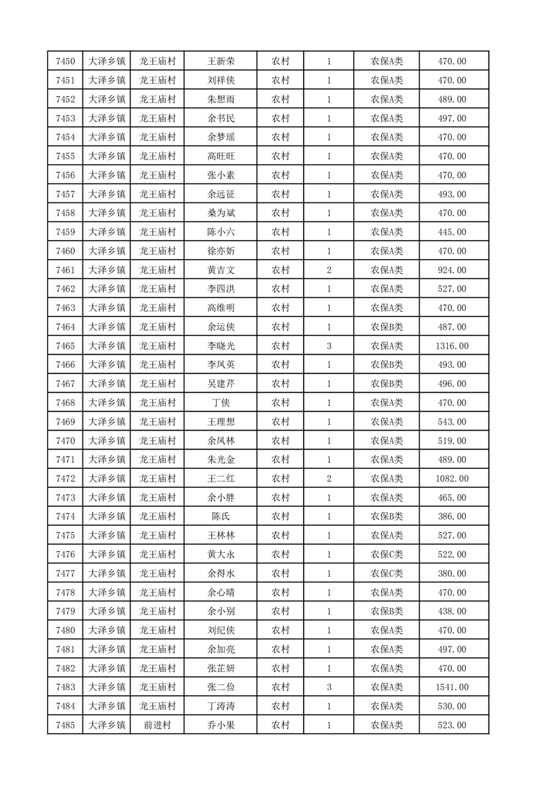 埇桥区2025年12月份农村低保花名册
