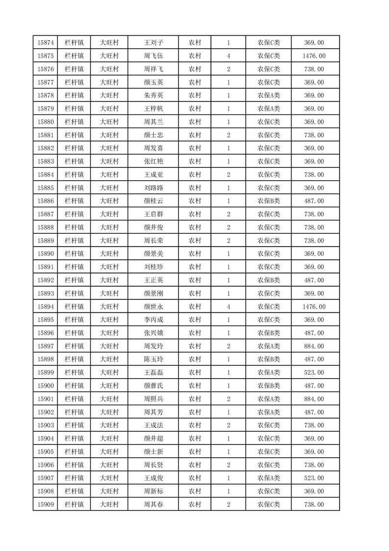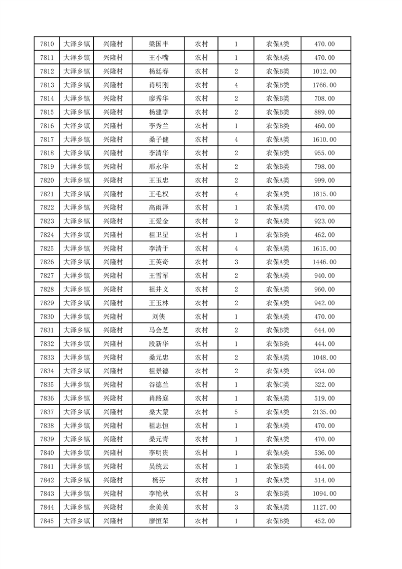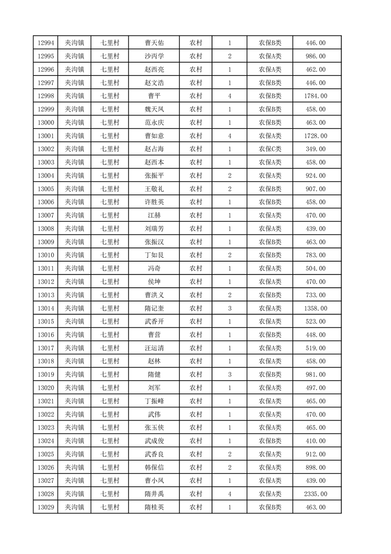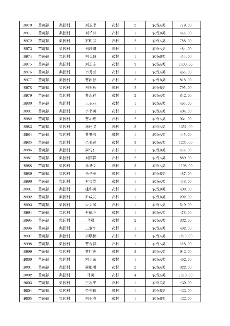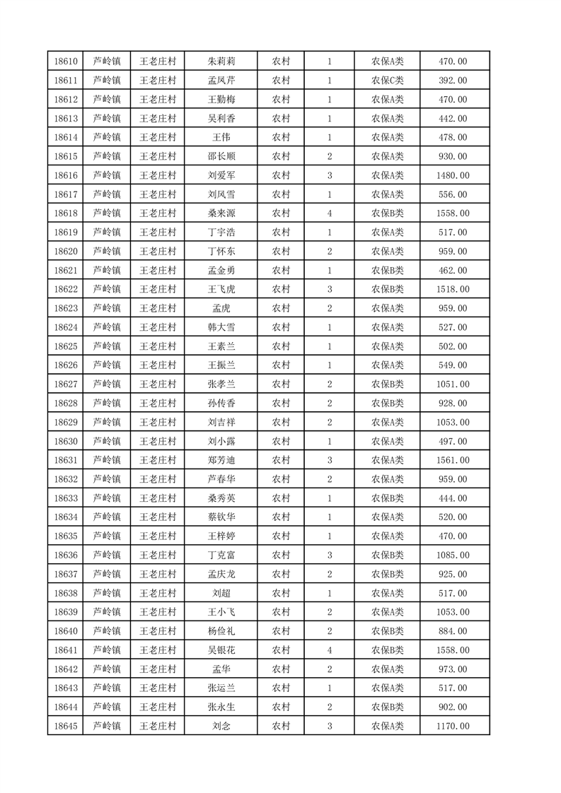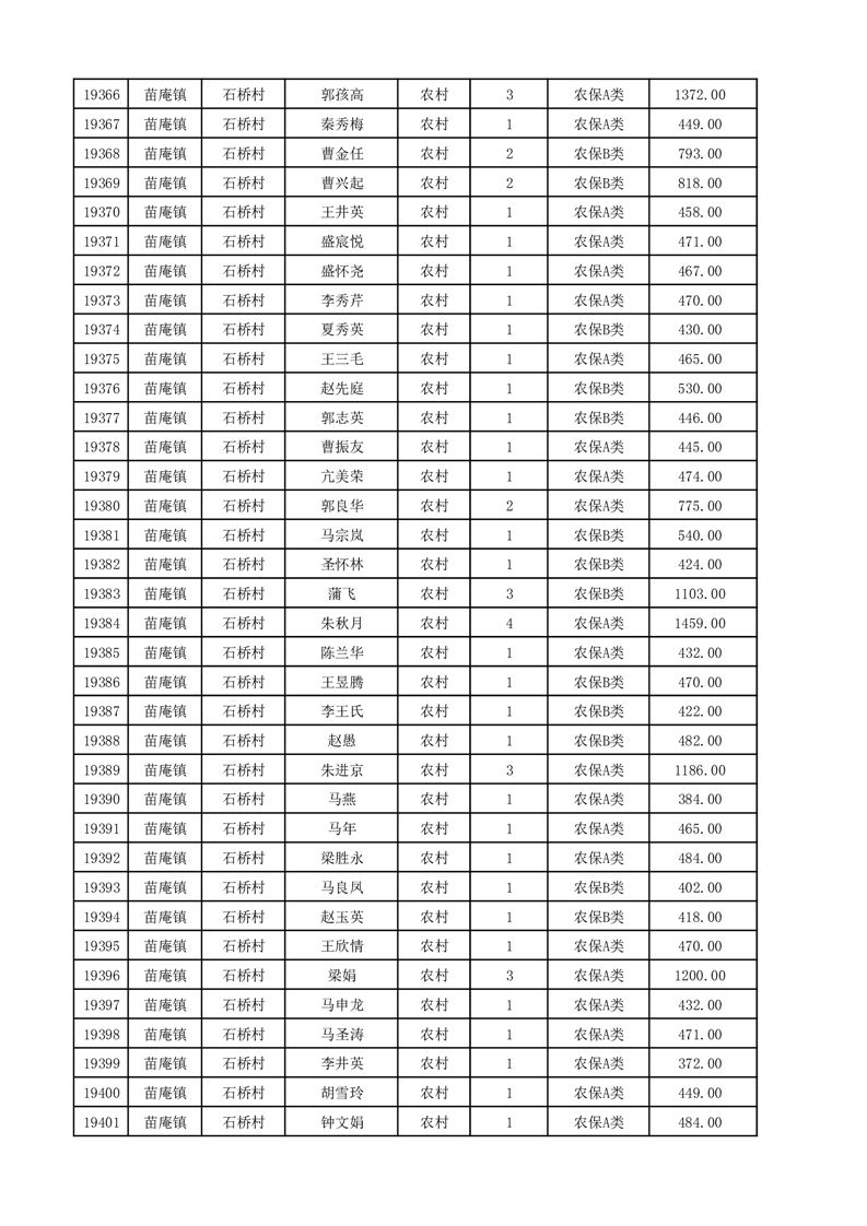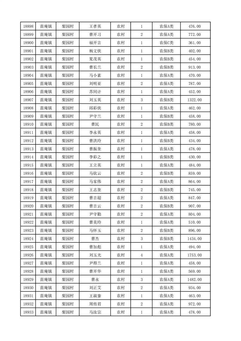 埇桥区2025年12月份农村低保花名册