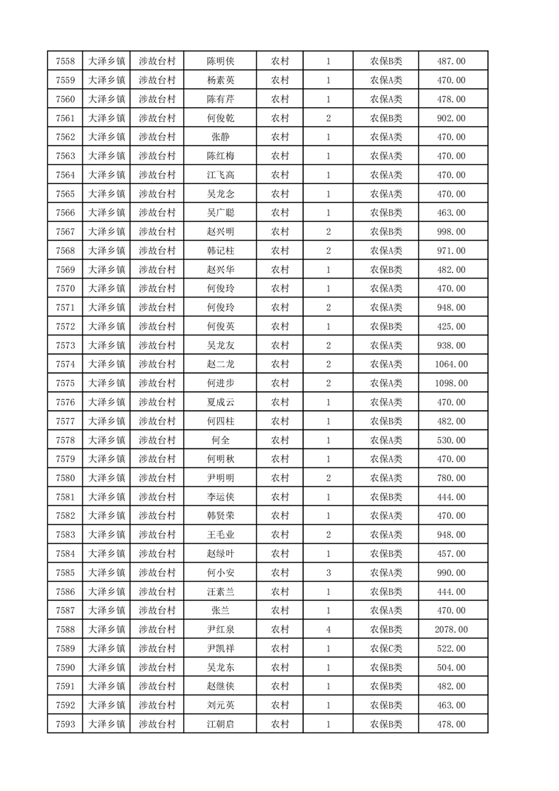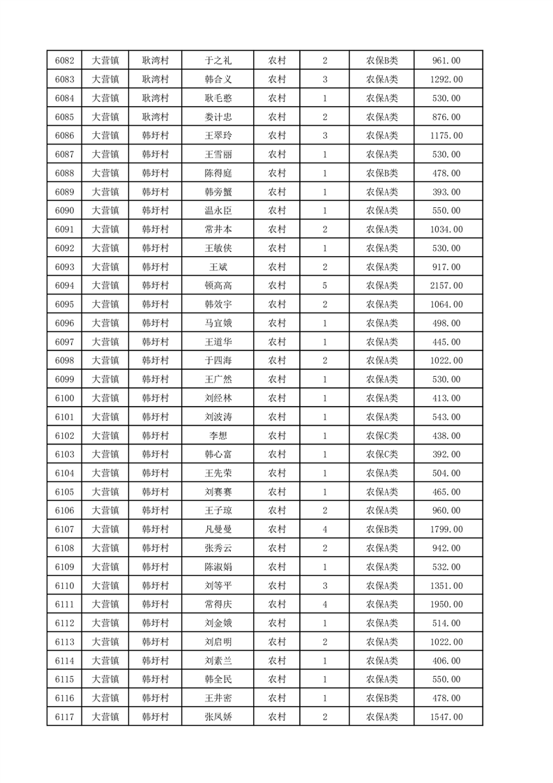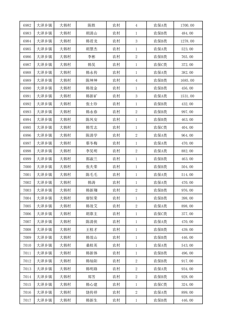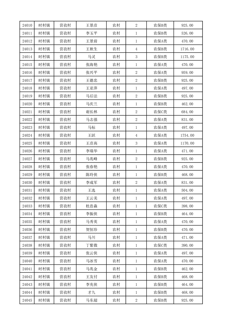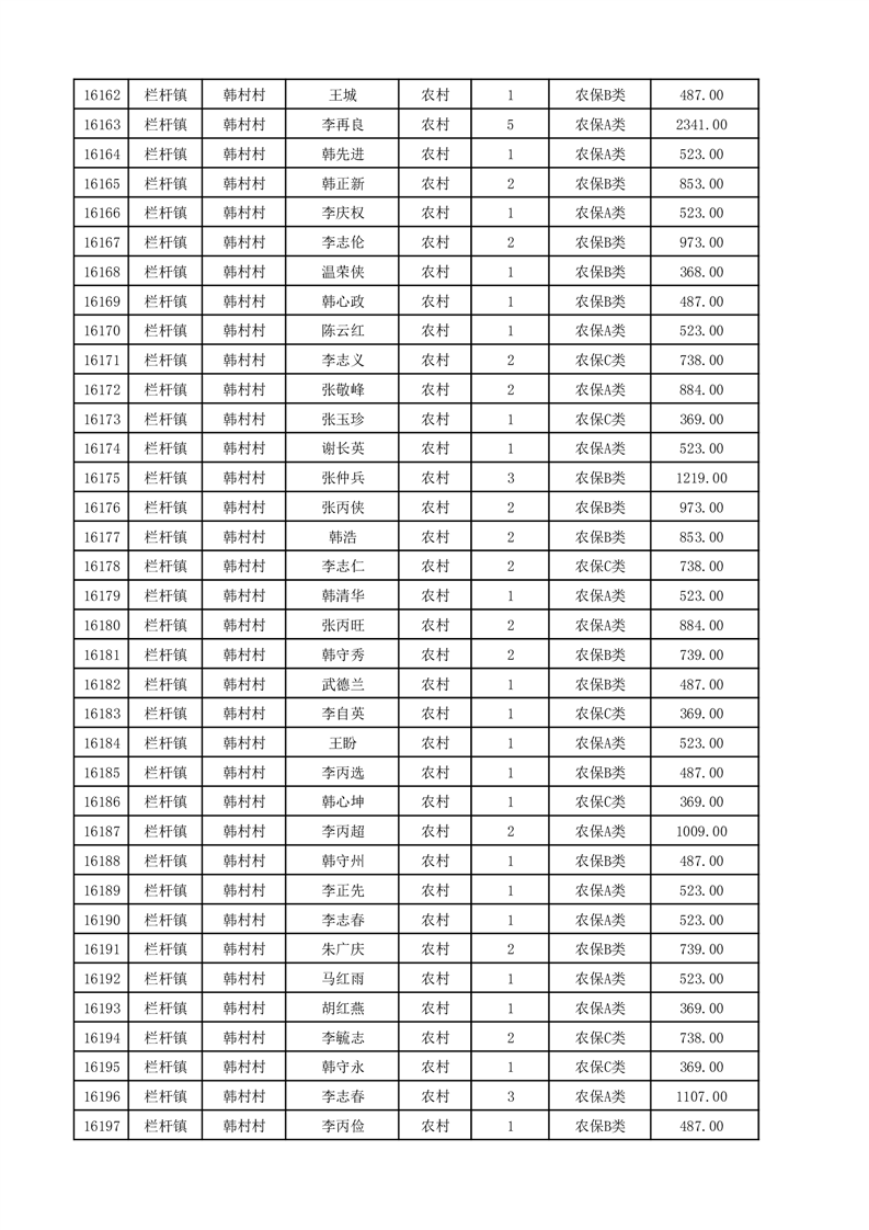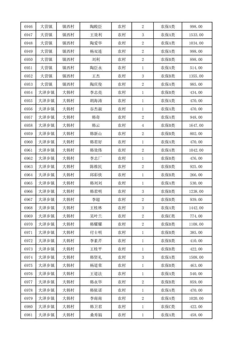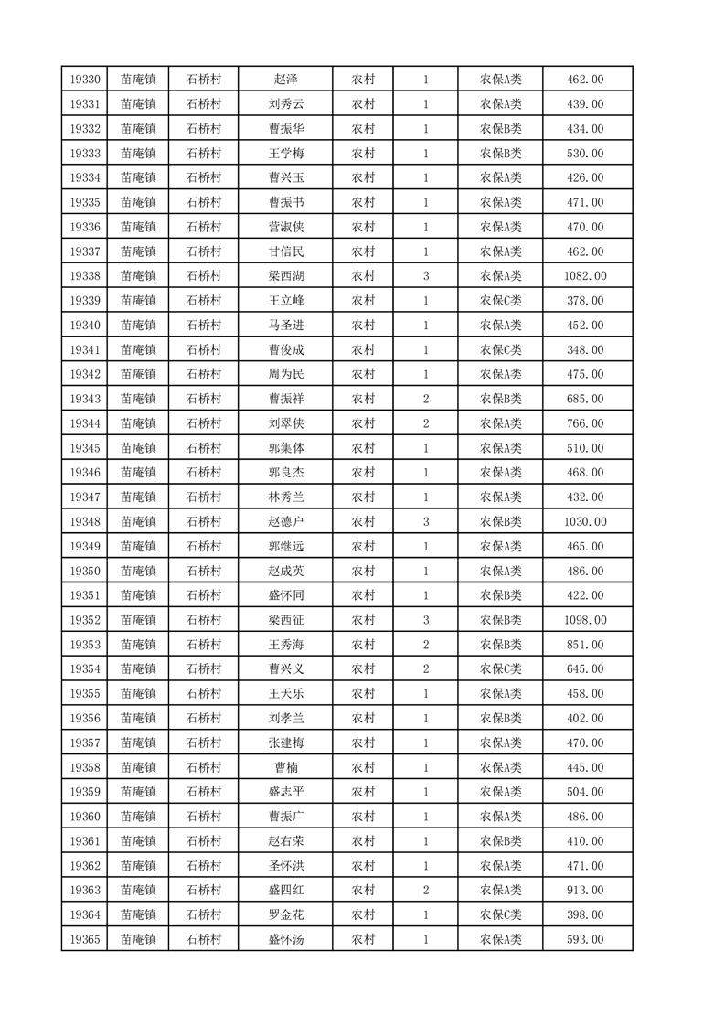 埇桥区2025年12月份农村低保花名册