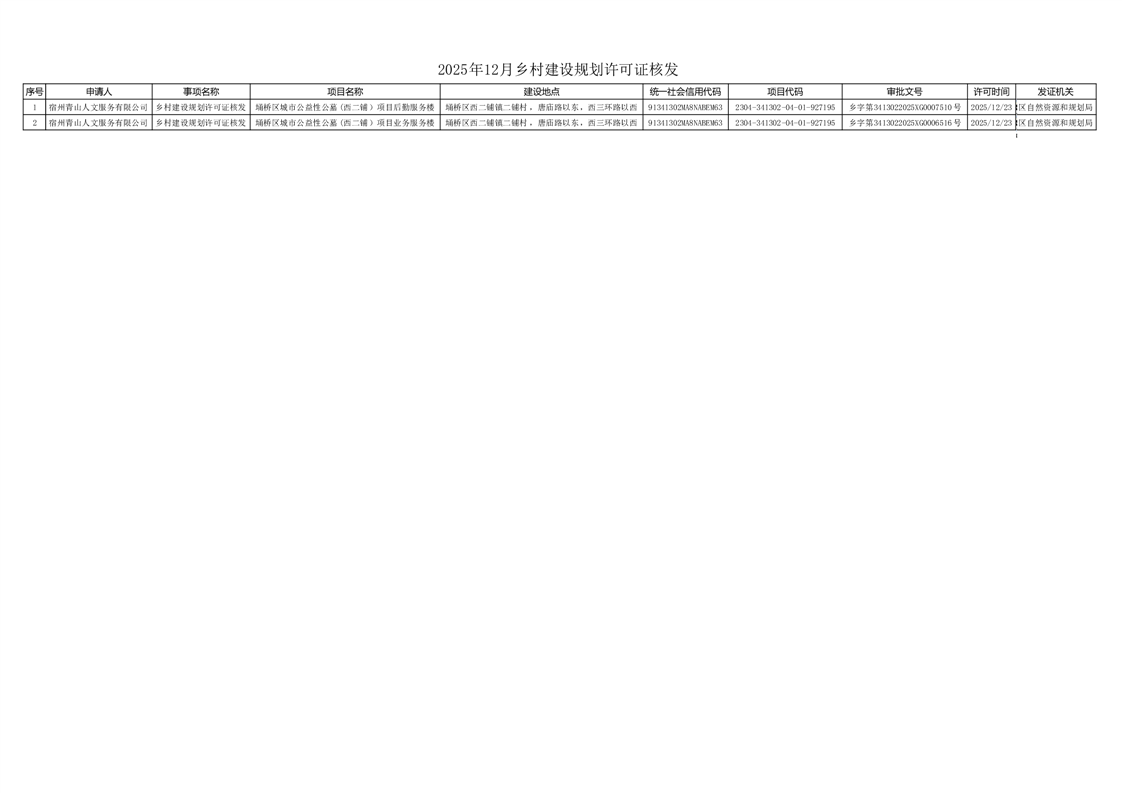 2025年12月乡村建设规划许可证核发