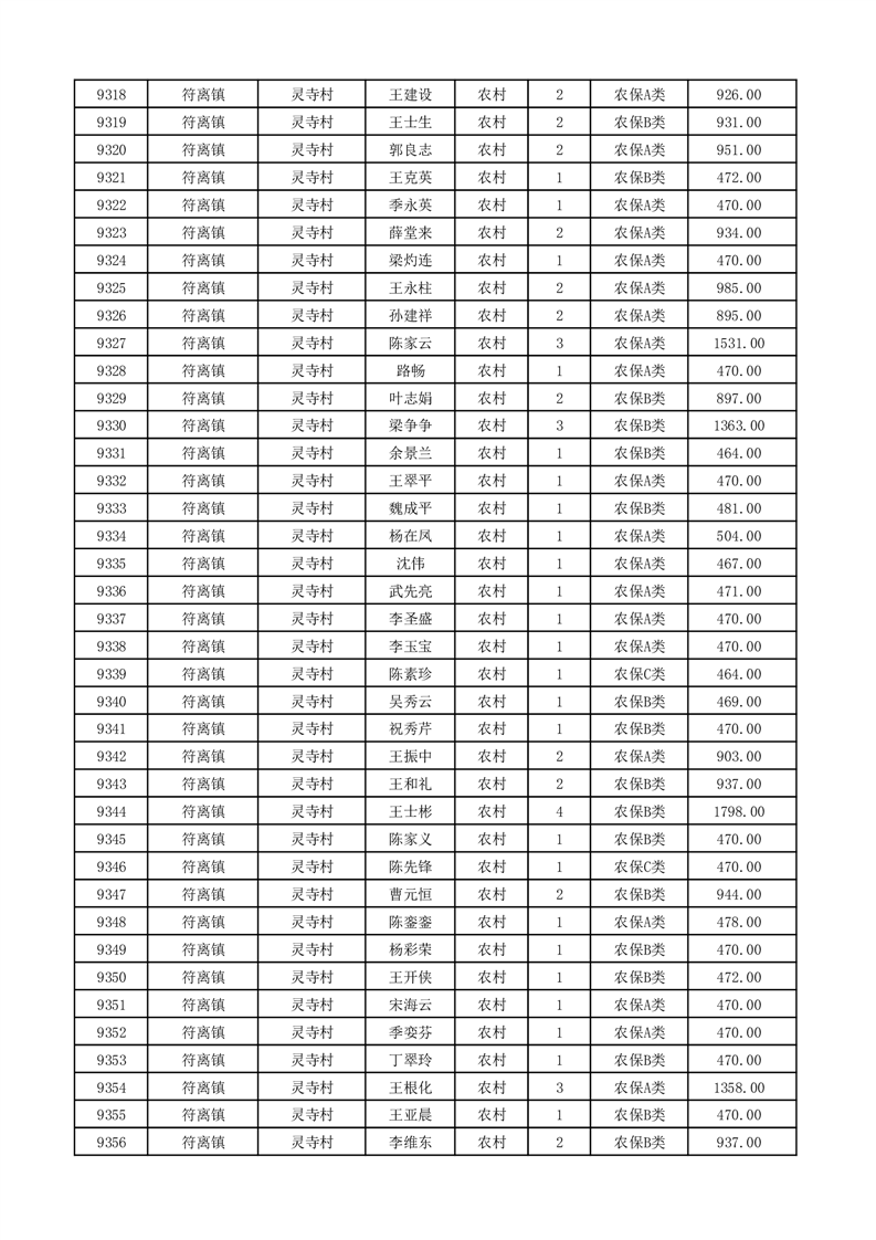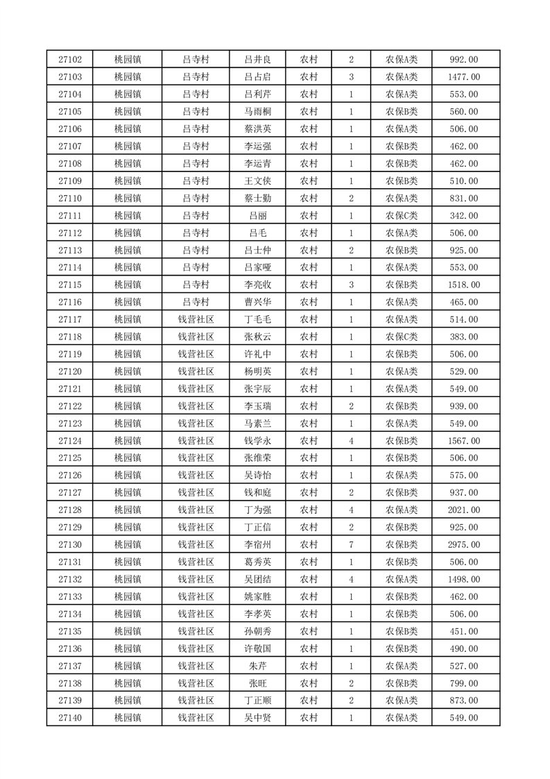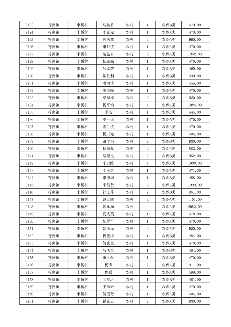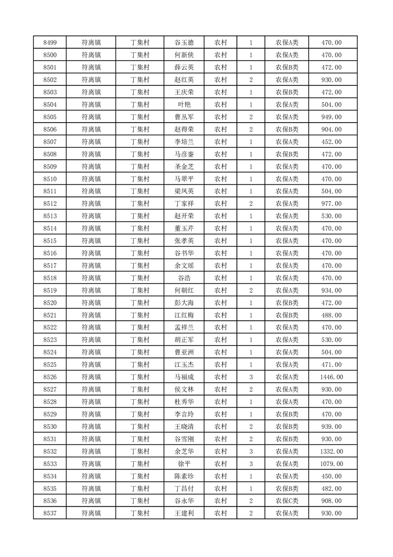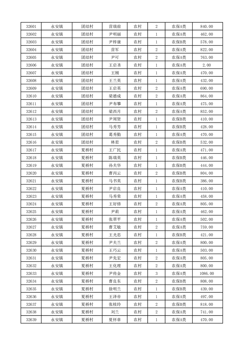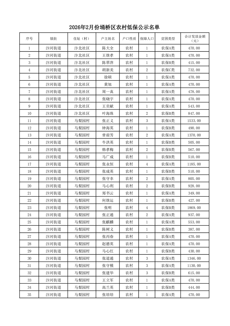 埇桥区2026年2月份农村低保花名册