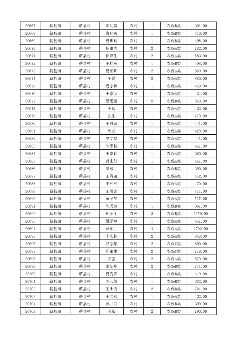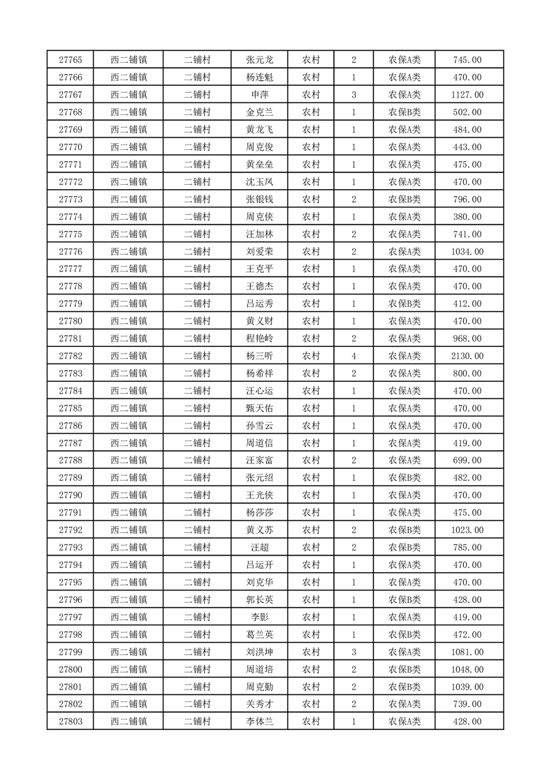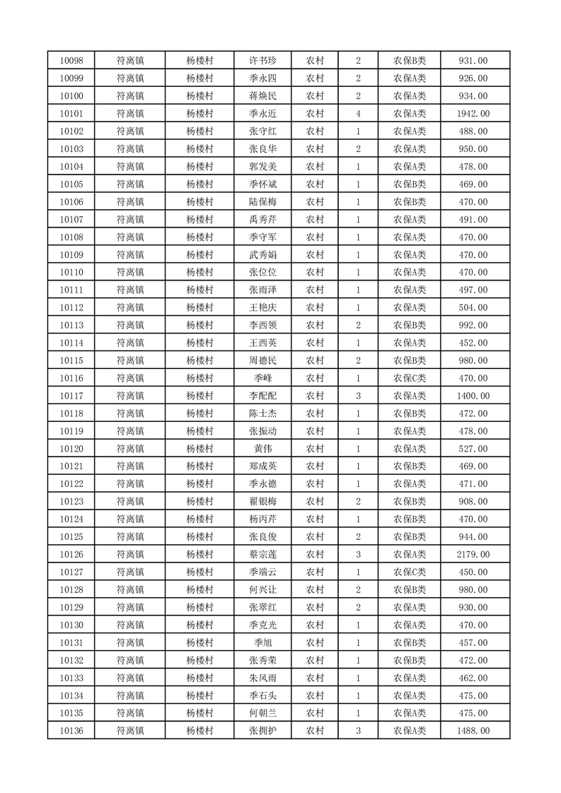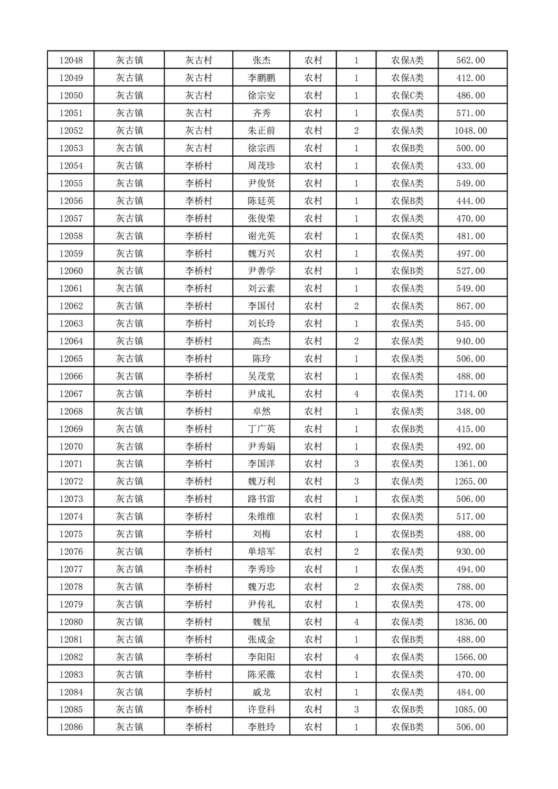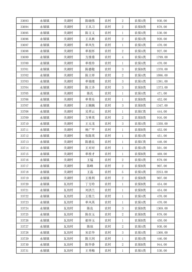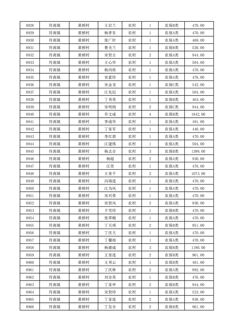 埇桥区2026年2月份农村低保花名册
