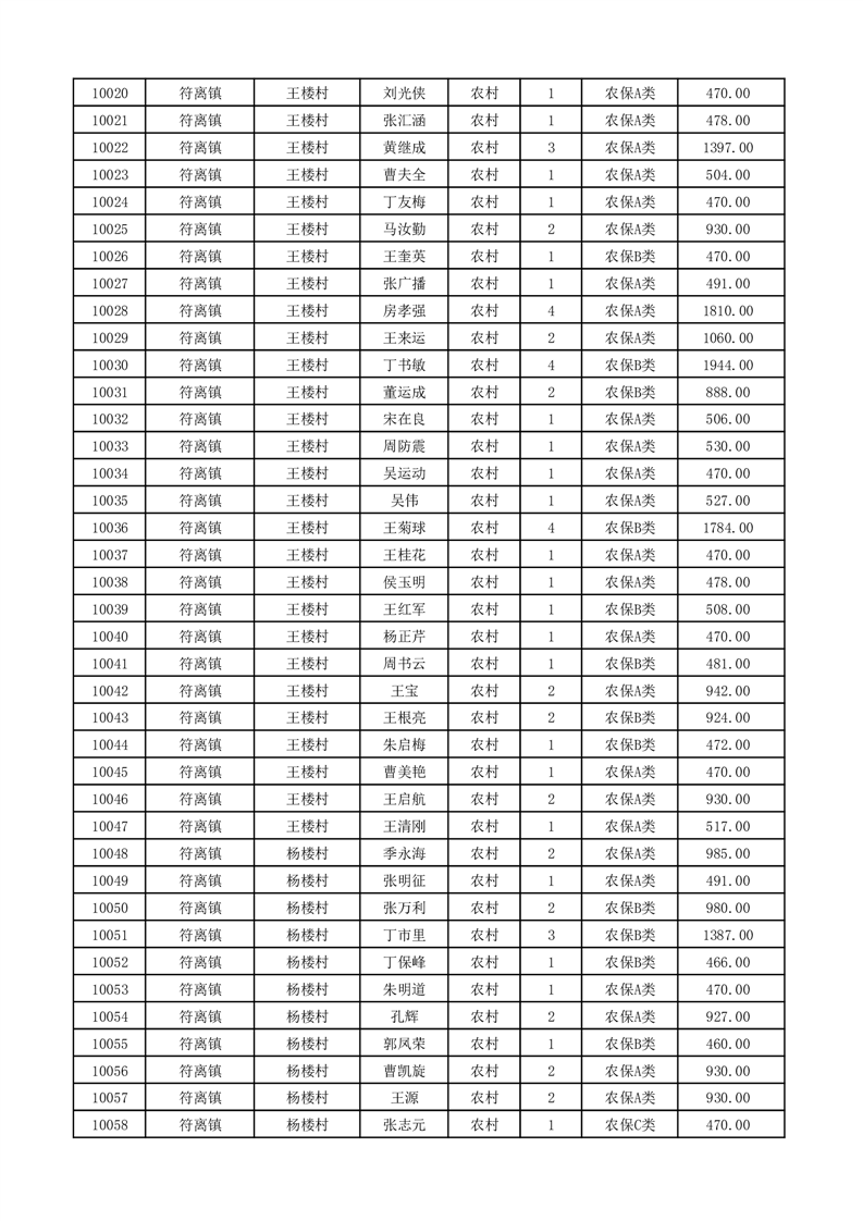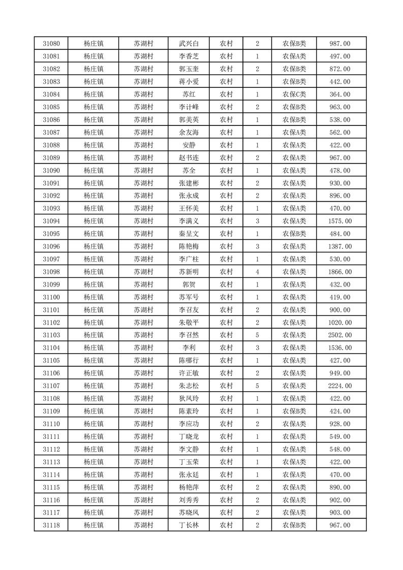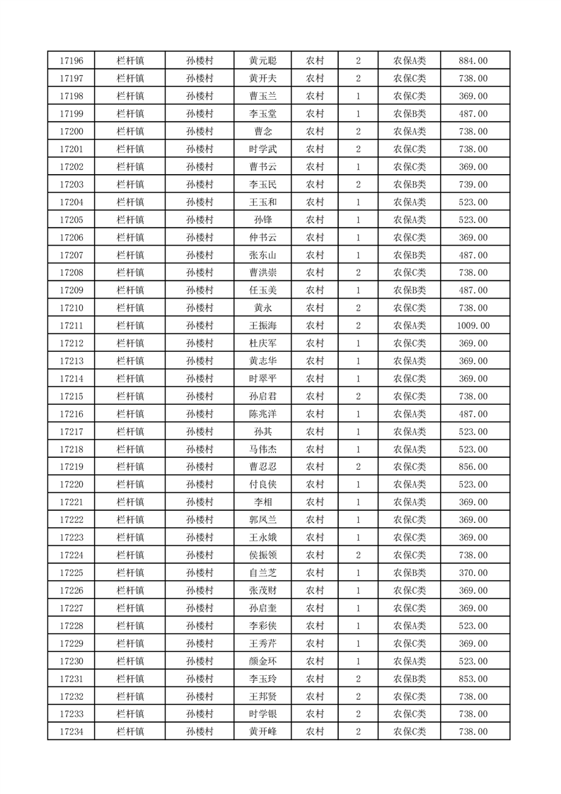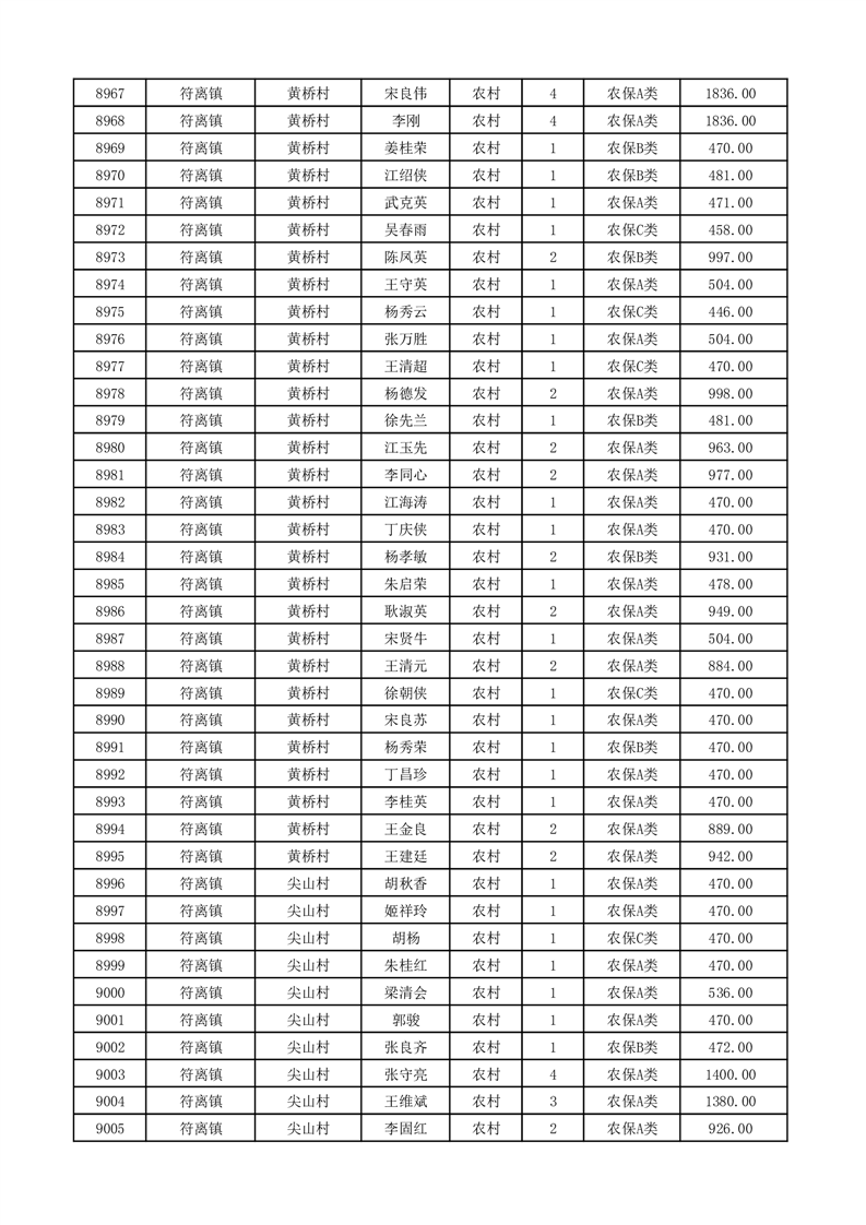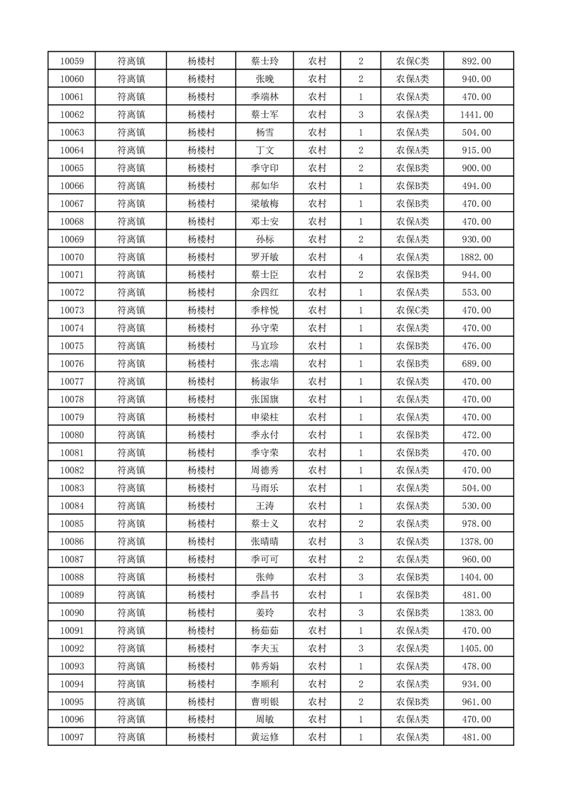 埇桥区2026年2月份农村低保花名册