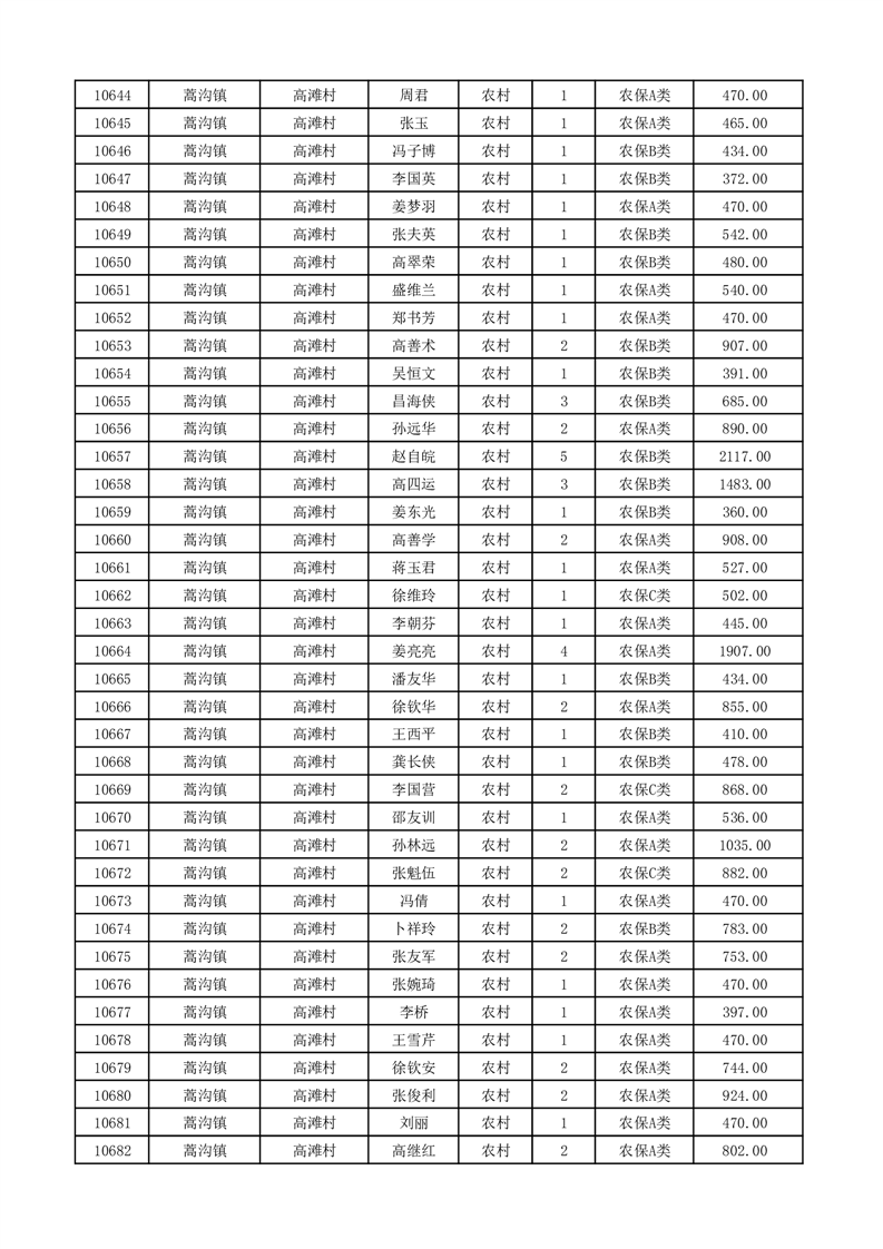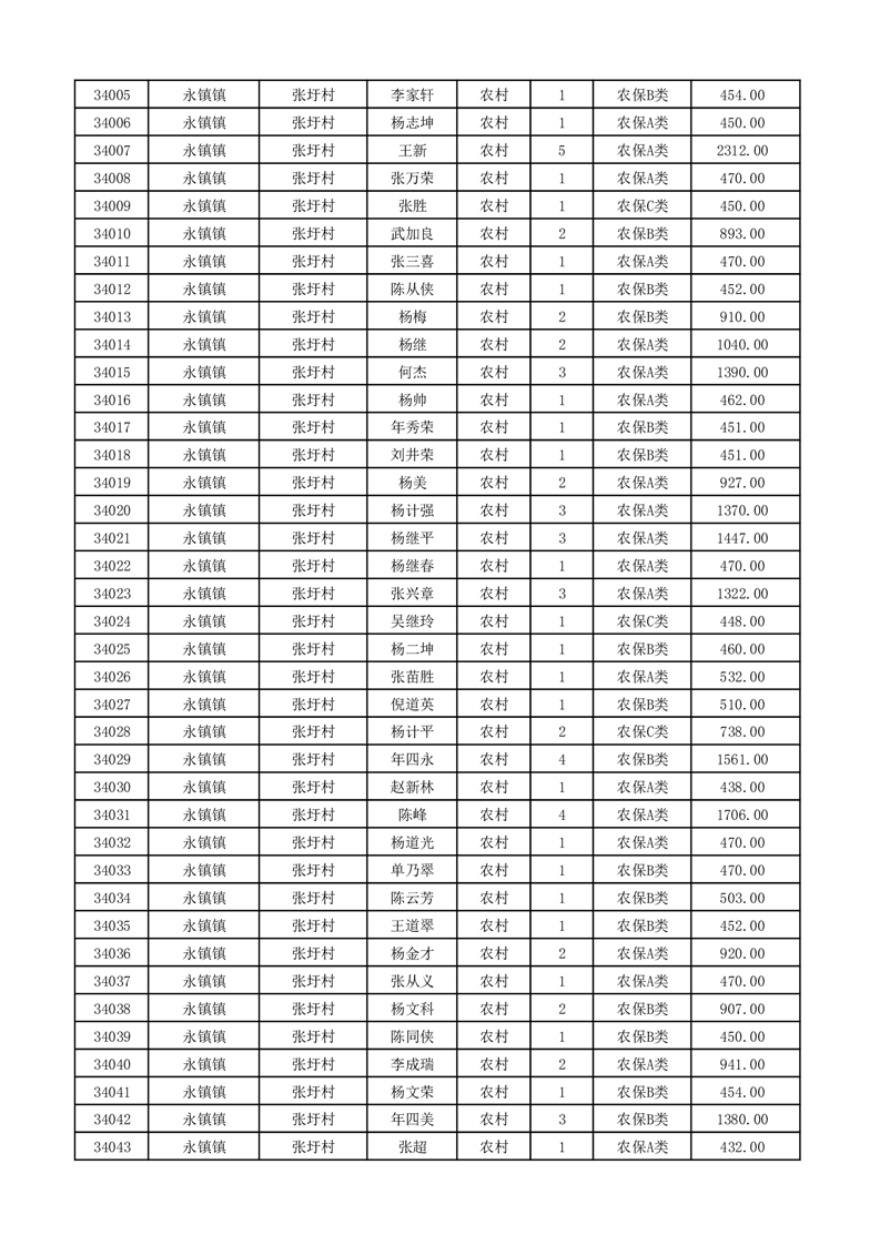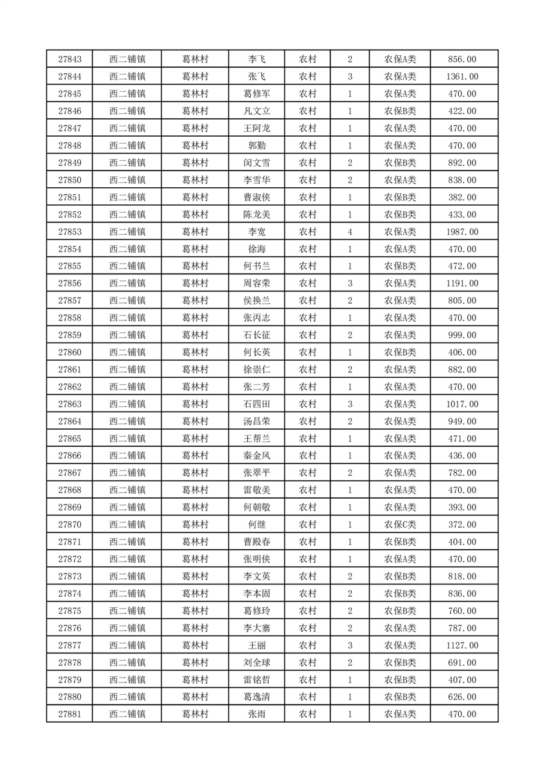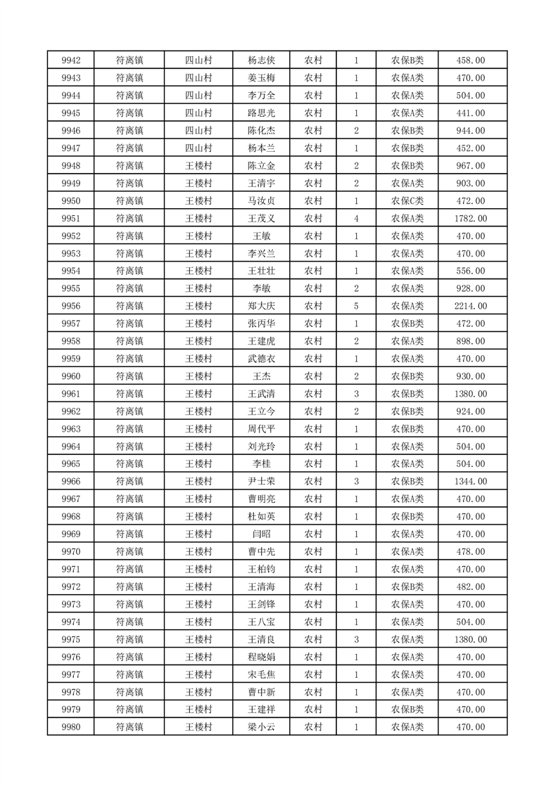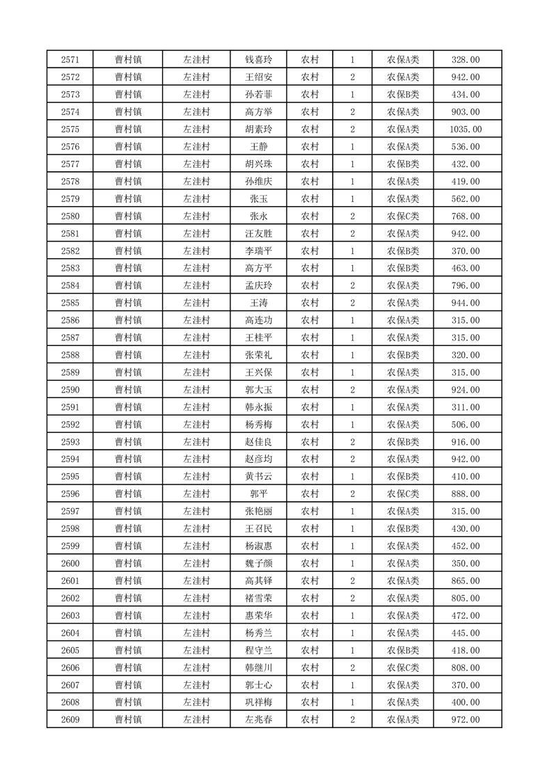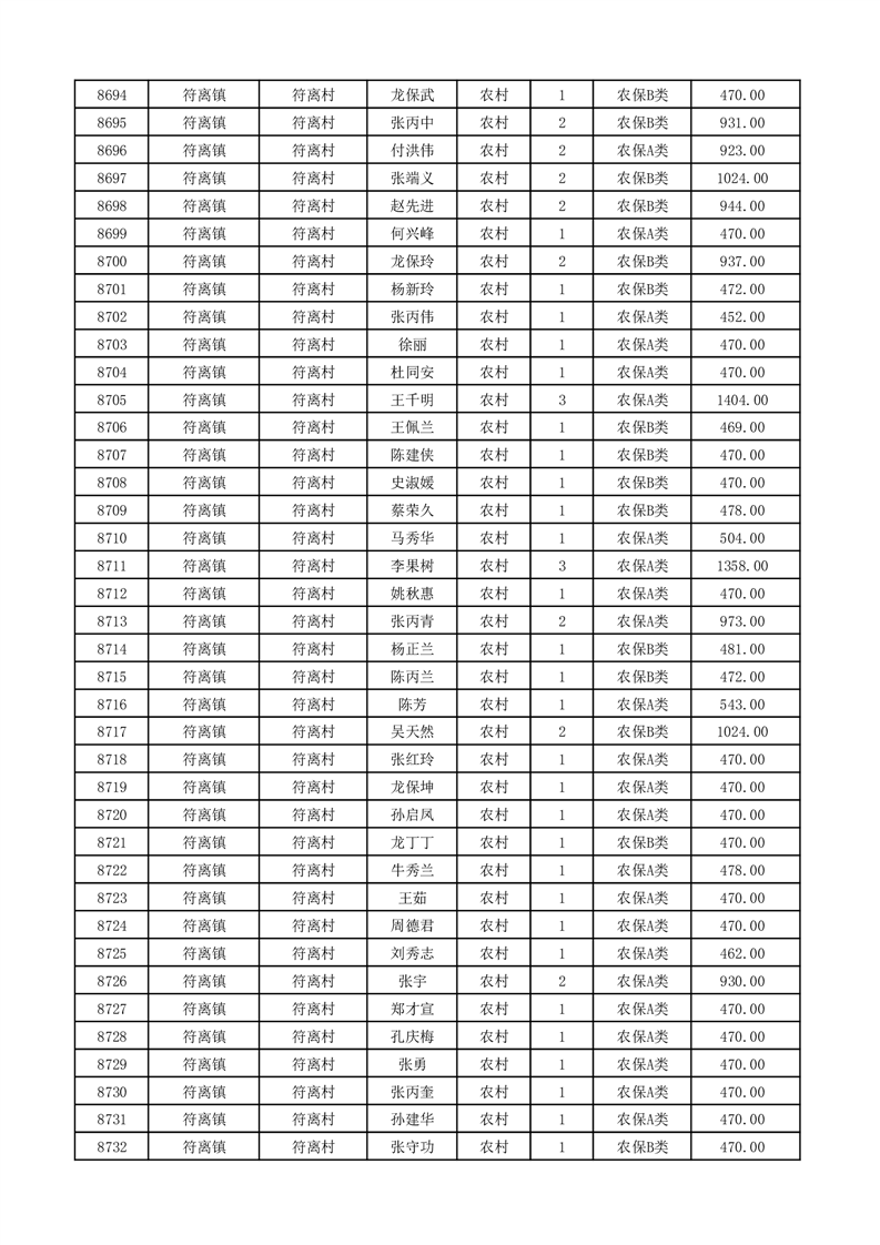 埇桥区2026年2月份农村低保花名册