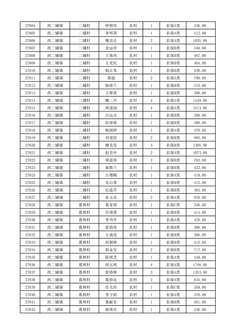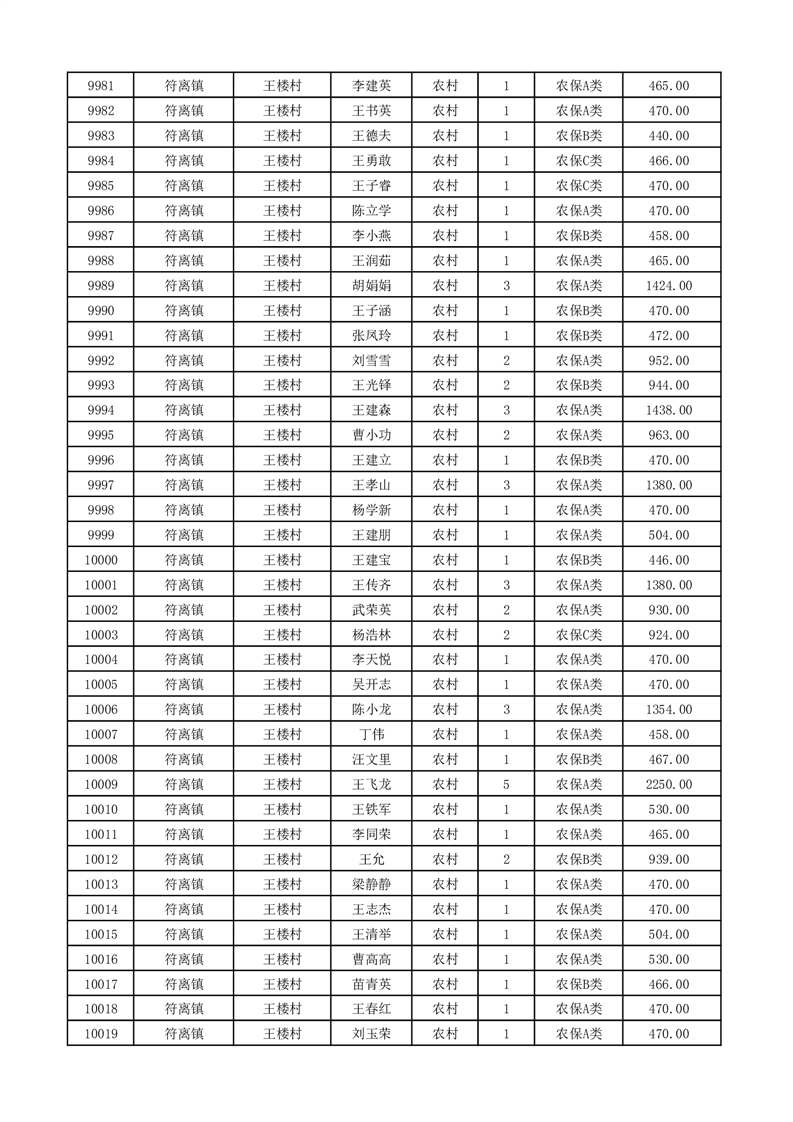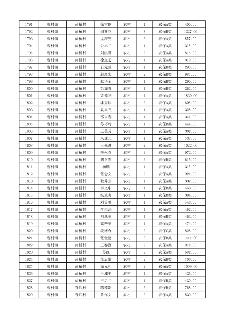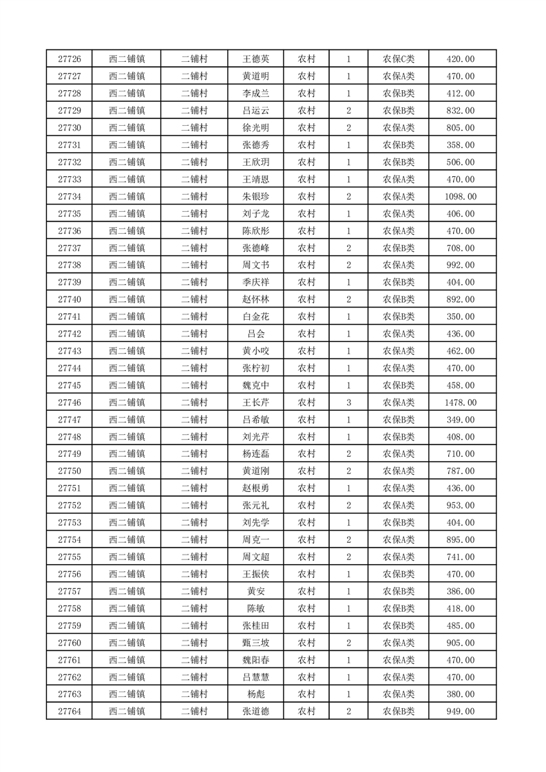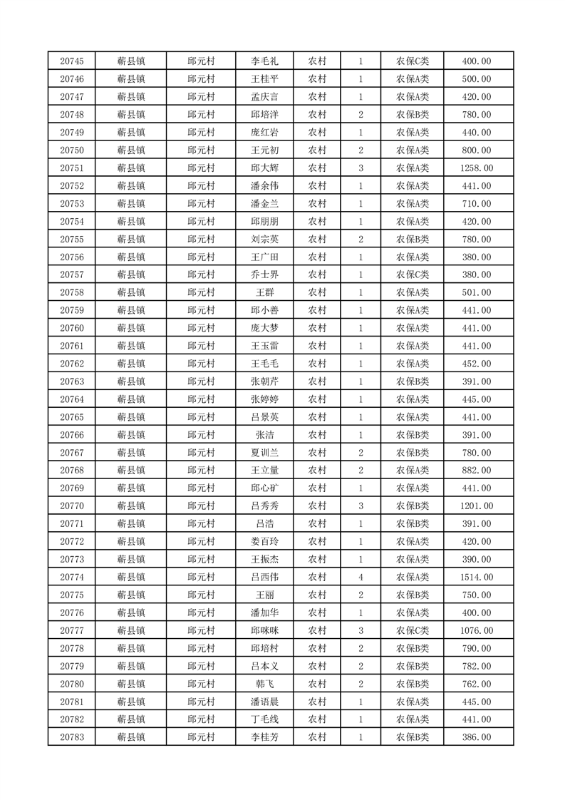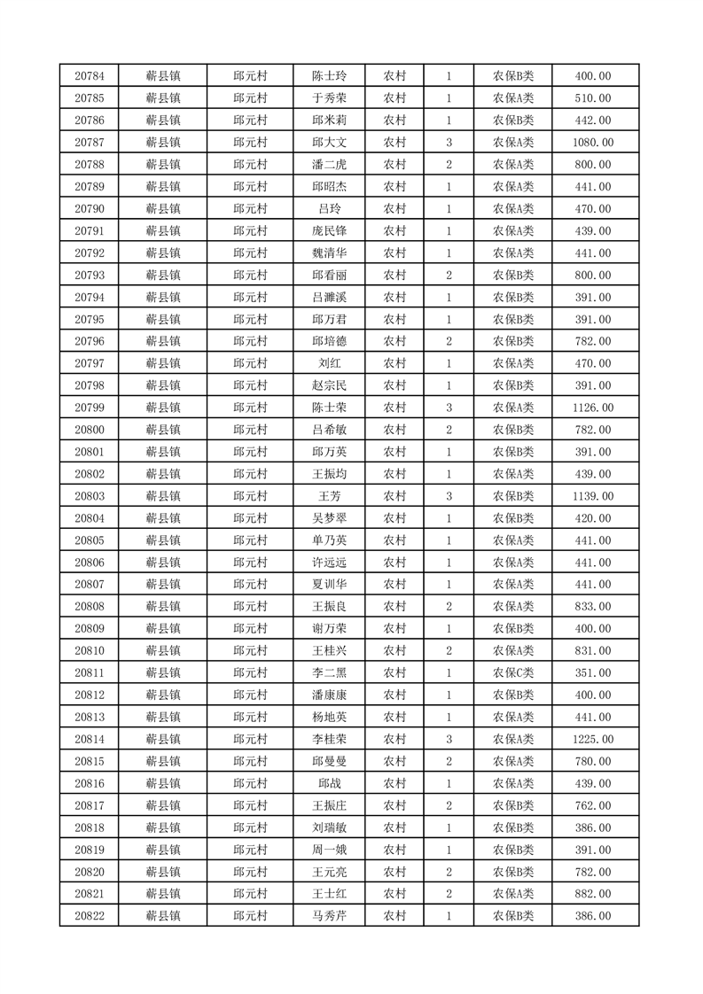 埇桥区2026年2月份农村低保花名册