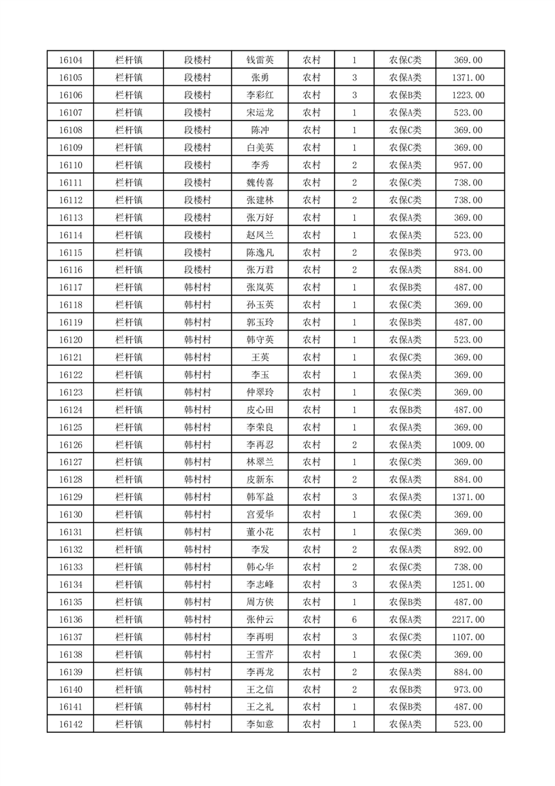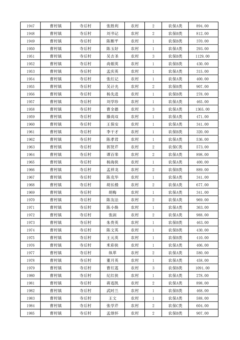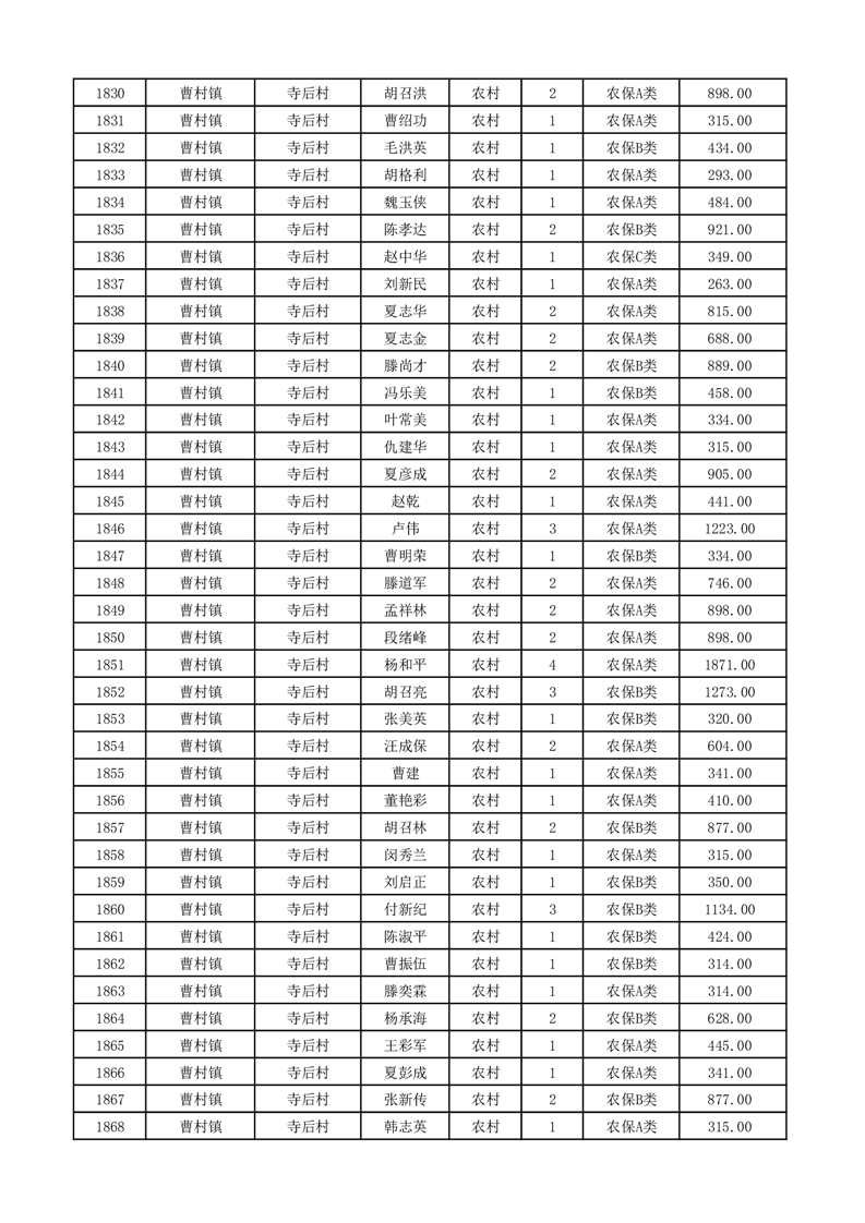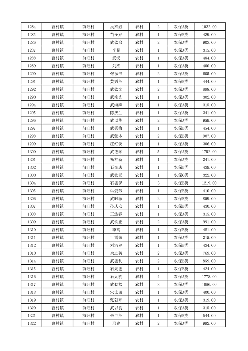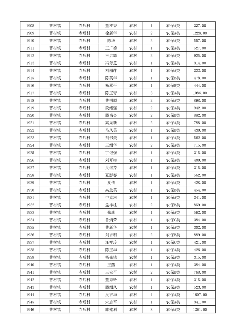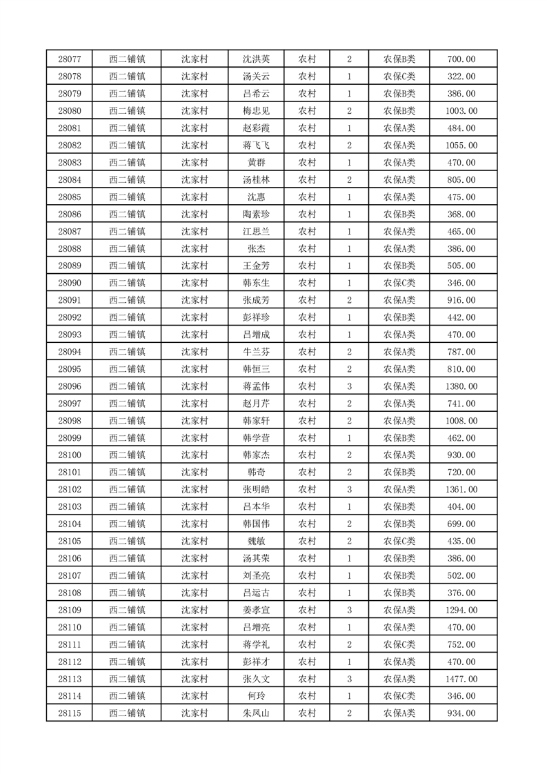 埇桥区2026年2月份农村低保花名册