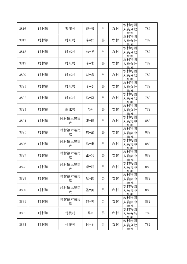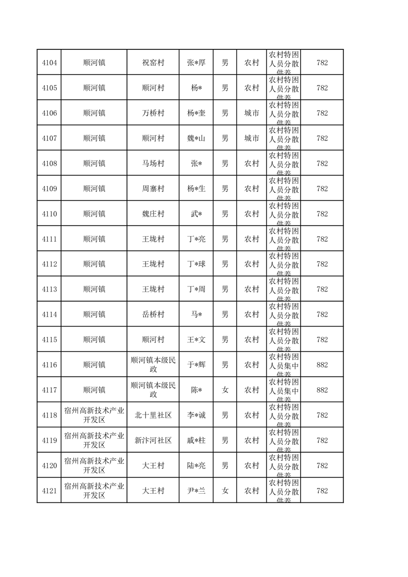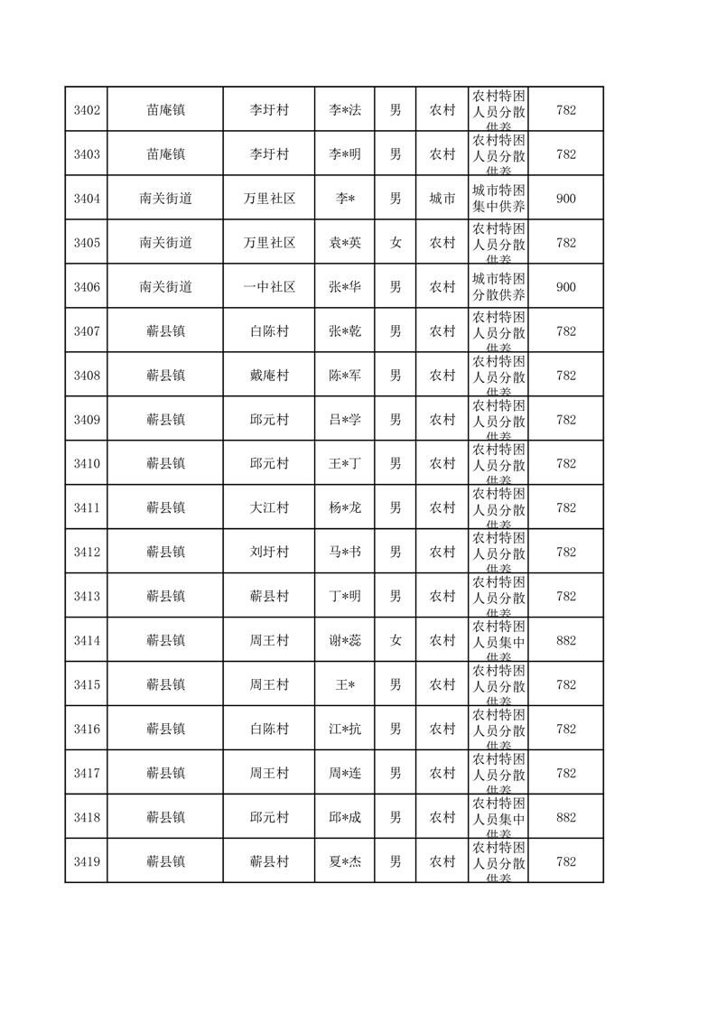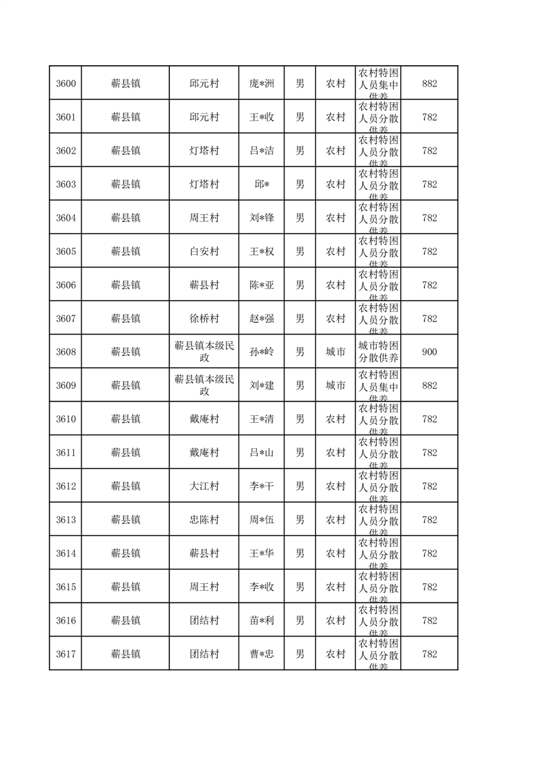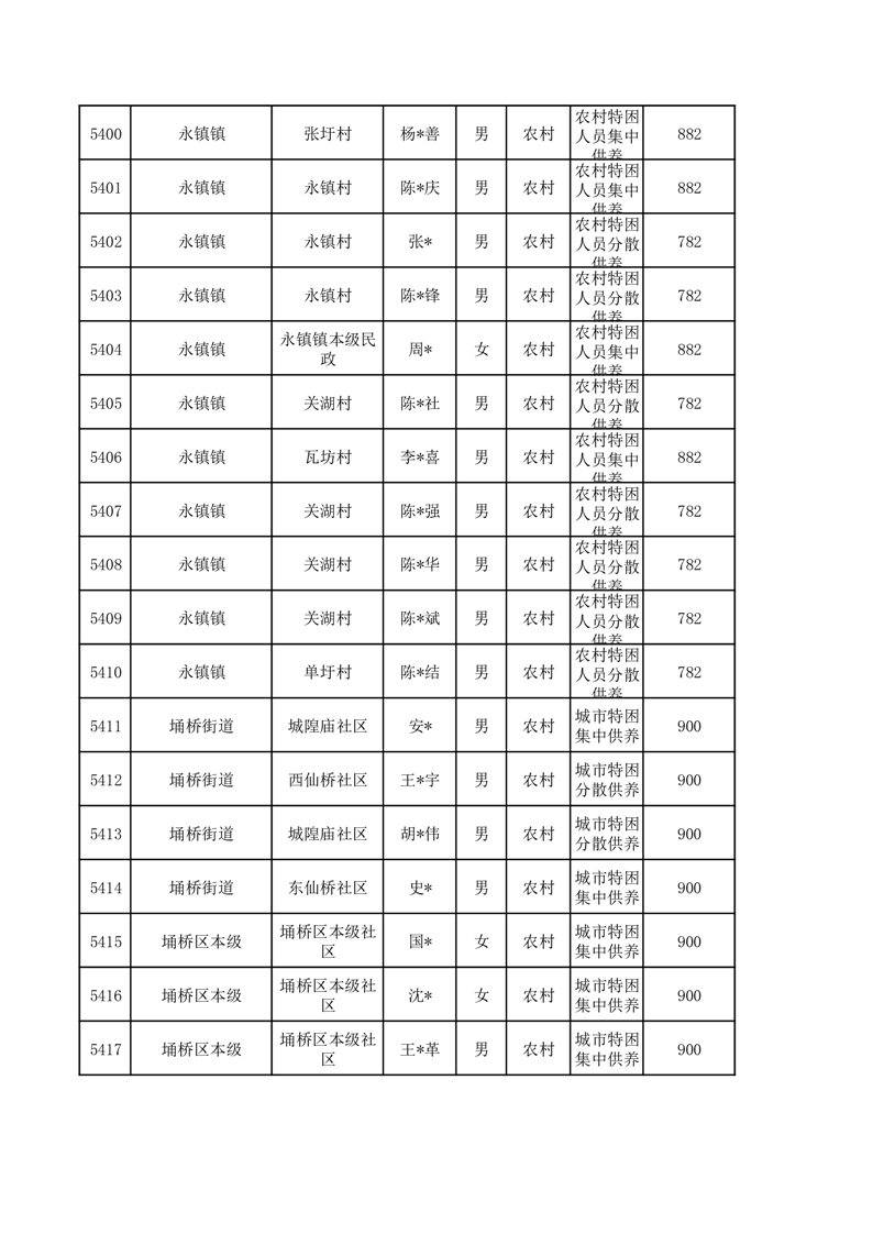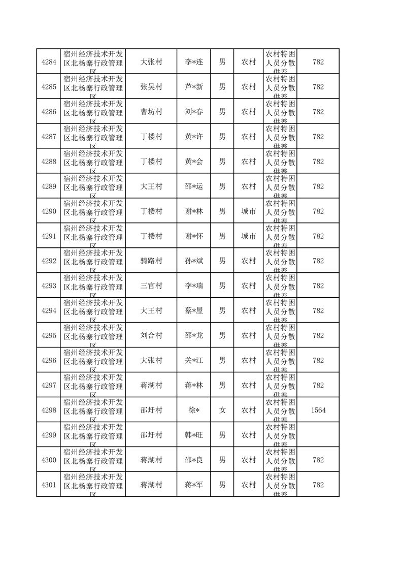 埇桥区2026年3月特困人员名单