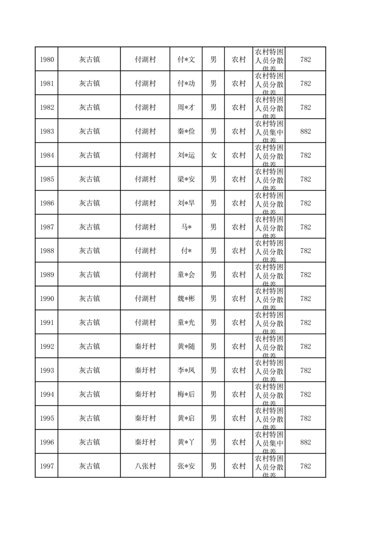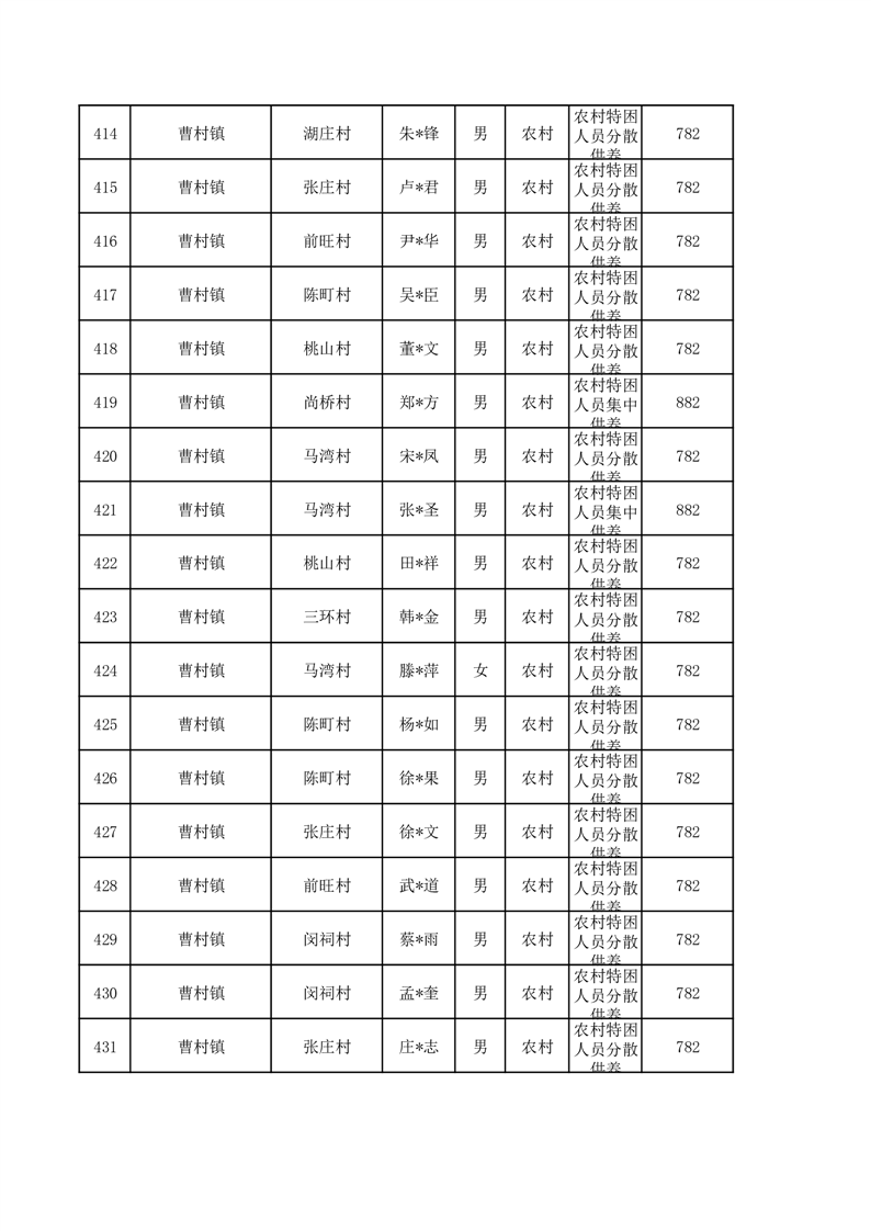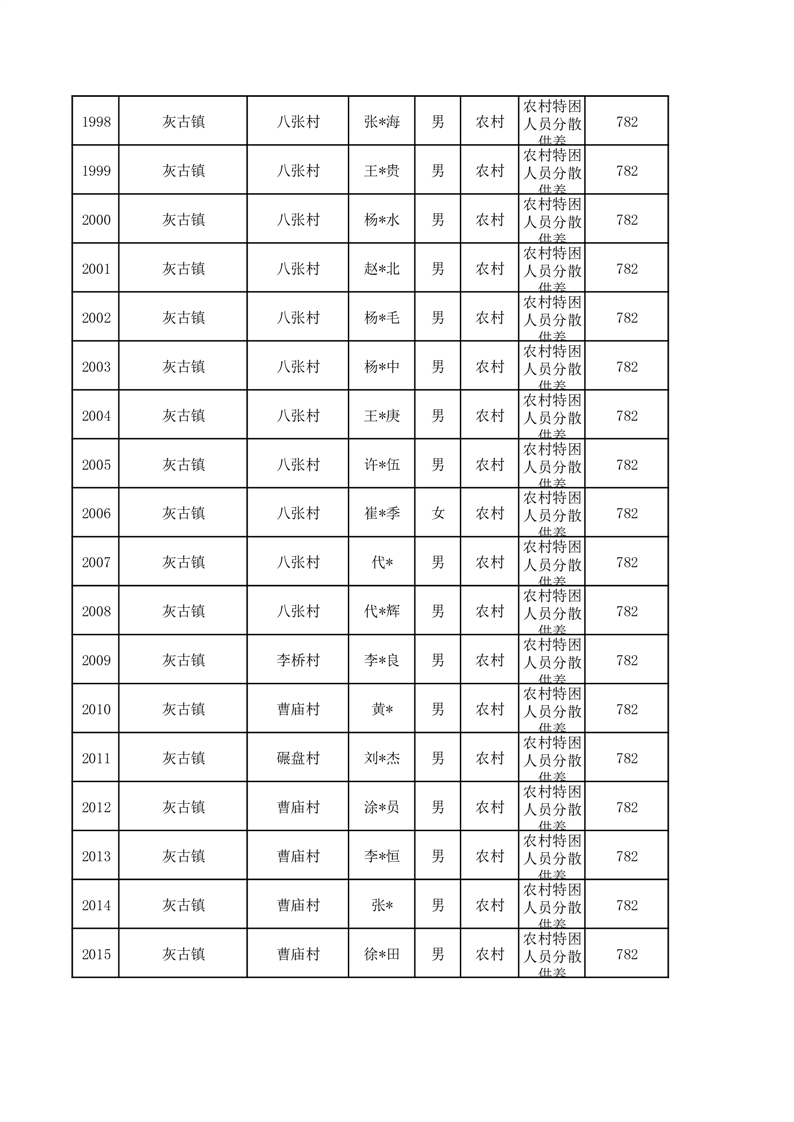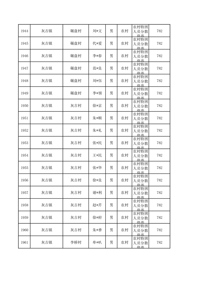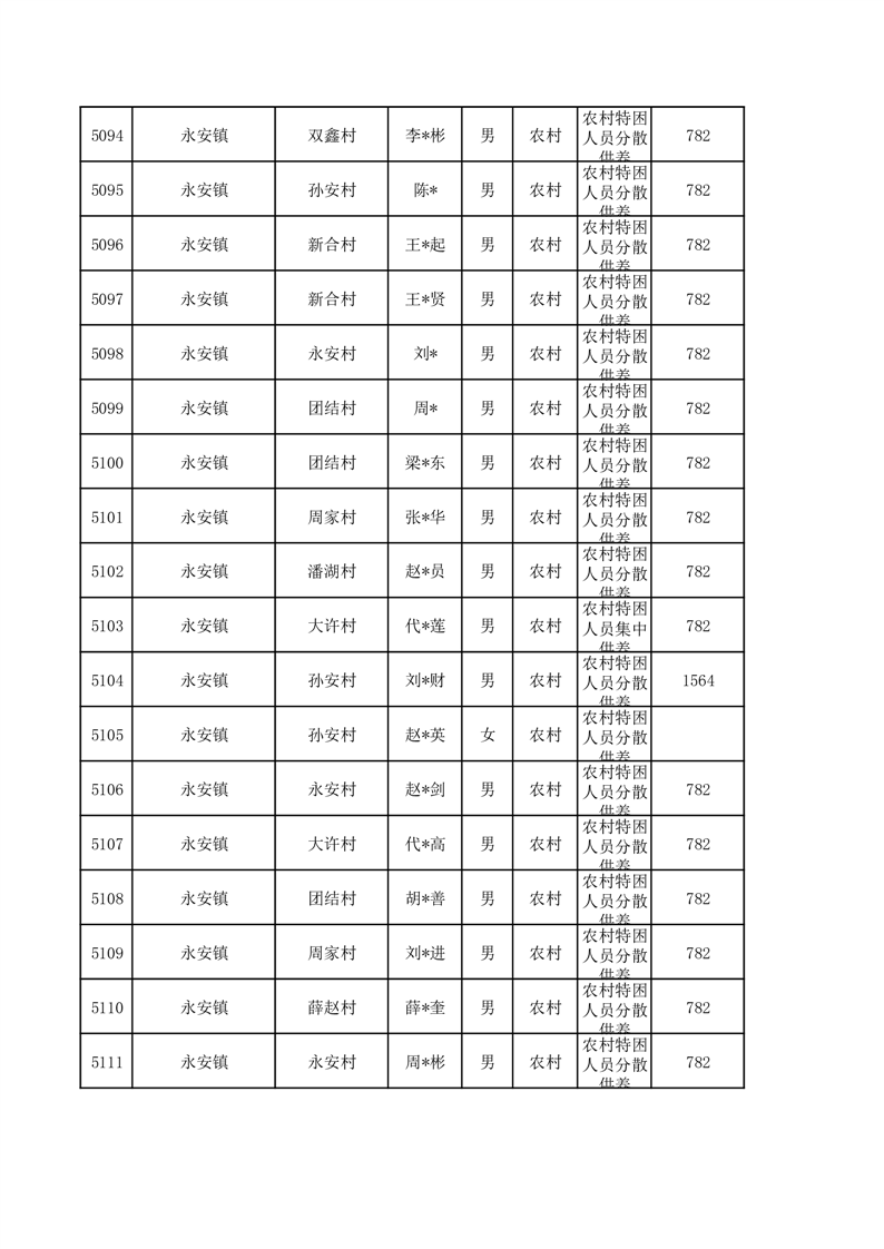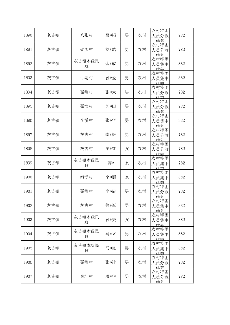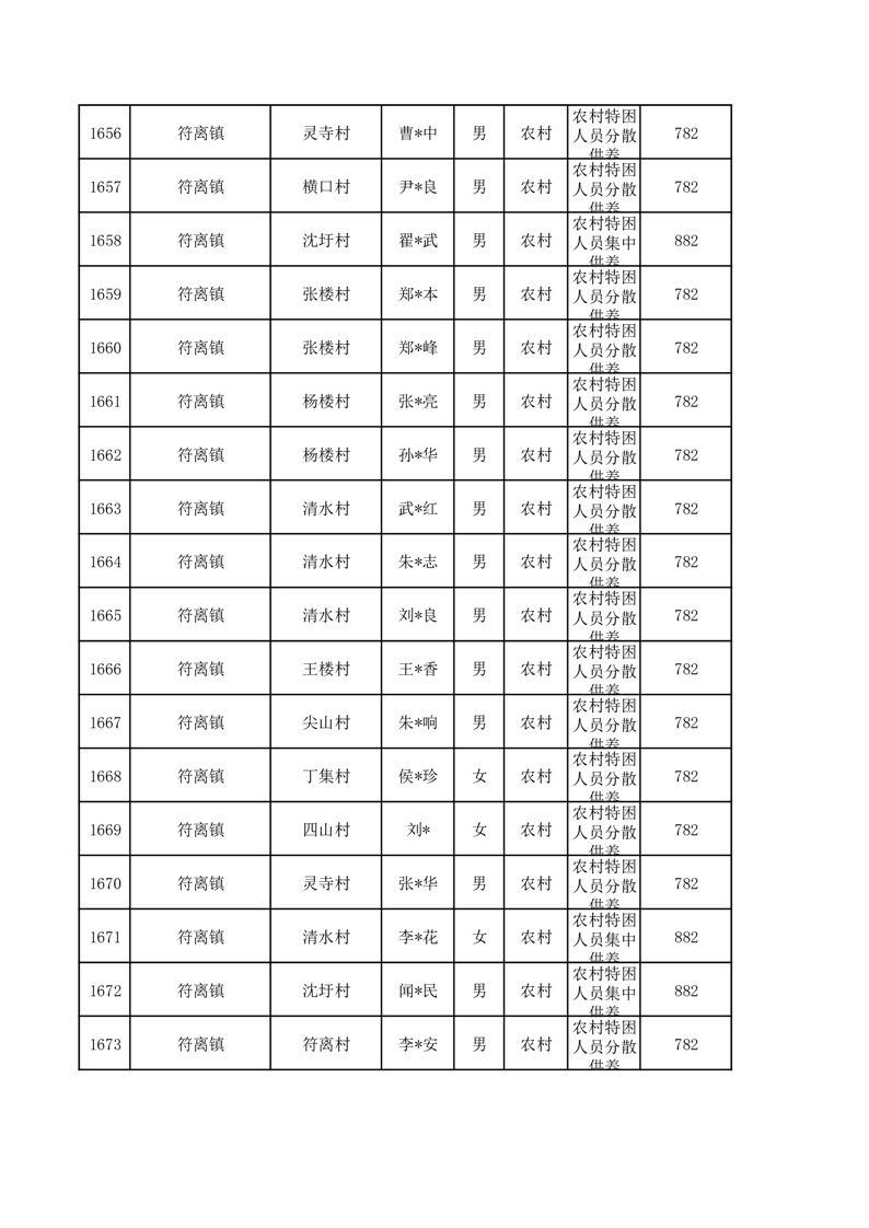 埇桥区2026年3月特困人员名单