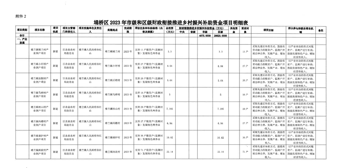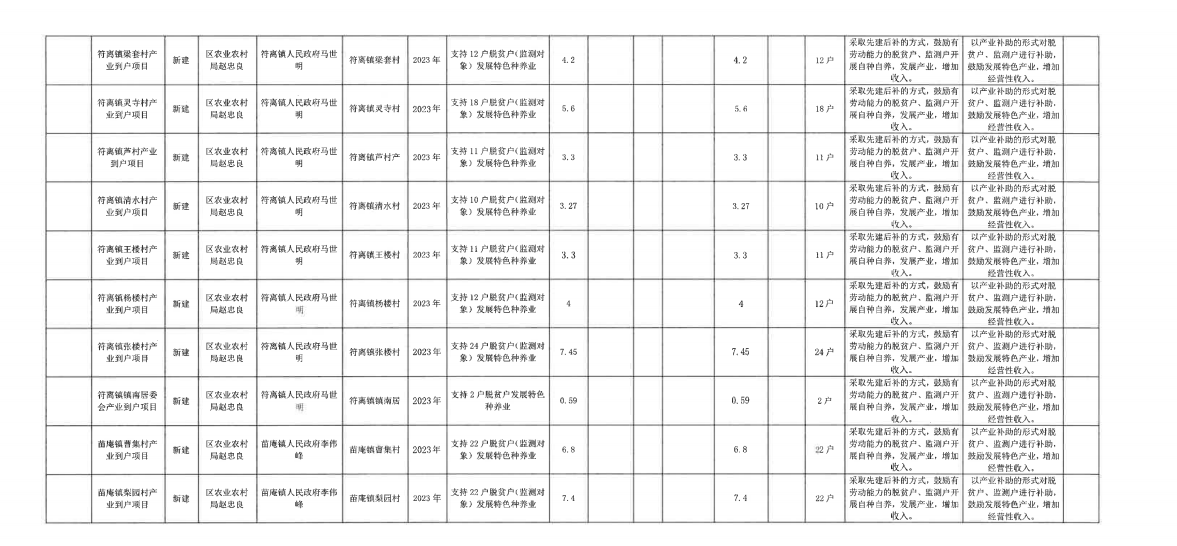【符离镇】埇桥区2023年提前下达省级财政衔接推进乡村振兴补助资金项目明细表