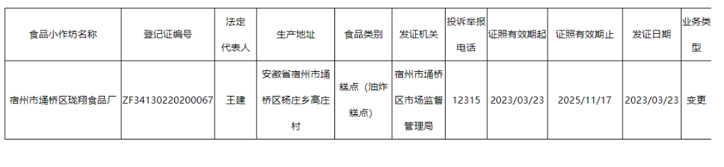 名  称: 2023年3月埇桥区市场监督管理局食品小作坊备案基本信息公示表