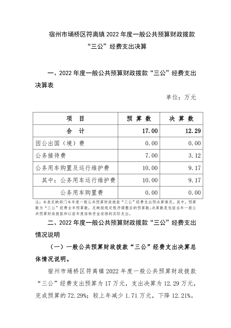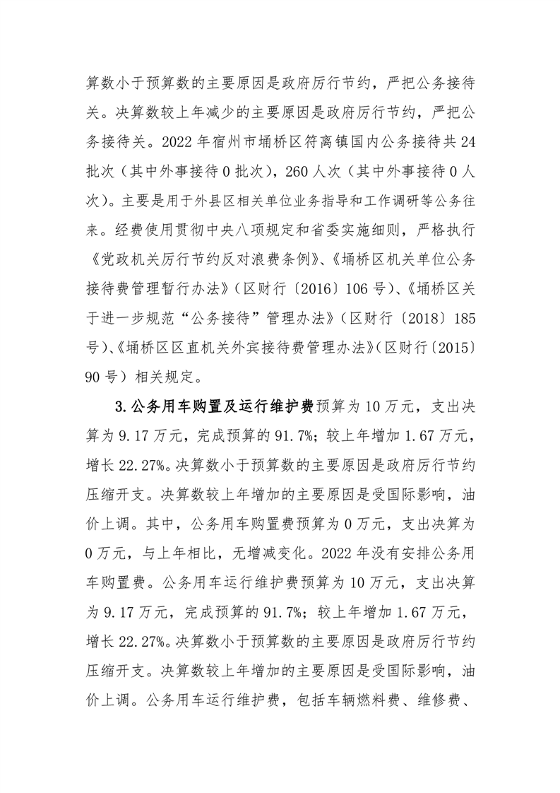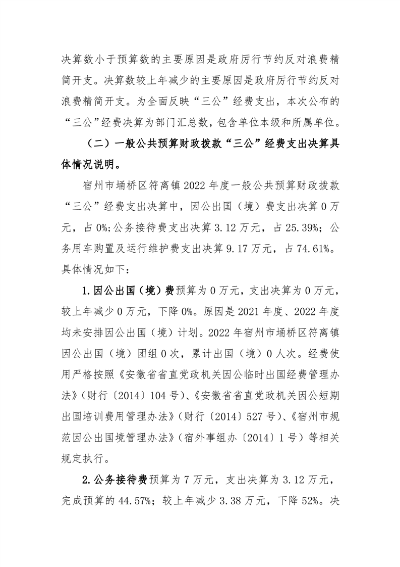 宿州市埇桥区符离镇2022年度一般公共预算财政拨款“三公”经费支出决算