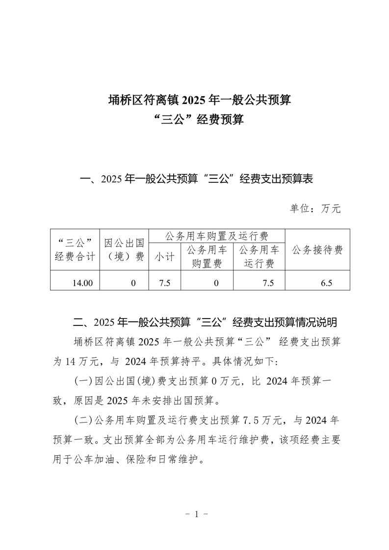 符离镇2025年“三公”经费公开
