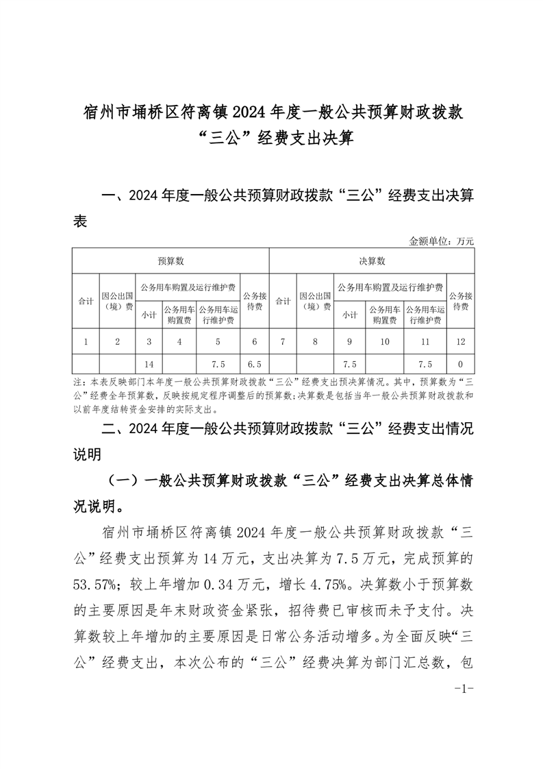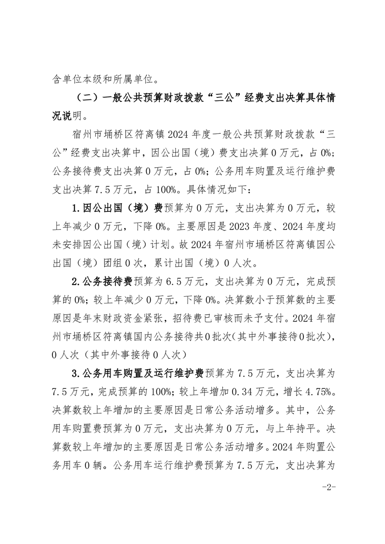 2024年度符离镇一般公共预算财政拨款“三公”经费支出决算公开