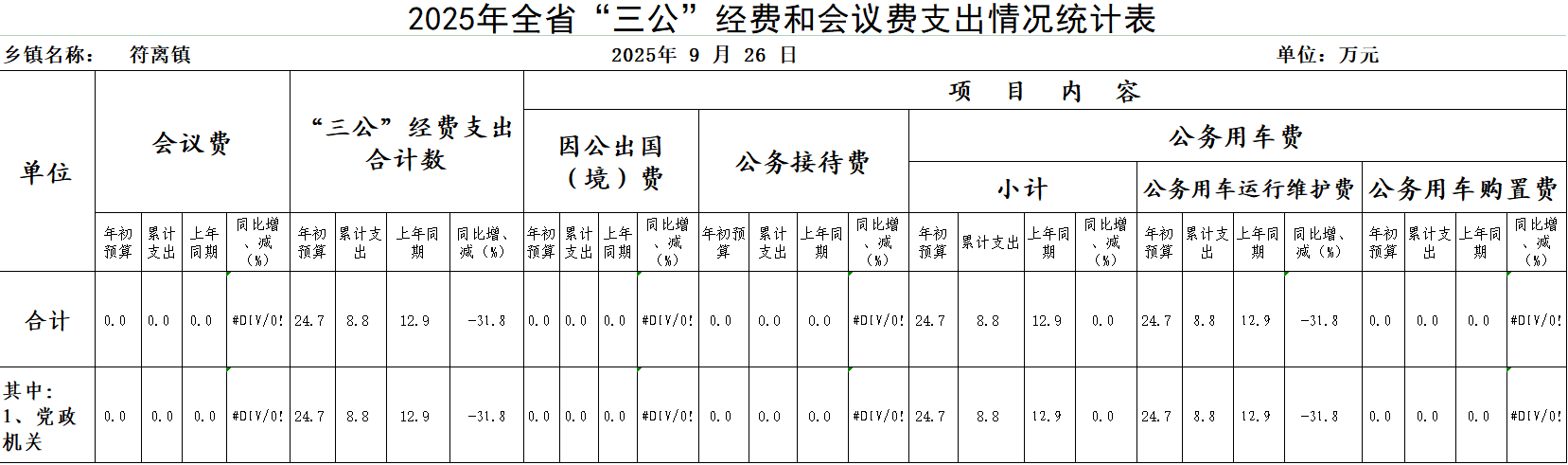 符离镇2025年9月份“三公”经费