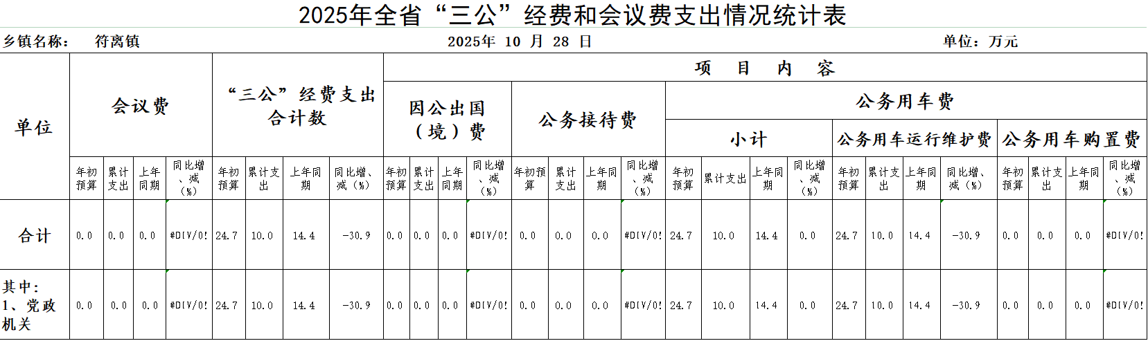 符离镇2025年10月份“三公”经费