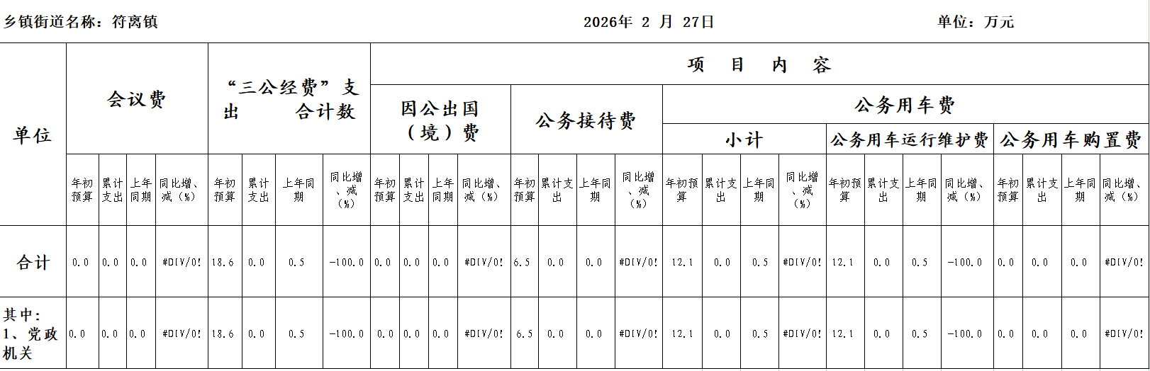符离镇2026年2月份“三公”经费