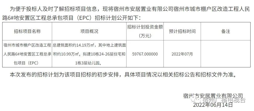(本次发布的招标计划为该项目招标的初步安排,具体项目情况以相关招标公告和招标文件为准。)