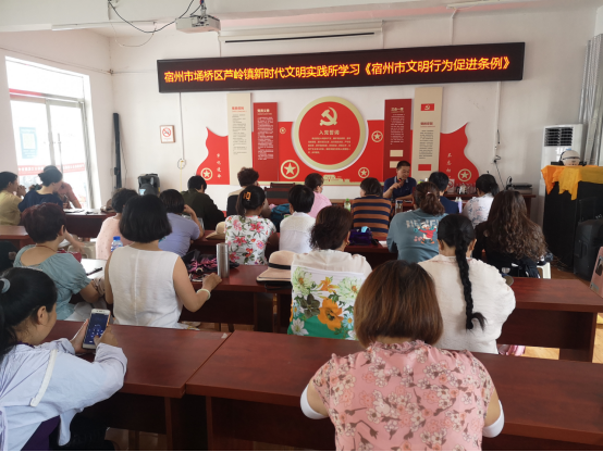 日,芦岭镇新时代文明实践所开展市民素质教育活动,活动学习了《宿州市文明行为促进条例》和《中华人民共和国民法典》。