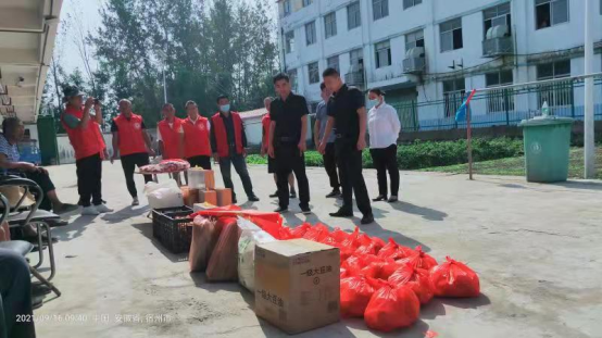 慰问现场,芦岭镇志愿者给老人们送去大豆油、水果、月饼、肉等节日必需品,祝愿老人们节日快乐、身体安康。