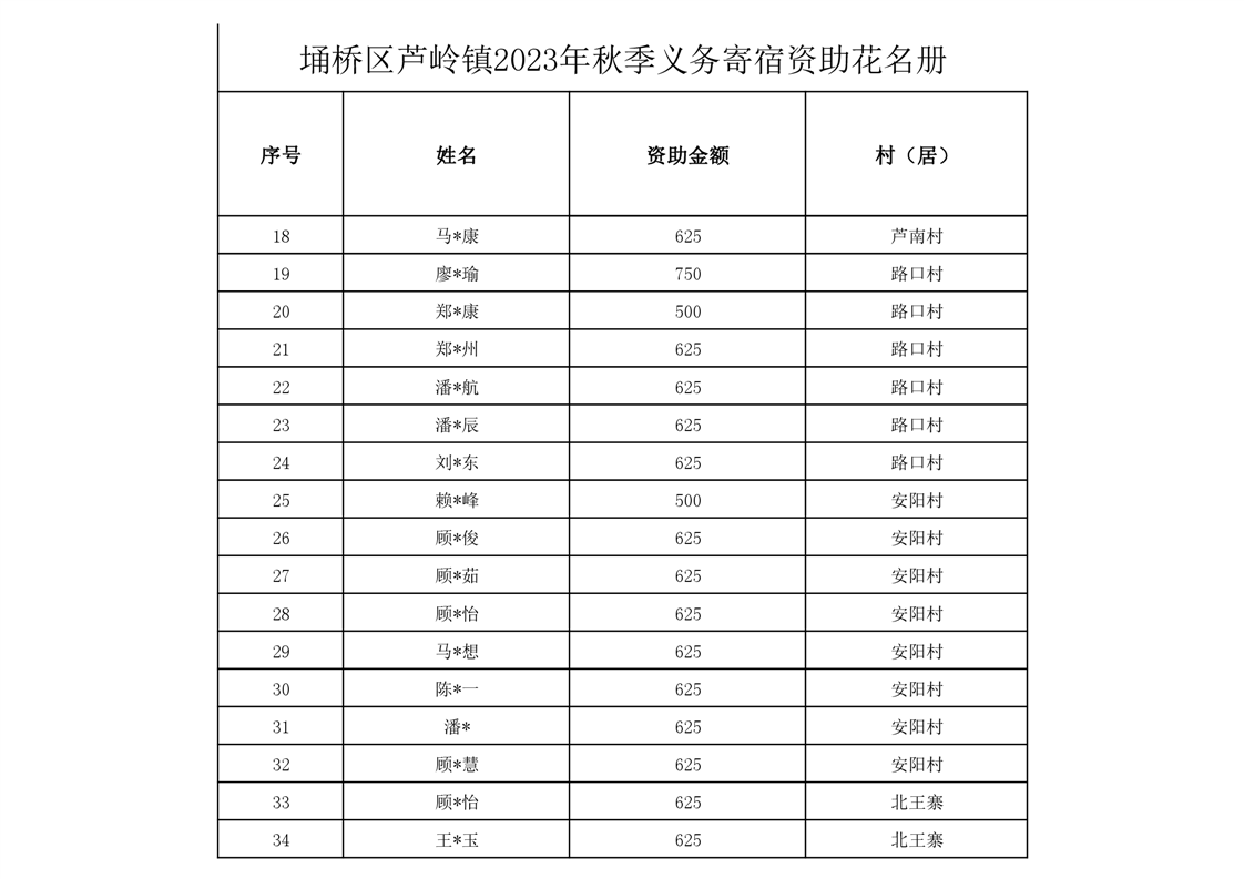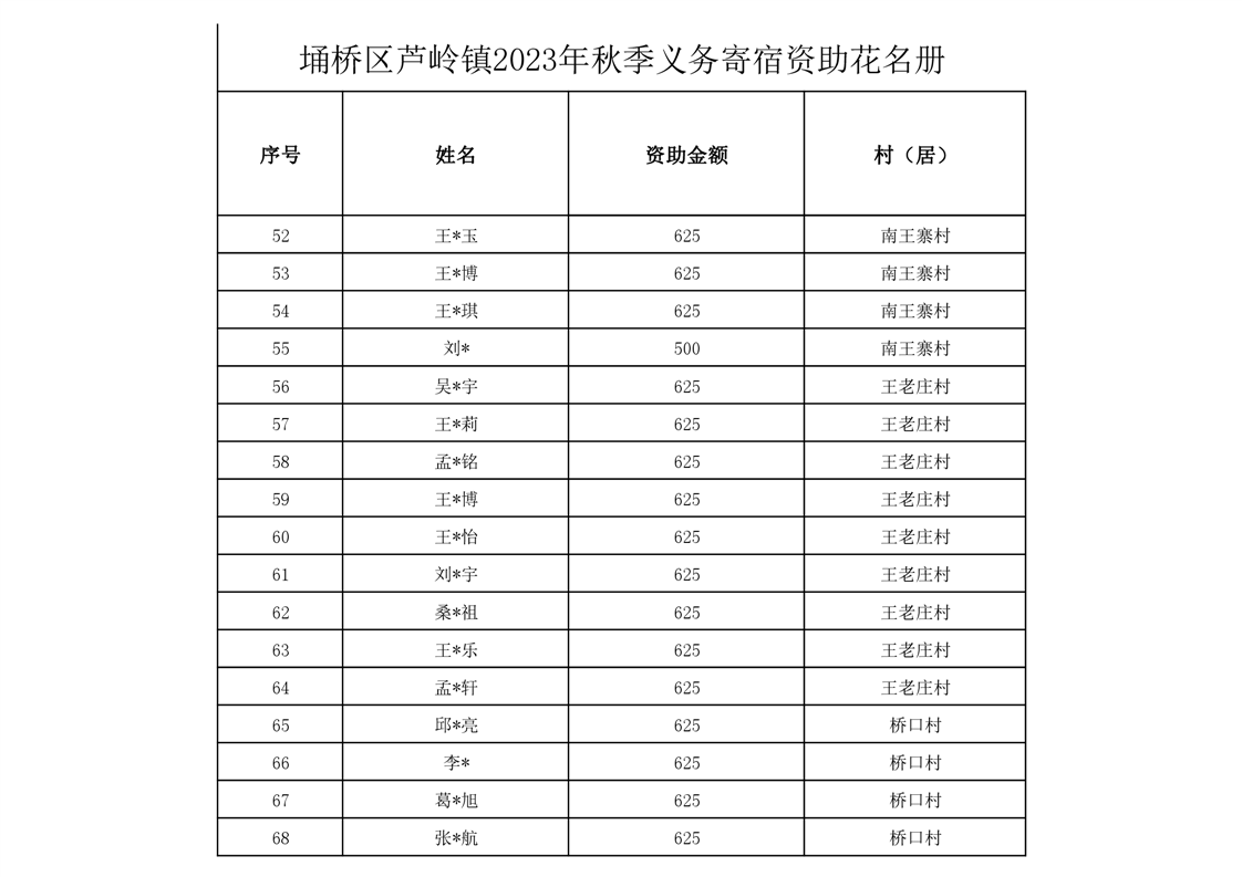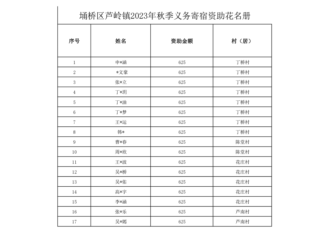 芦岭镇2023年秋季义务寄宿资助情况
