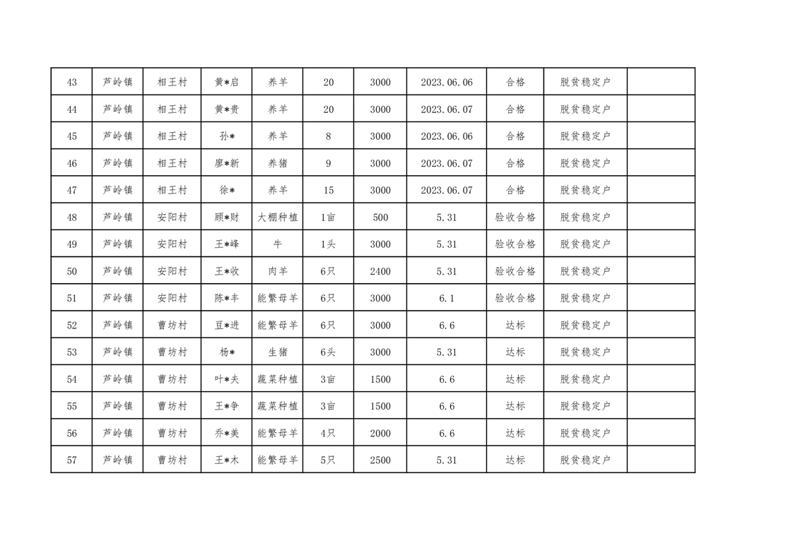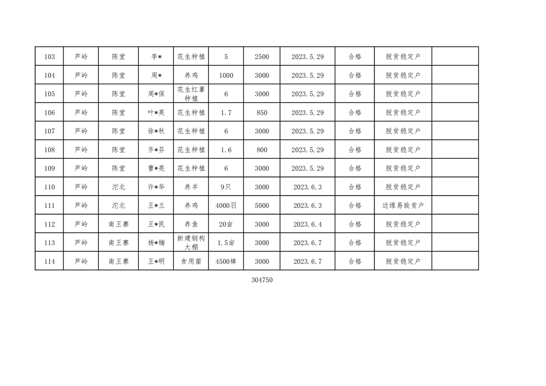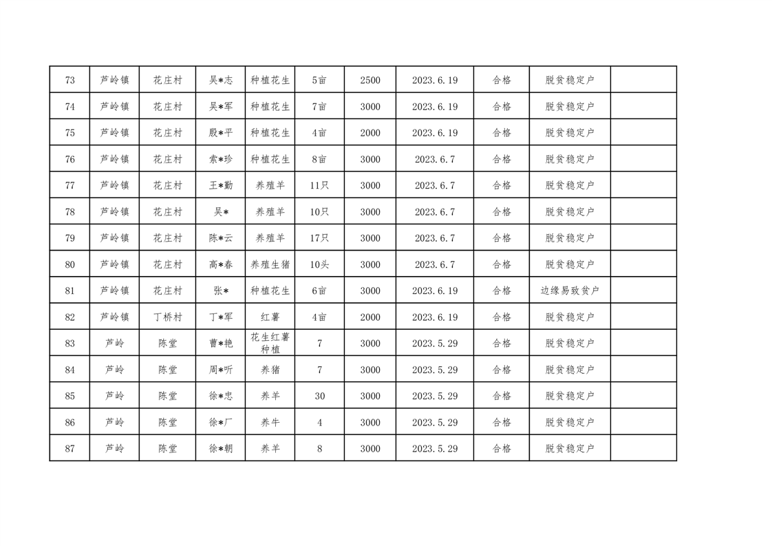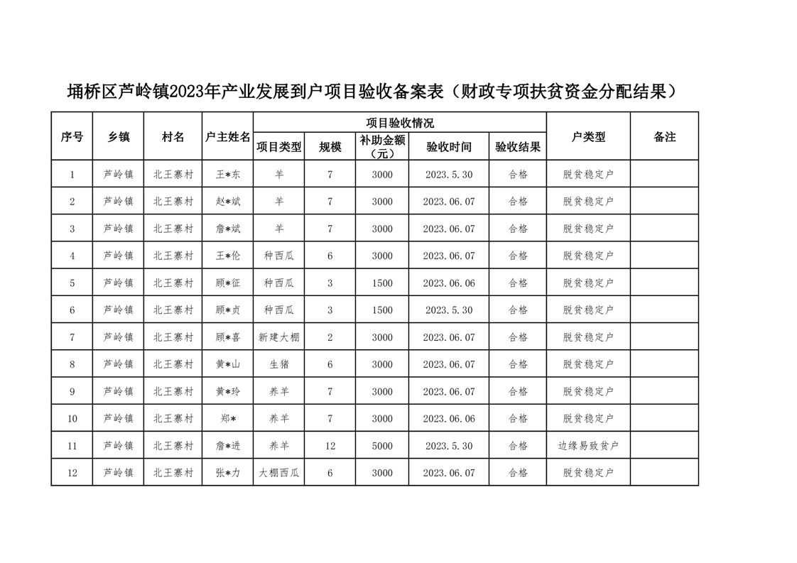 埇桥区芦岭镇2023年财政专项扶贫资金分配结果