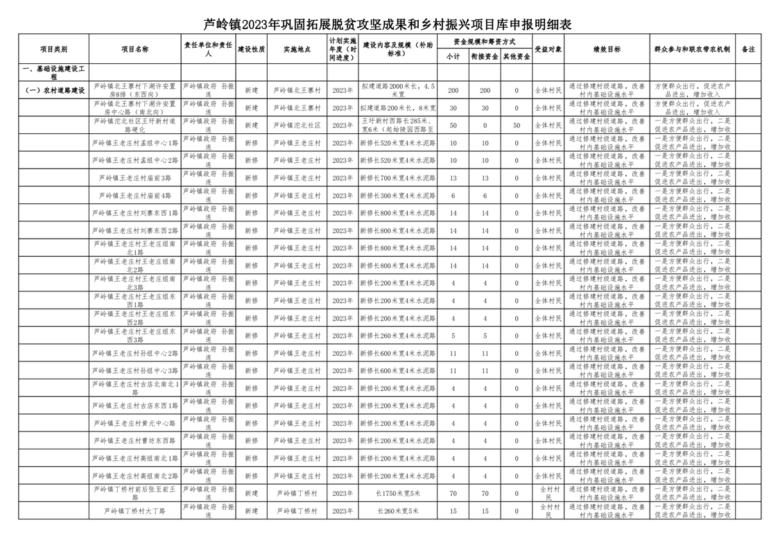 芦岭镇2023年巩固拓展脱贫攻坚成果和乡村振兴项目库建设情况