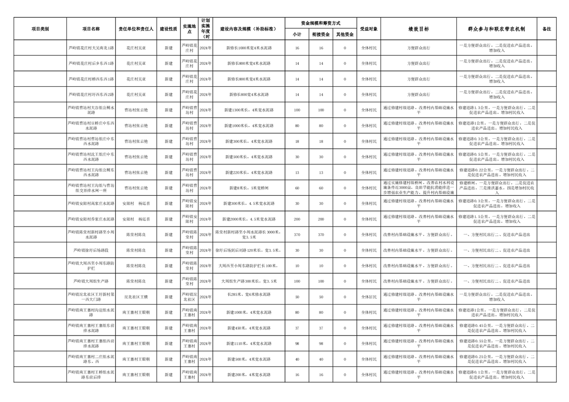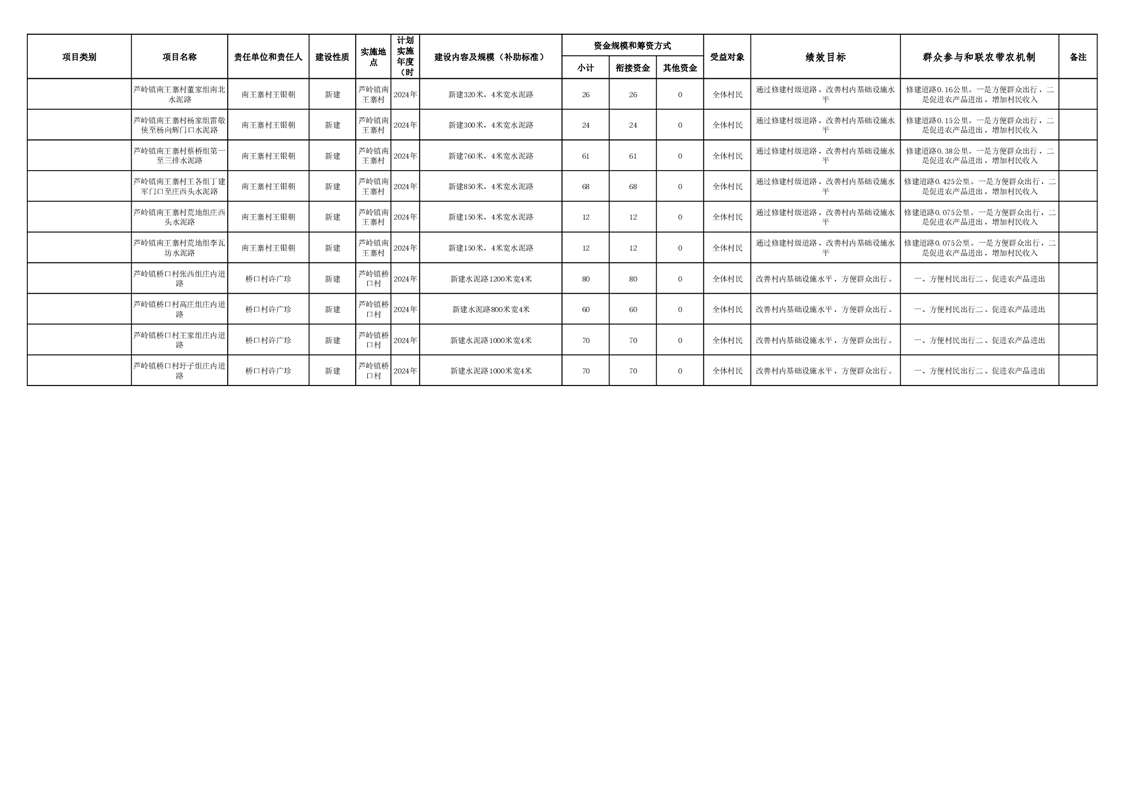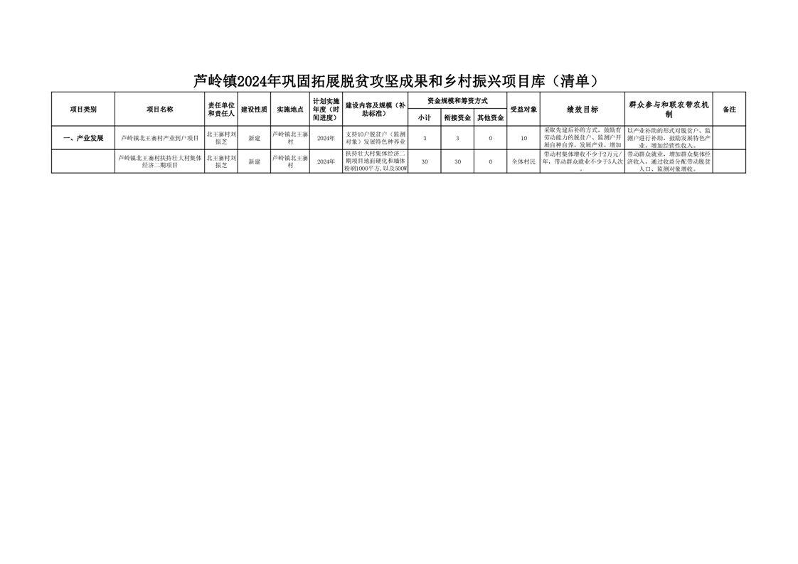 芦岭镇2024年巩固拓展脱贫攻坚成果和乡村振兴项目库(清单)