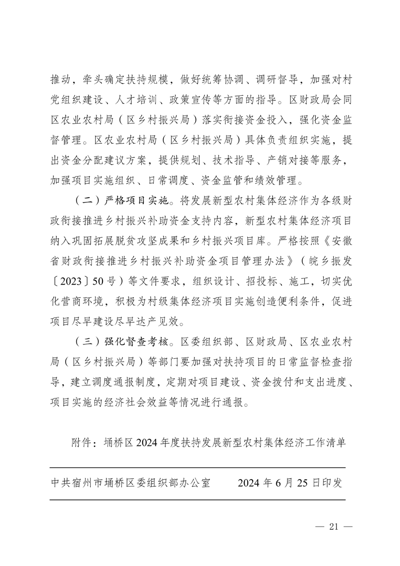 【上级文件】宿州市埇桥区2024年度扶持发展新型农村集体经济实施方案