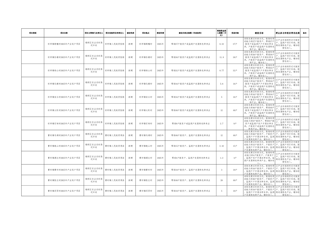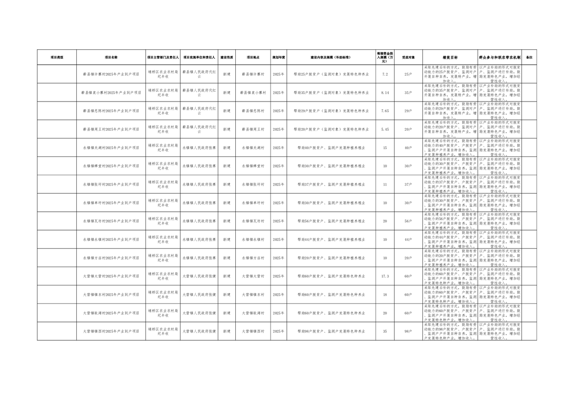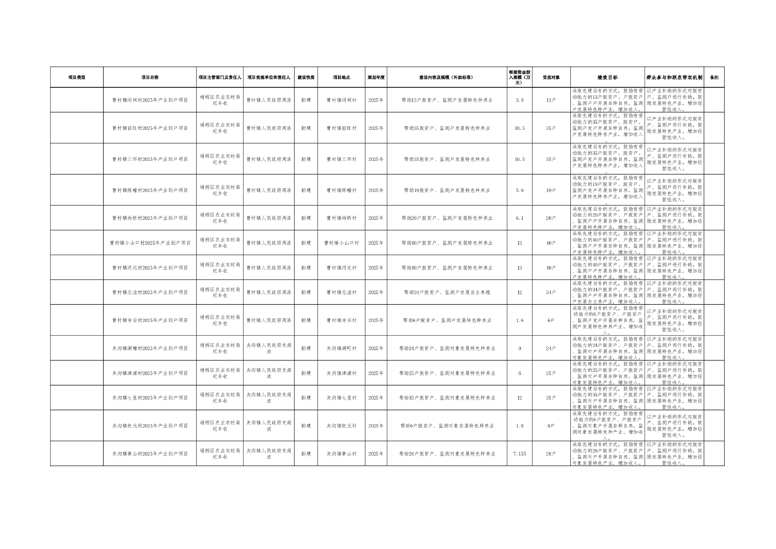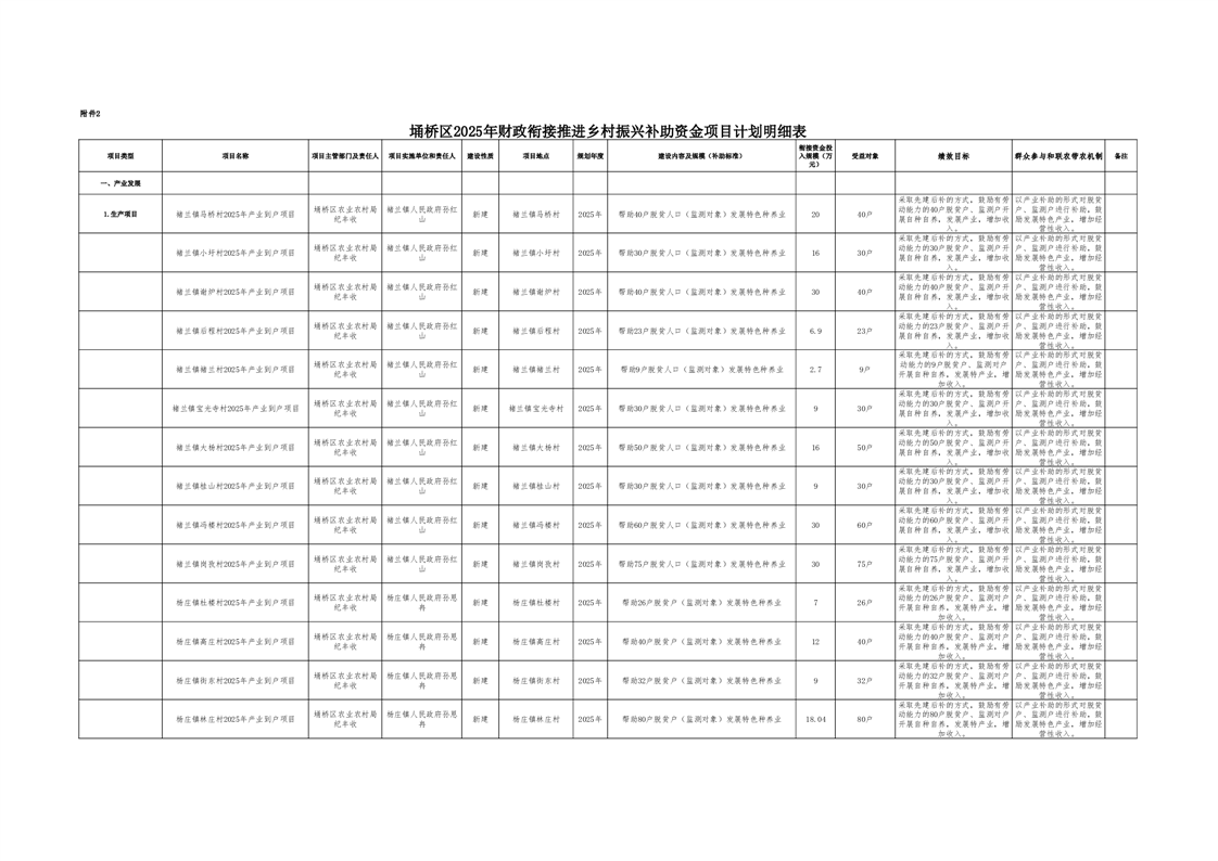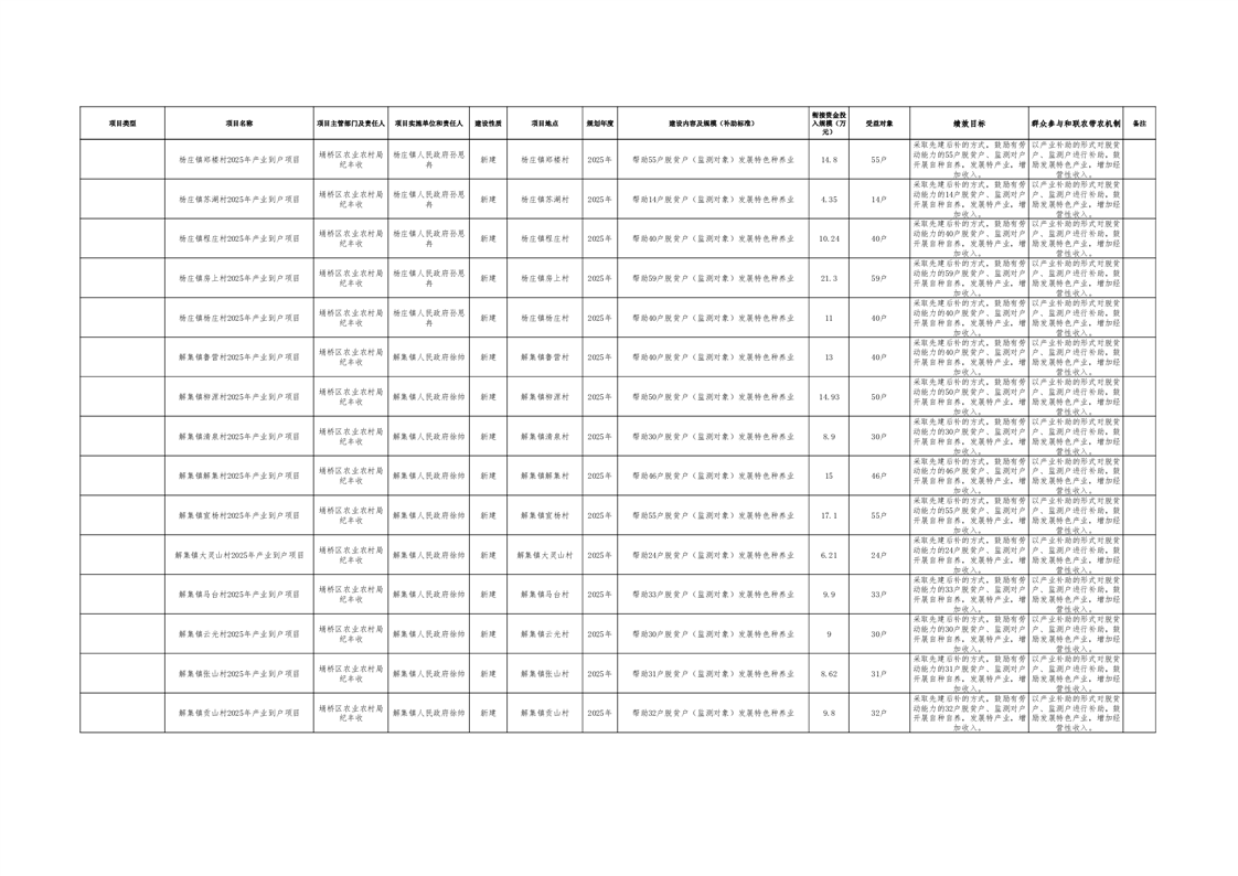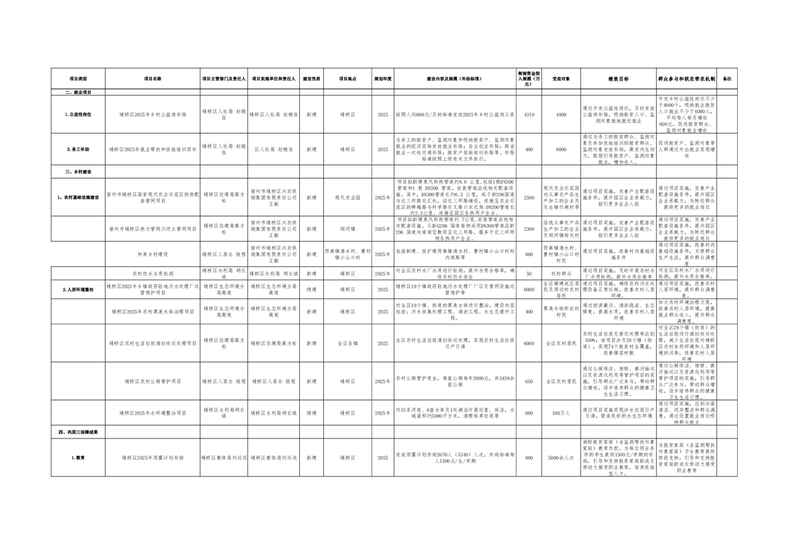 埇桥区2025年财政衔接推进乡村振兴补助资金项目实施计划明细表