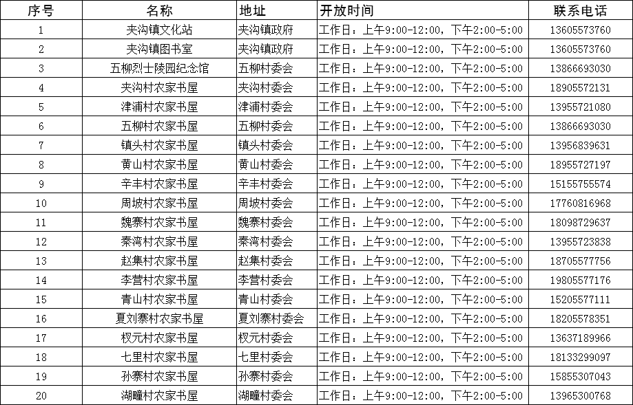 夹沟镇公共文化机构免费开放信息