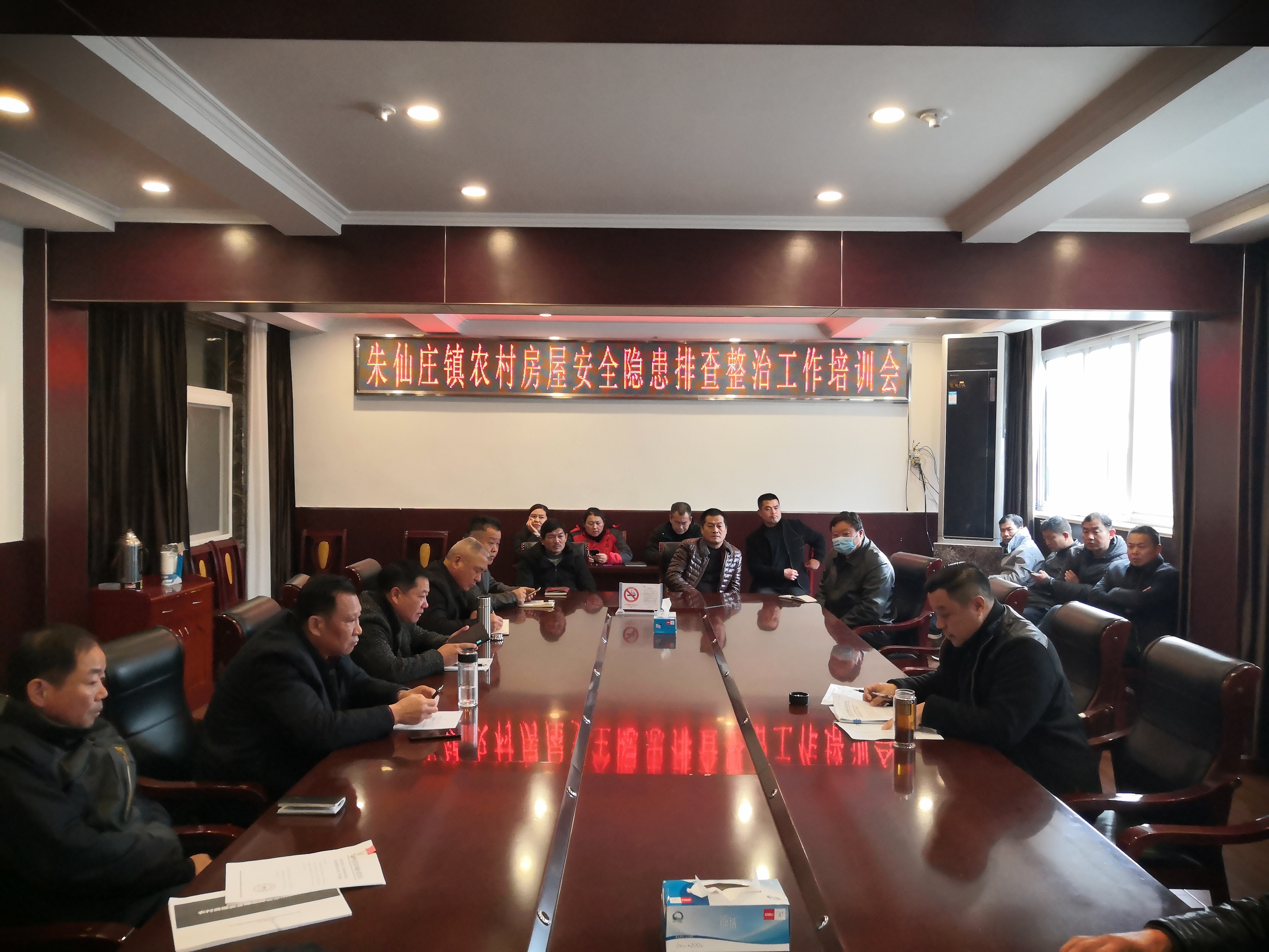 我镇于2020年11月24日在镇二楼会议室召开农村住房安全隐患排位整治工作培训会,镇分管负责人,各村书记,住建所工作人员参会。会议要求是为了消除农村房屋安全隐患,切实保障人民群众生命财产安全。