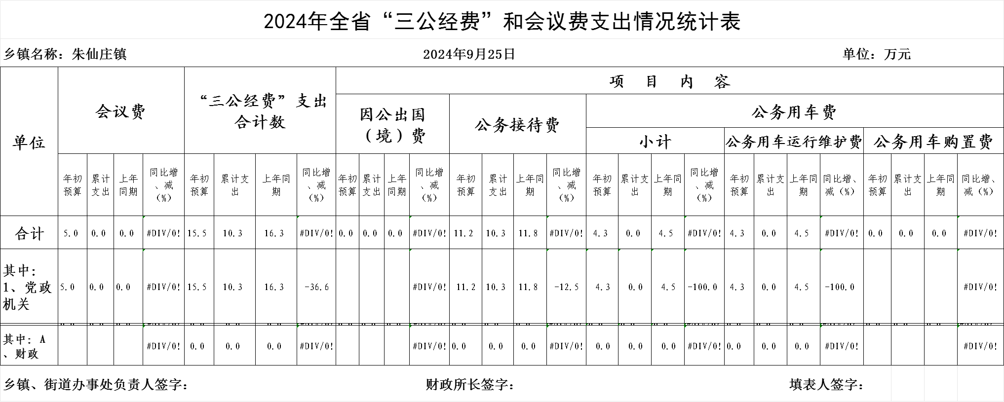 朱仙庄镇2024年9月份“三公经费”和会议费支出情况统计表