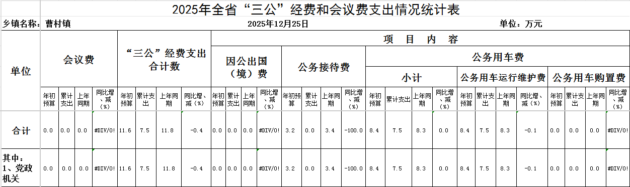 曹村镇2025年12月“三公”经费统计表