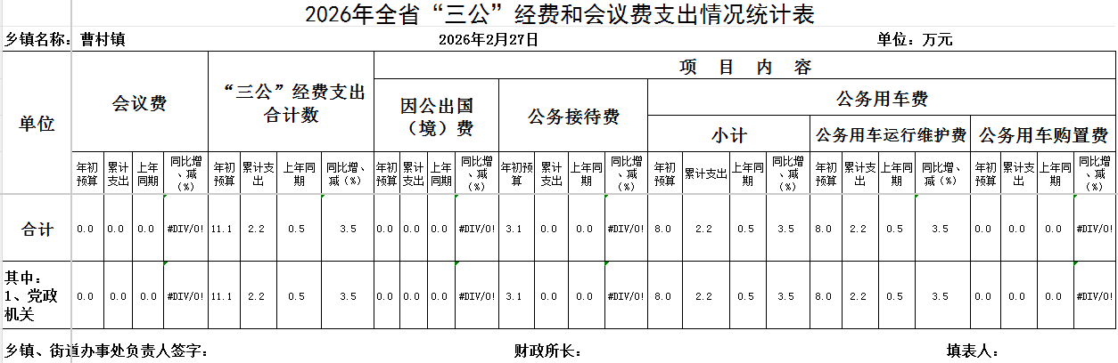 曹村镇2026年2月“三公”经费统计表