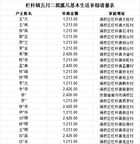 【孤儿补助】栏杆镇2025年5月发放孤儿基本生活补助情况